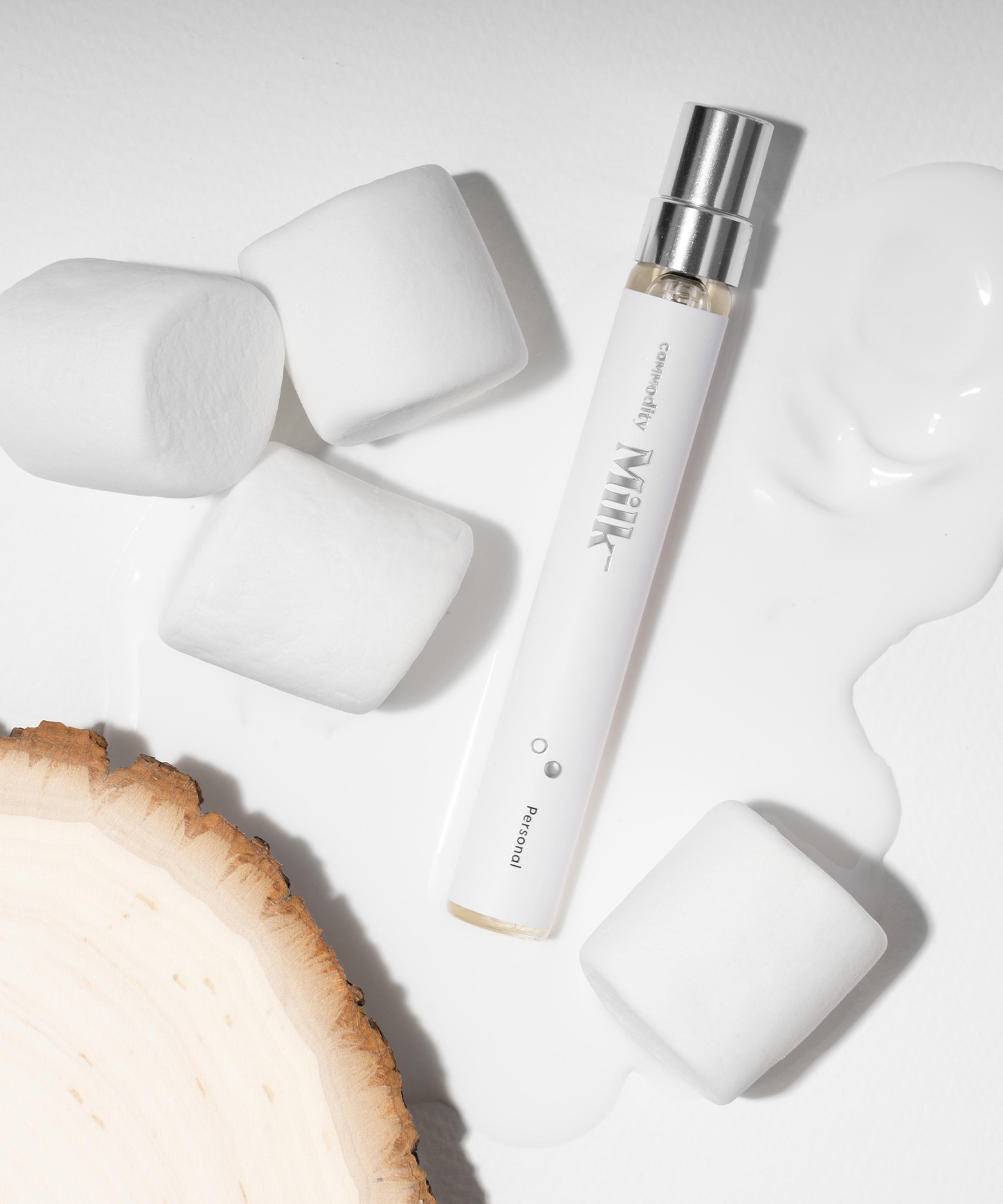 Commodity’s Milk Personal eau de parfum is comfort personified – a creamy, calming fragrance laced with toasted marshmallows and sweet tonka bean, lightened with white cedar.