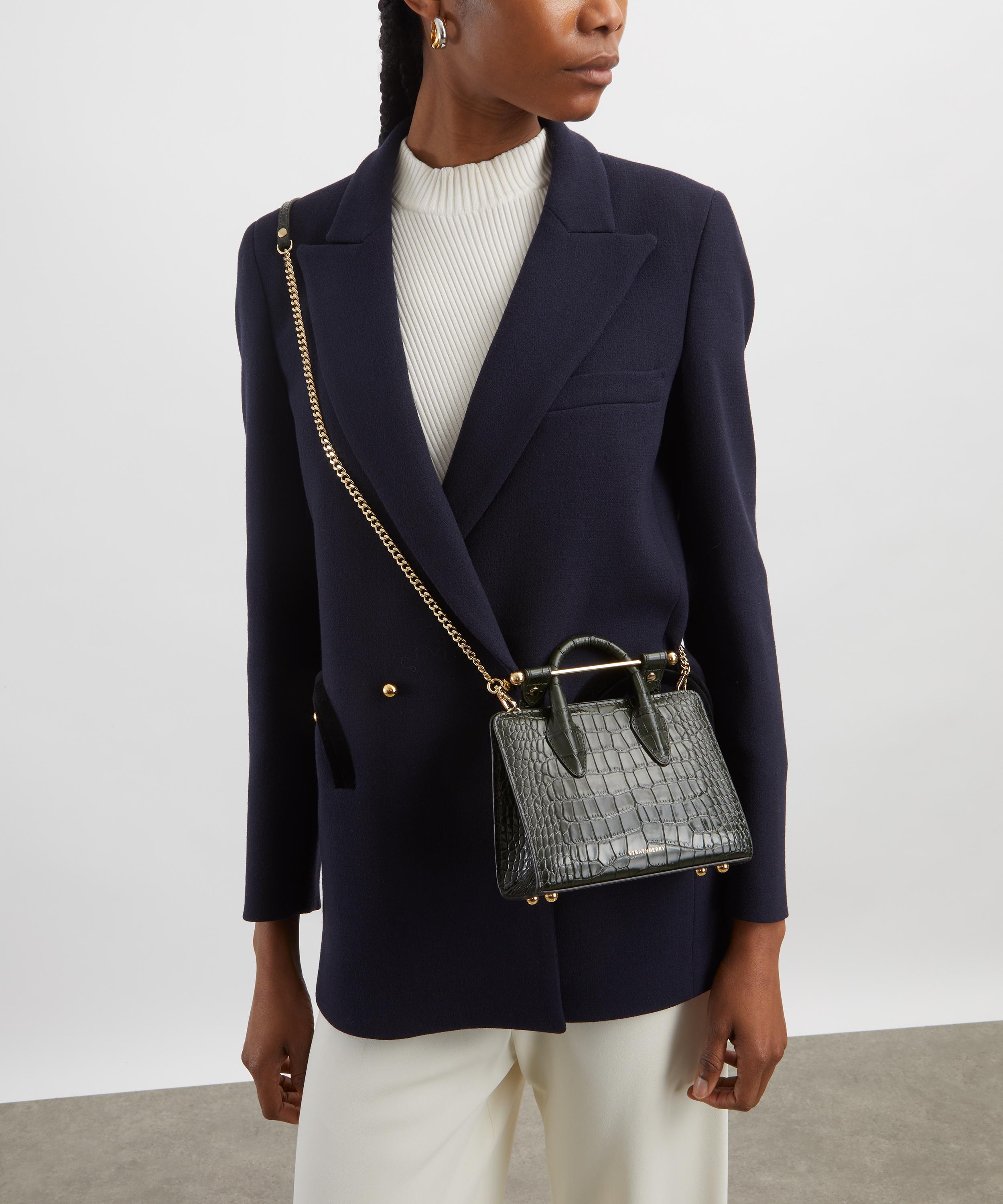 The perfect finishing touch, Strathberry’s Mini Tote Bag will effortlessly enhance your everyday look. Handmade in Spain from croc-embossed calfskin leather with a microfibre lining, it features a compact silhouette inspired by a vintage music folio. Equipped with a single main compartment and interior pocket, and secured by the brand’s signature music bar closure, it’s guaranteed to add an air of sophistication to any outfit. It’s completed with a top handle and a detachable, adjustable strap – perfect for styling crossbody, slung over your shoulder or carrying by hand.