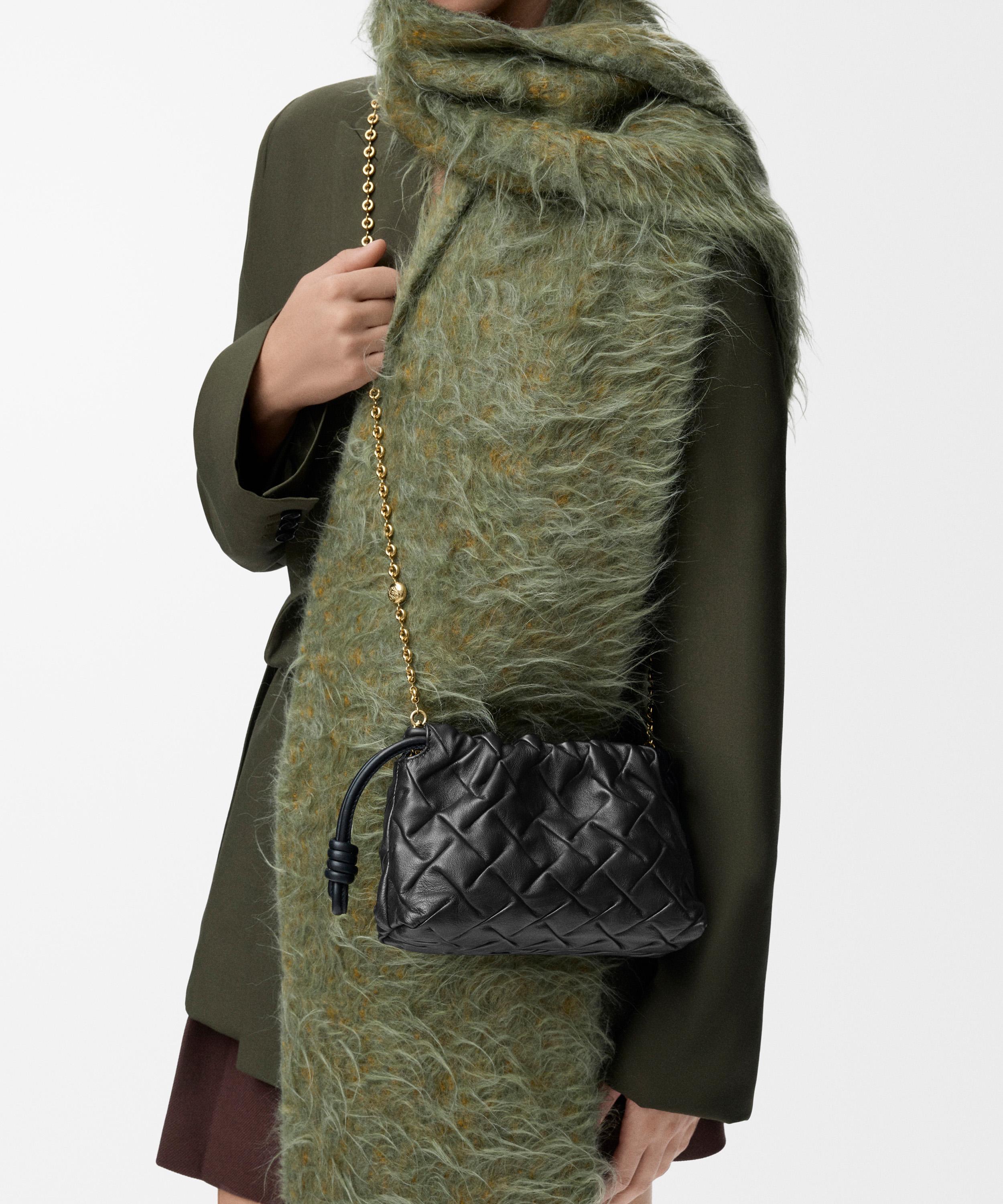 Cut from pinched nappa calfskin leather, it showcases a ruched pouch silhouette that cinches closed at the top with the style’s signature knot drawstring pulls. The design is finished with a concealed magnetic closure and a detachable sliding donut chain strap with an Anagram pebble. Style it over the shoulder, across the torso or carry it as a clutch to add an ultra-feminine finish to off-duty looks.