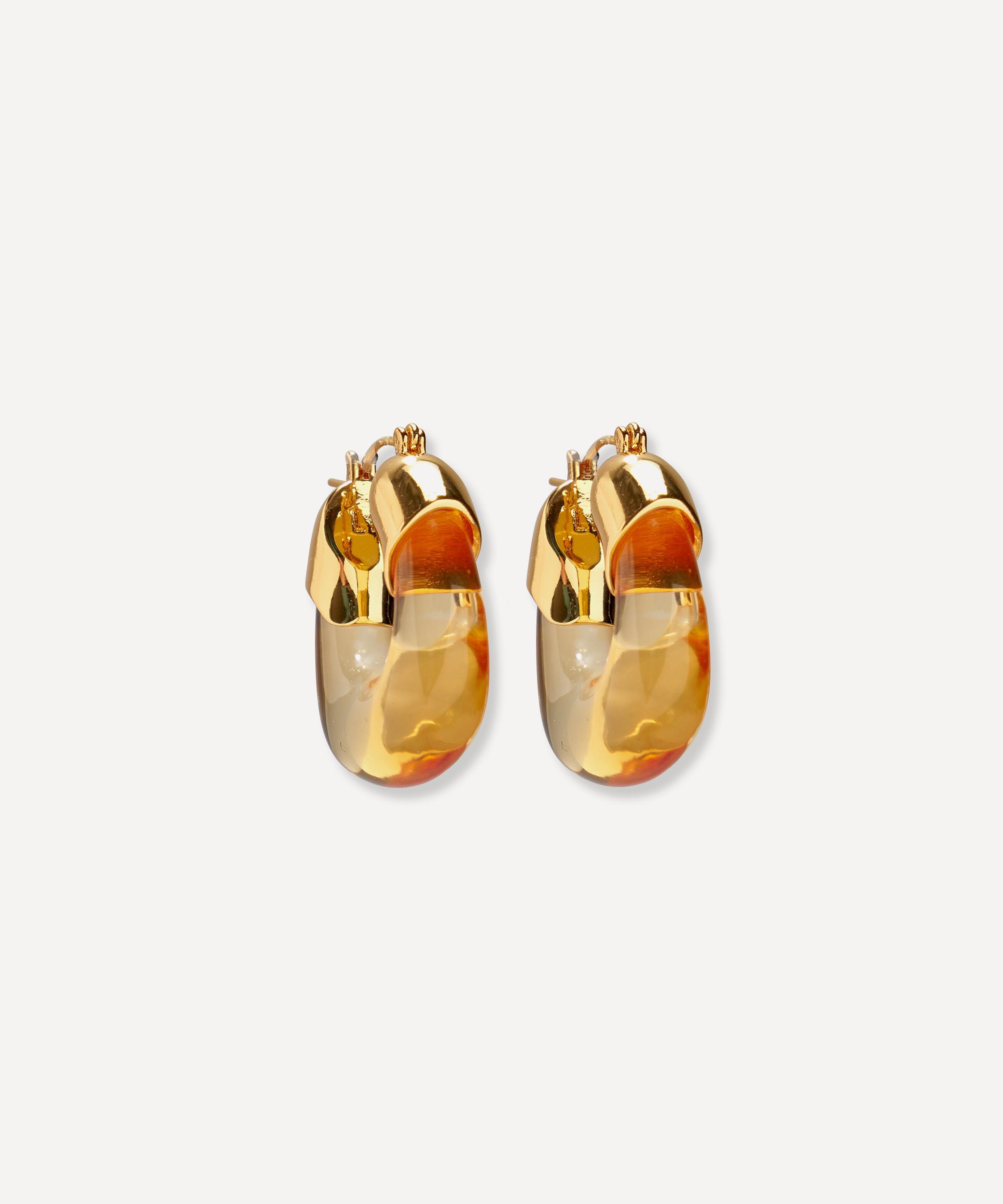 A charming twist on a signature silhouette, Lizzie Fortunato’s Mini Organic Hoop earrings capture the label’s mix of artisanal craftsmanship and storytelling. They’re handcrafted from polished gold-plated brass and defined by a pair of transparent yellow, amber-coloured resin drops that lend warmth to your curated outfit. These earrings are a standout pick for formal occasions and easy everyday dressing alike.