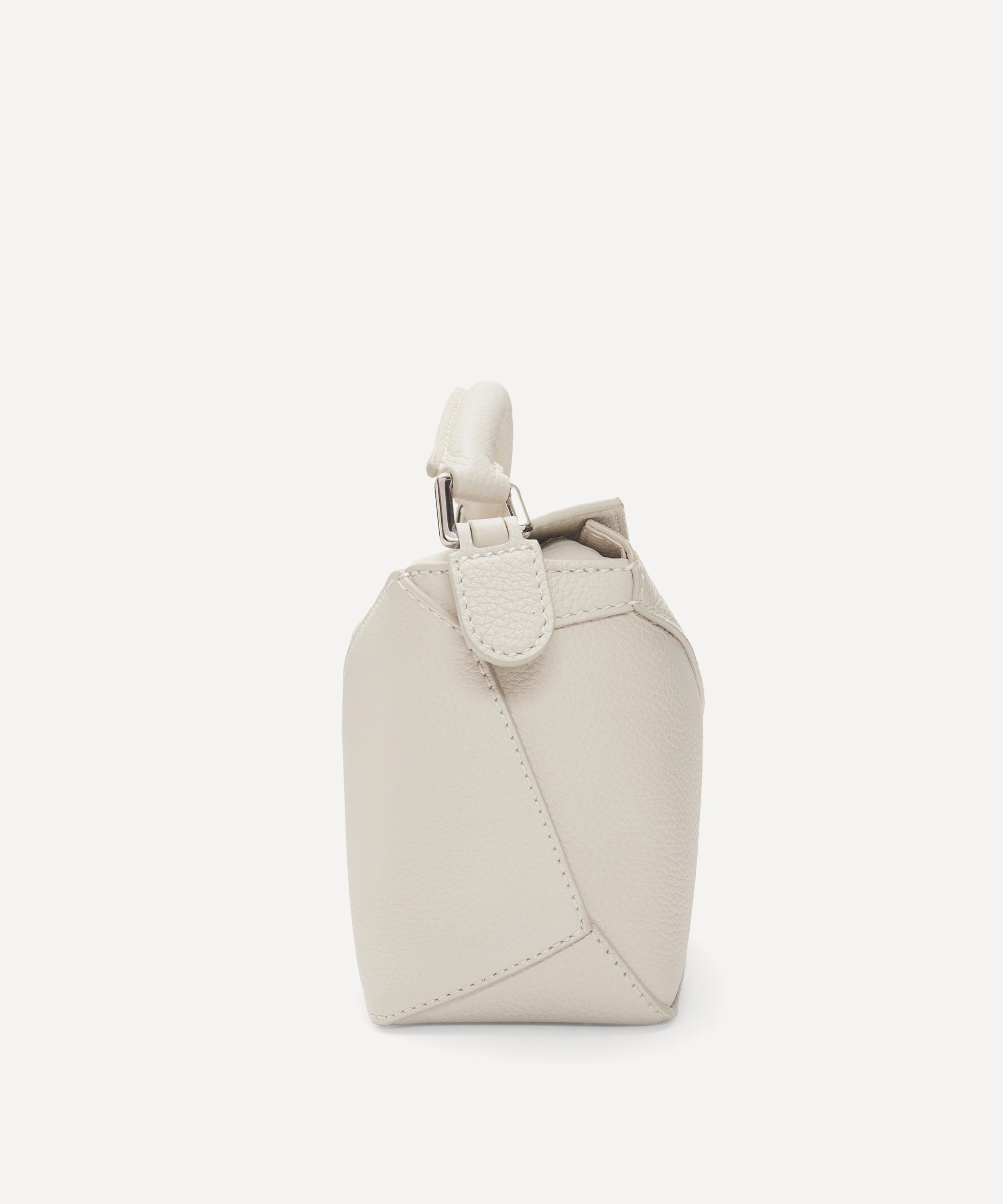 Cut from soft calfskin leather, this mini rendition of Loewe's Puzzle bag is characterised by the same boxy cuboid silhouette that can be folded in several different ways thanks to the precisely cut geometric panels across the exterior. The design is fitted with a spacious main compartment that can hold a small vertical wallet, most mobile phones, and sunglasses case, while the brand's distinctive Anagram logo is debossed at the front. Complete with a top handle and a detachable shoulder strap, it can be worn across the body, over the shoulder or even folded down flat for an artful alternative to your usual clutch bag.