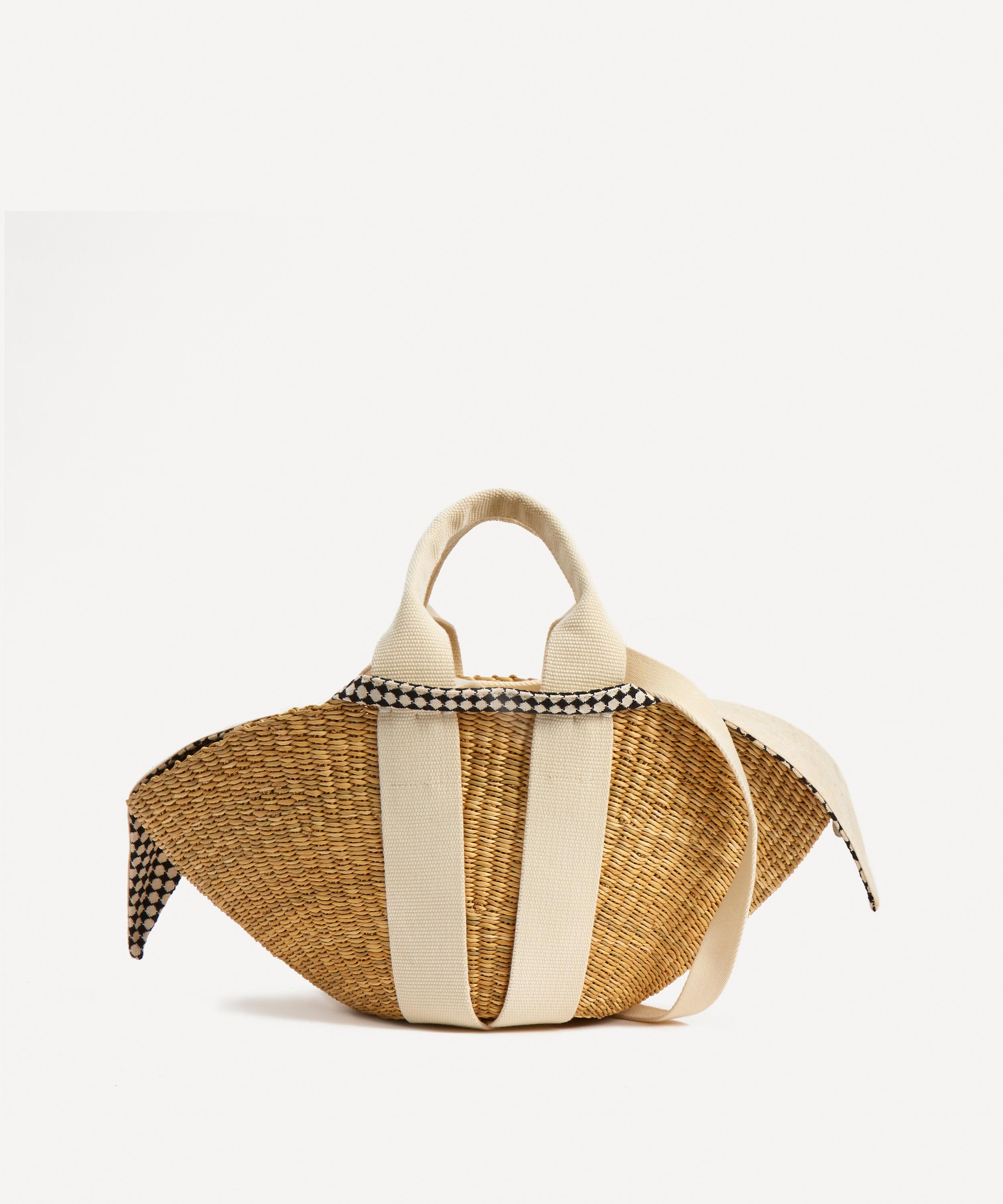The result of a chance meeting between two experts in their craft, Muuñ bags are hand-woven from durable elephant grass by artisans in Nyariga, Northern Ghana – each one taking two or three days to make. Assembled in the brand’s workshop in France, this mini tote comes complete with a removable cotton pouch lining, two fabric top handles and a longer fabric shoulder strap for adaptable everyday styling.