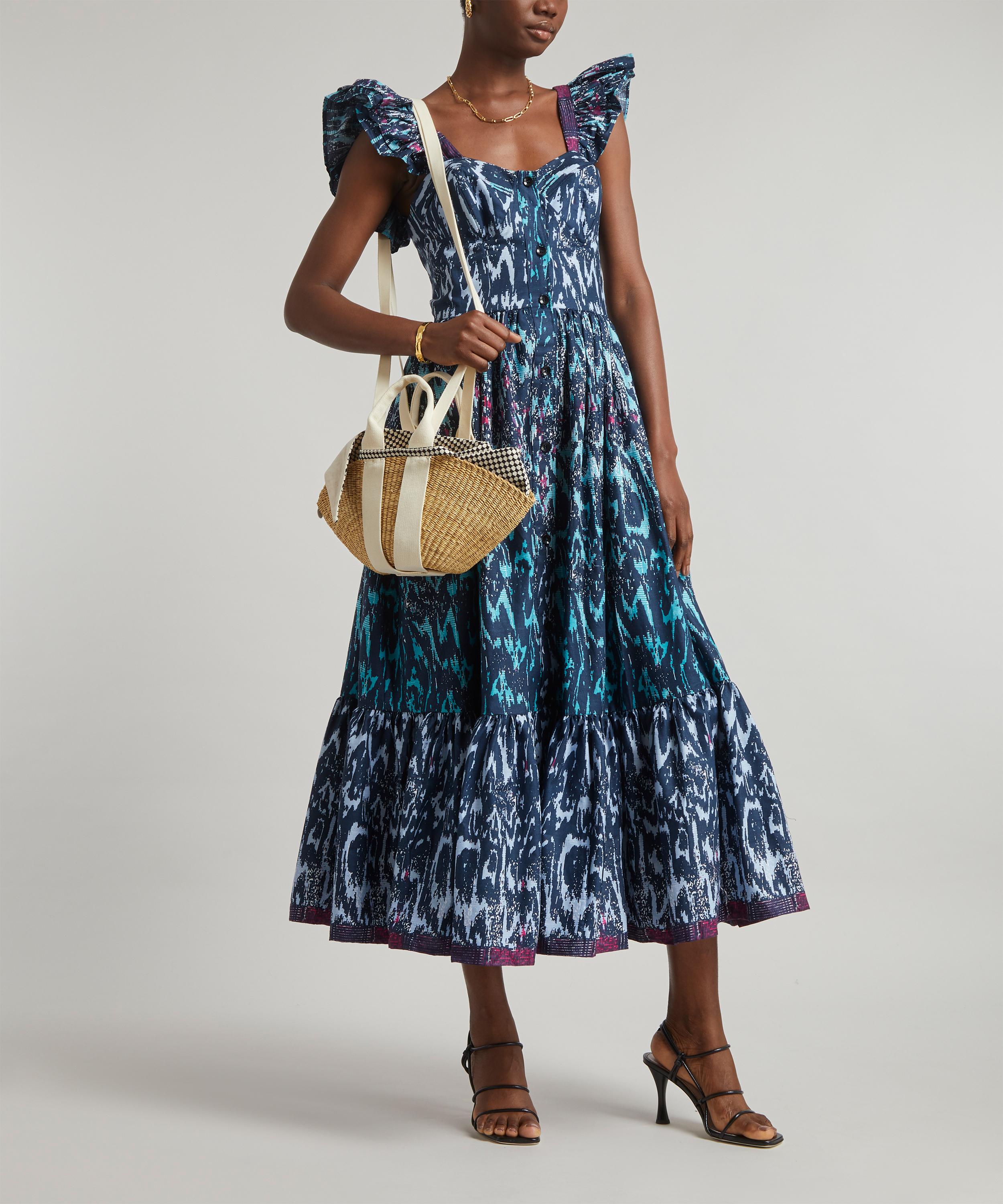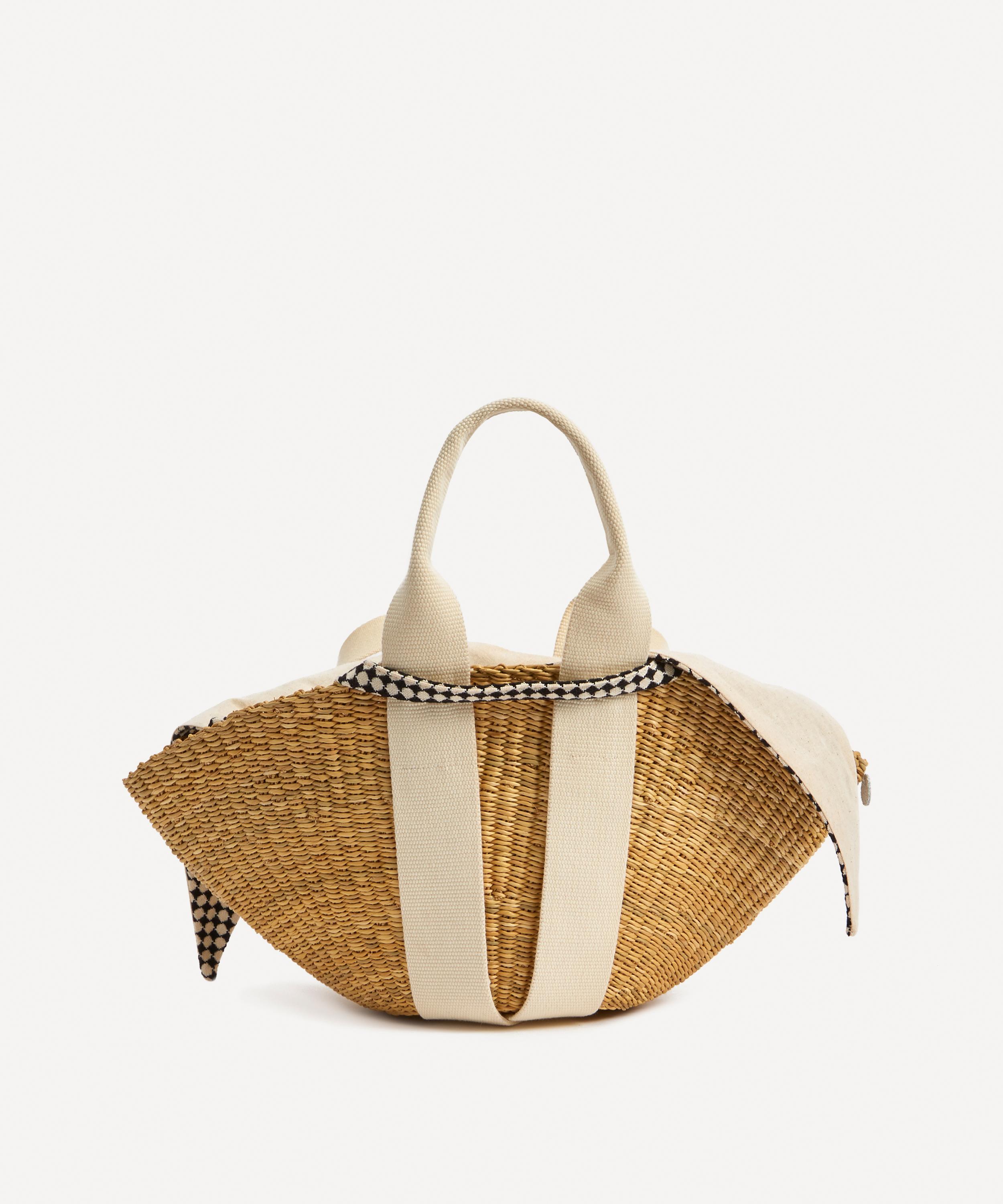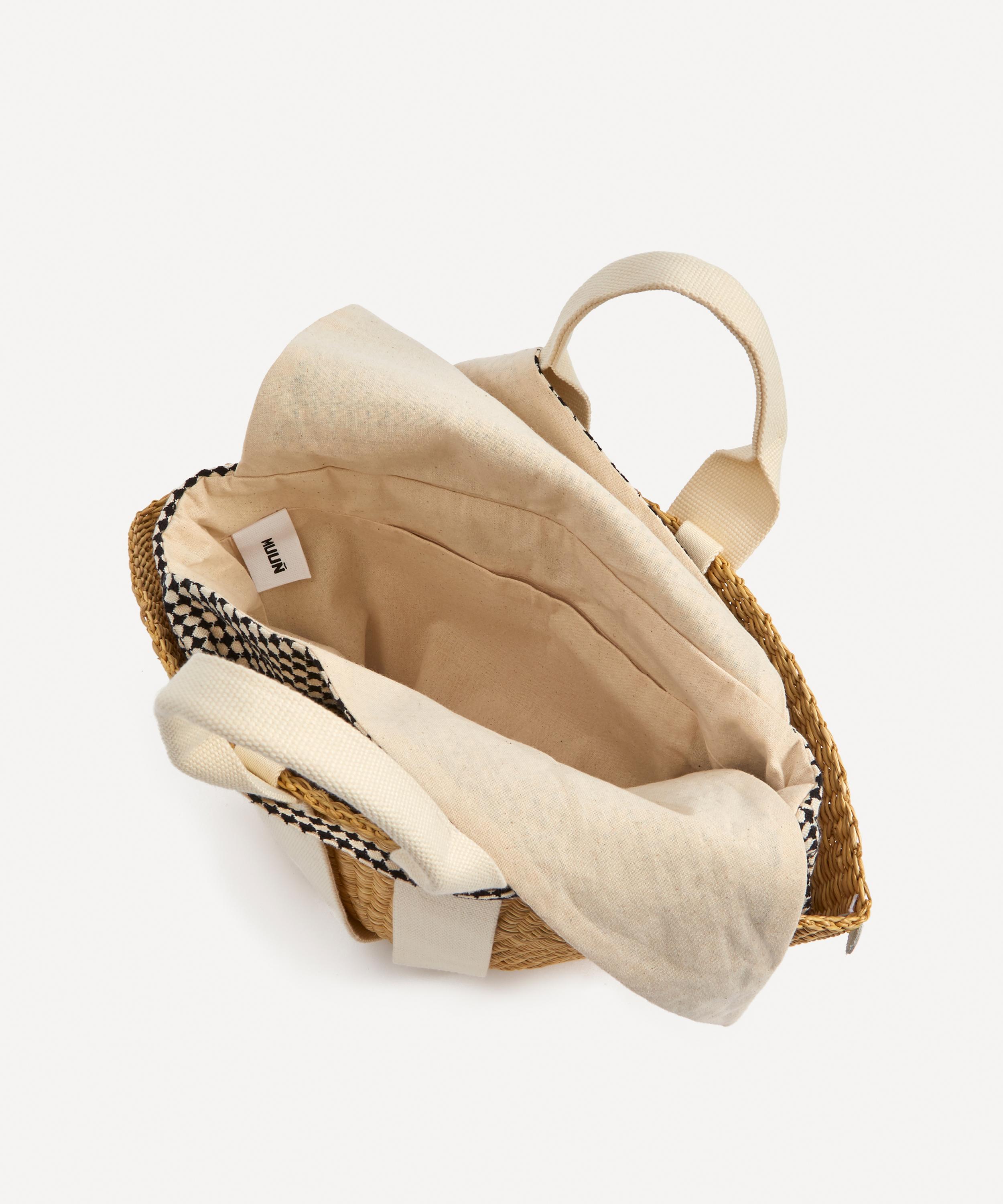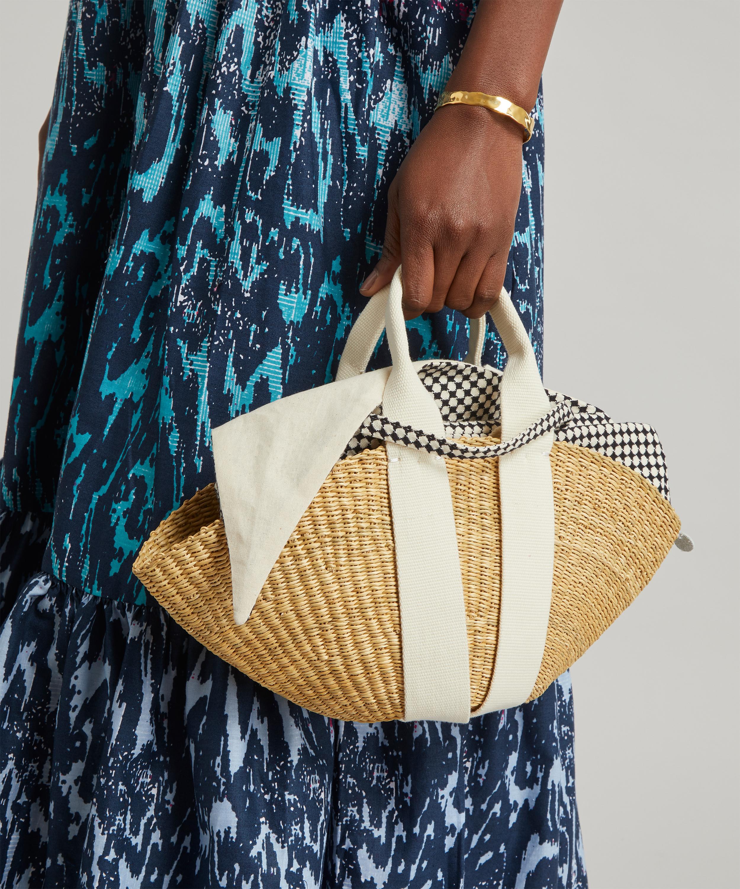 Mini Sophie Woven Straw and Cotton Basket Tote Bag