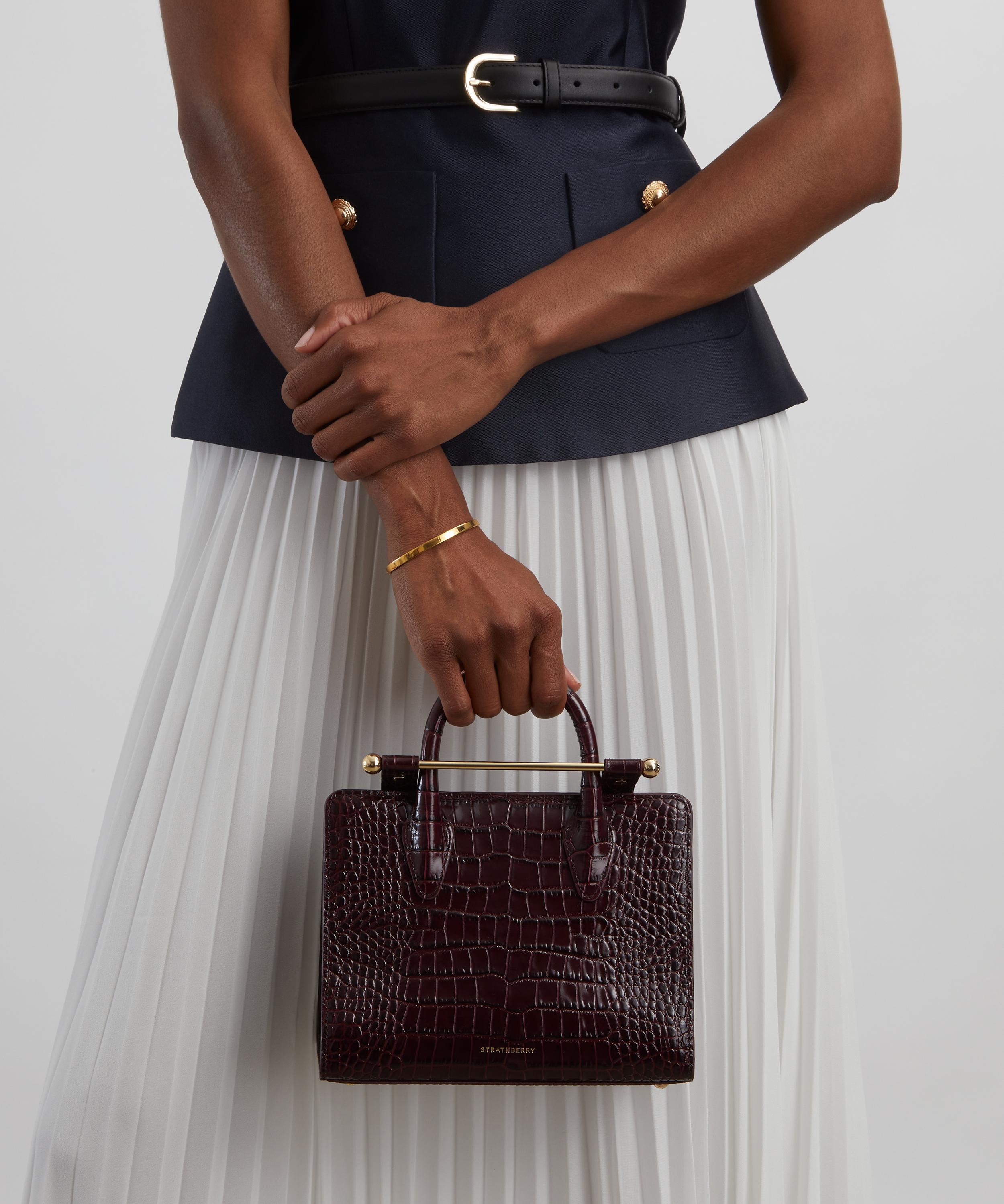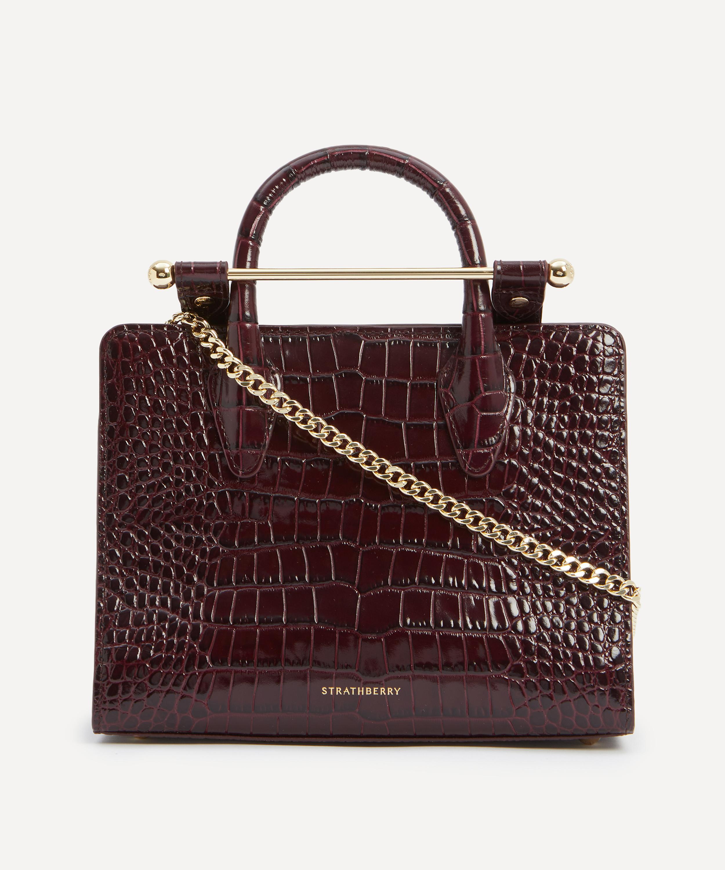 Handmade in Spain from croc-embossed calfskin leather and a soft microfibre lining, it features an elegant, structured silhouette equipped with a spacious main compartment and an interior pocket, secured by a signature bar closure. Guaranteed to add an air of sophistication to any outfit, this timeless bag is complete with one top handle and a detachable chain – style it crossbody, sling it over your shoulder, or carry it by hand.About Strathberry