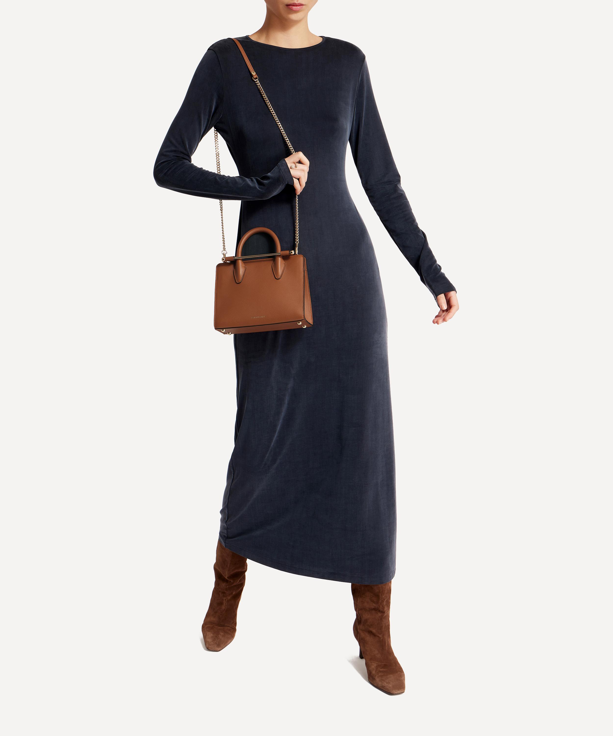 The perfect finishing touch, opt for Strathberry’s Mini Tote Bag to effortlessly enhance your everyday look. Handmade in Spain from smooth calfskin leather and a soft microfibre lining, it features an elegant, structured silhouette equipped with a spacious main compartment and an interior pocket, secured by a signature bar closure. Guaranteed to add an air of sophistication to any outfit, this timeless bag is complete with one top handle and a detachable, adjustable chain strap – style it crossbody, sling it over your shoulder, or carry it by hand.