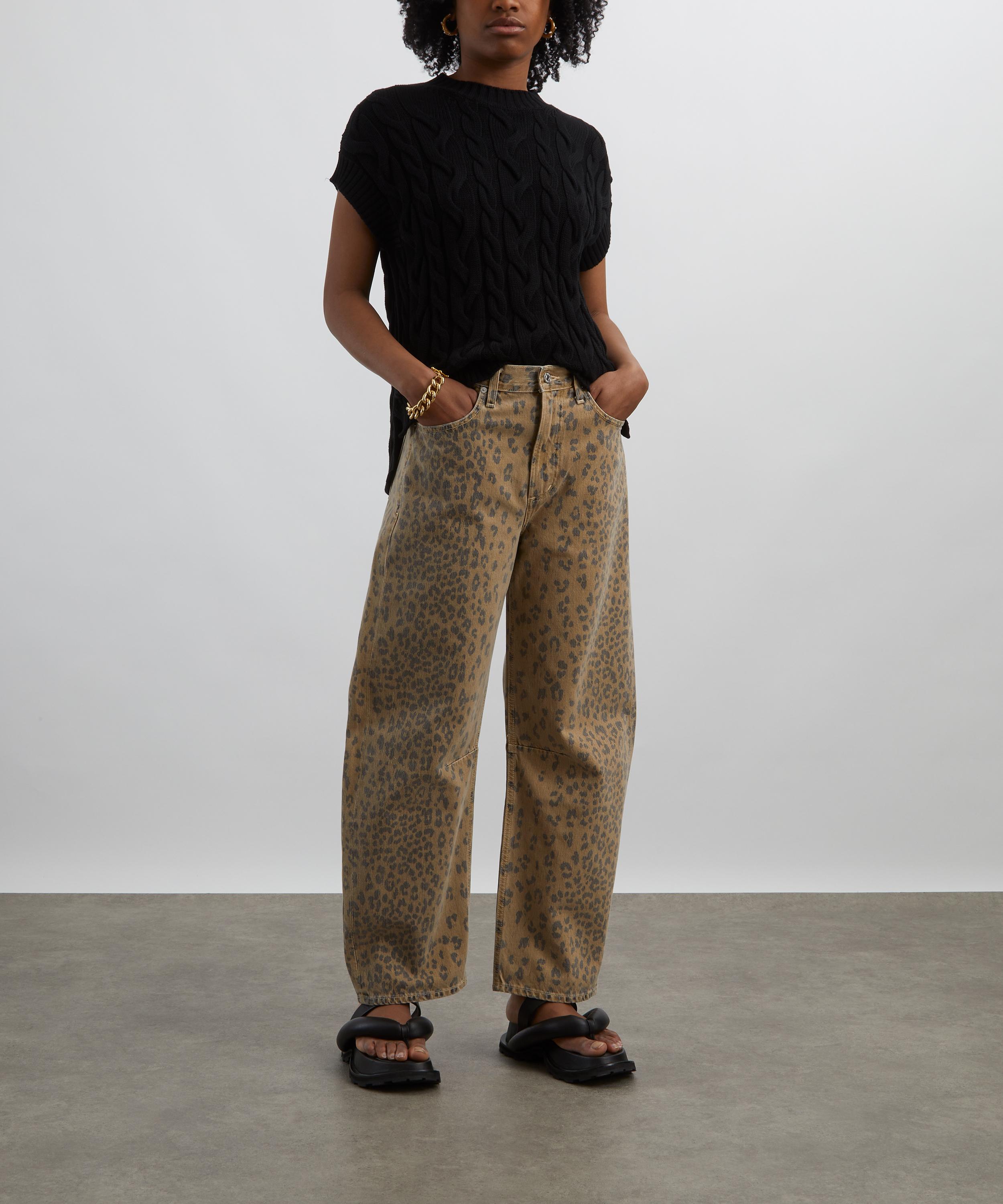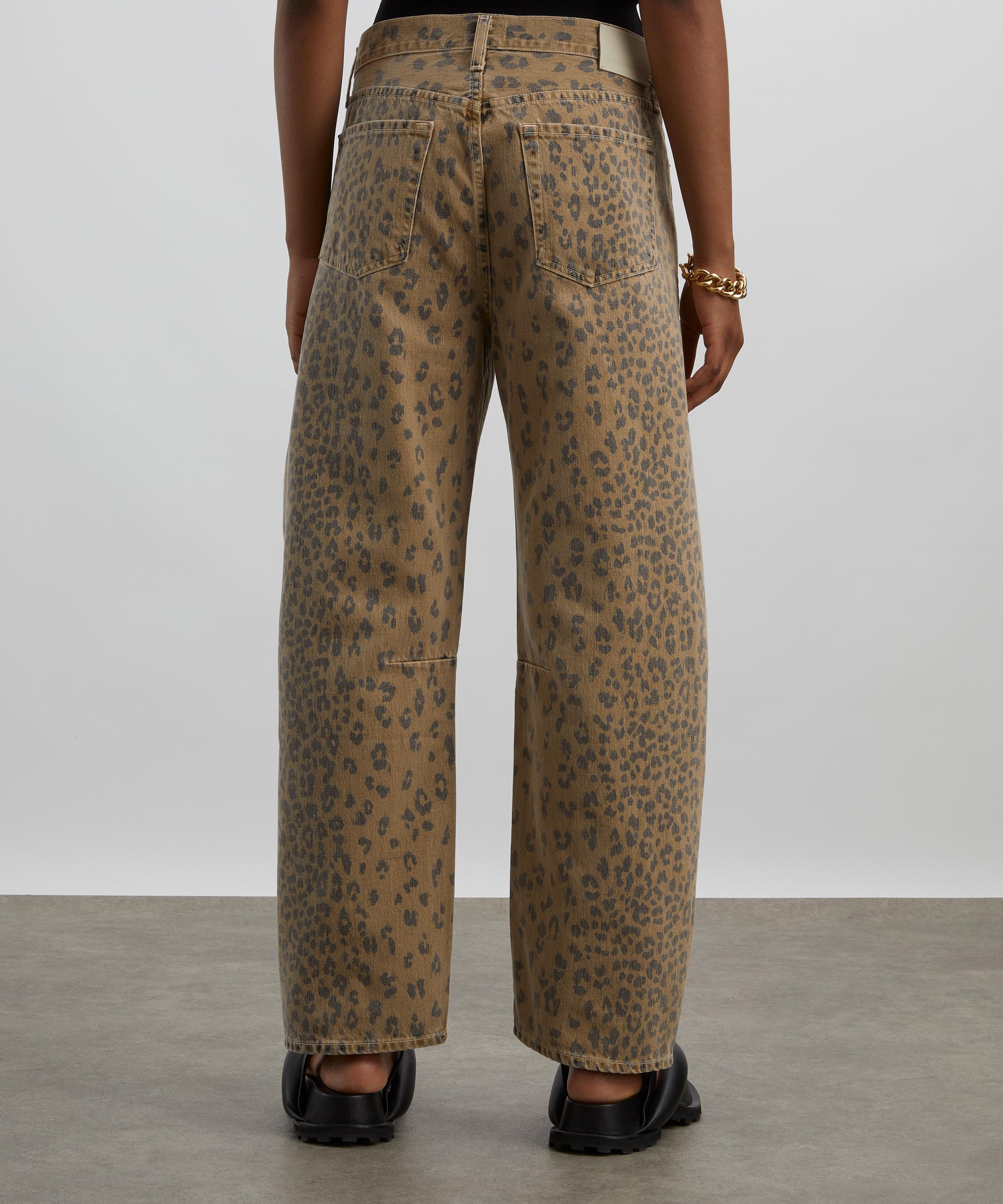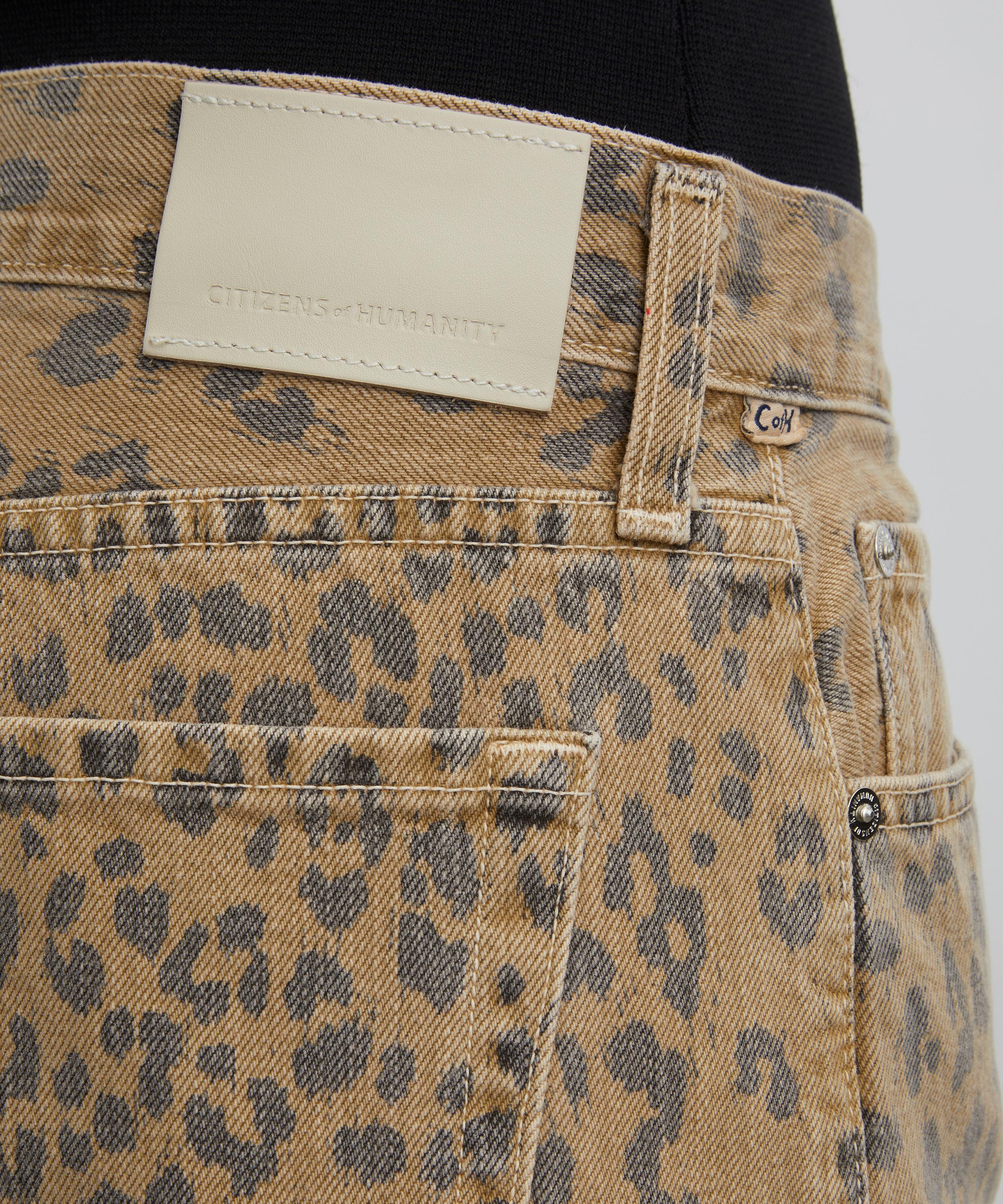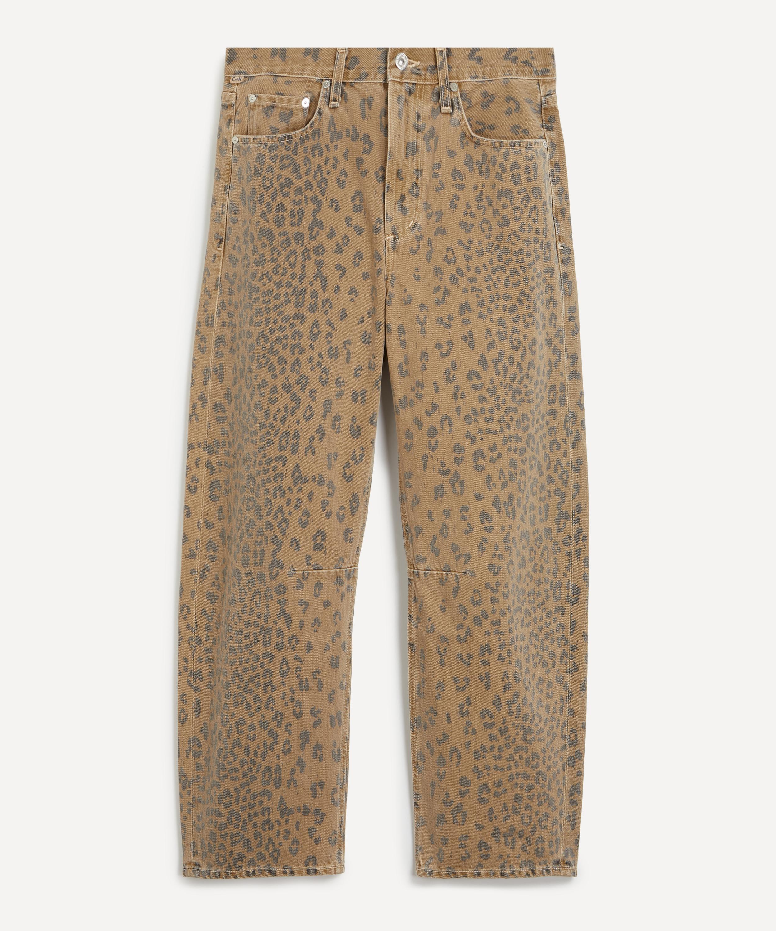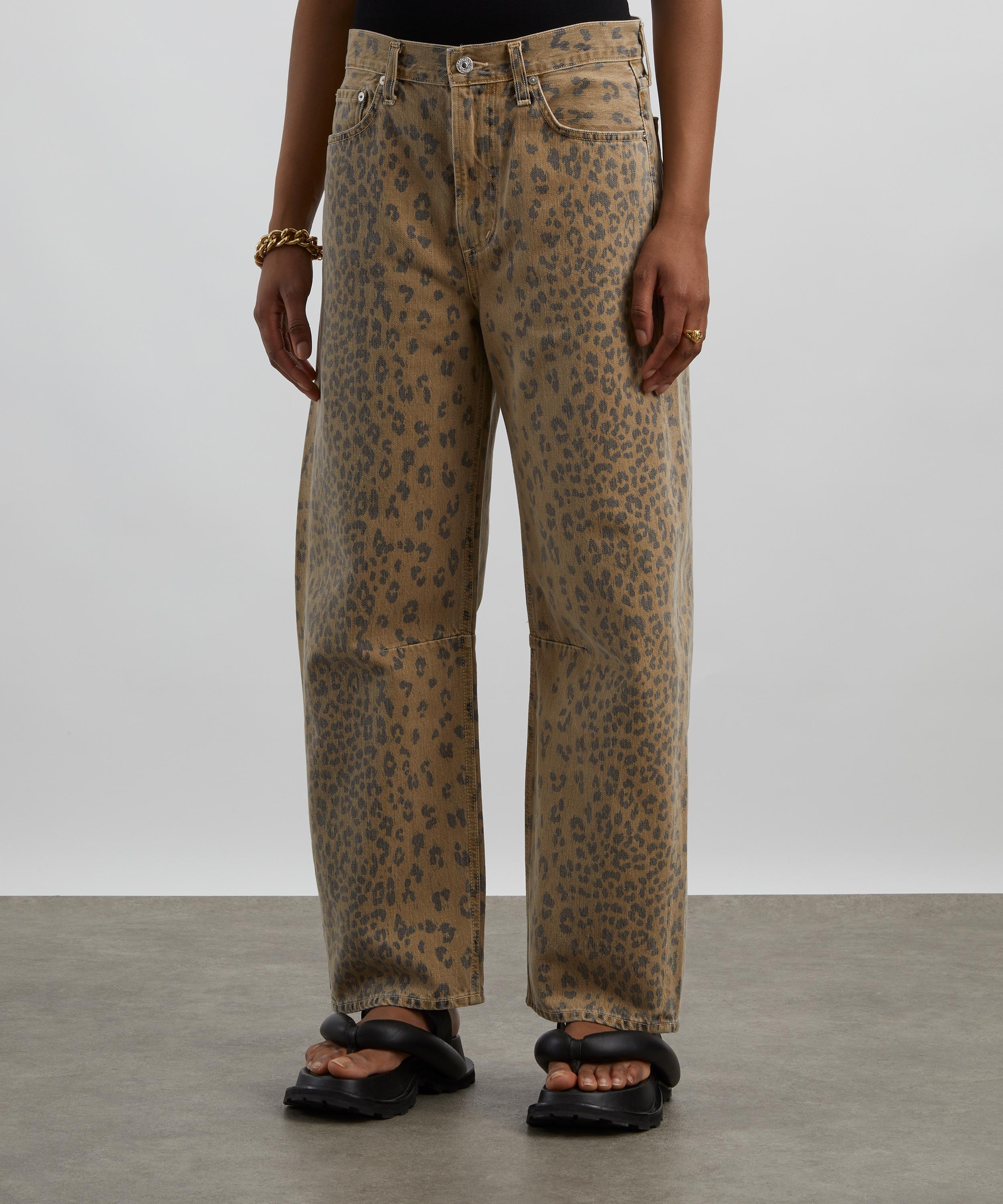 Crafted from a rigid, non-stretch cotton, these cheetah-print jeans feature a relaxed, low-rise fit with a slightly tapered take on the barrel leg shape. Finished with a classic 5-pocket construction and button zip-fly fastening, they offer the perfect length for showcasing a statement pair of heels.