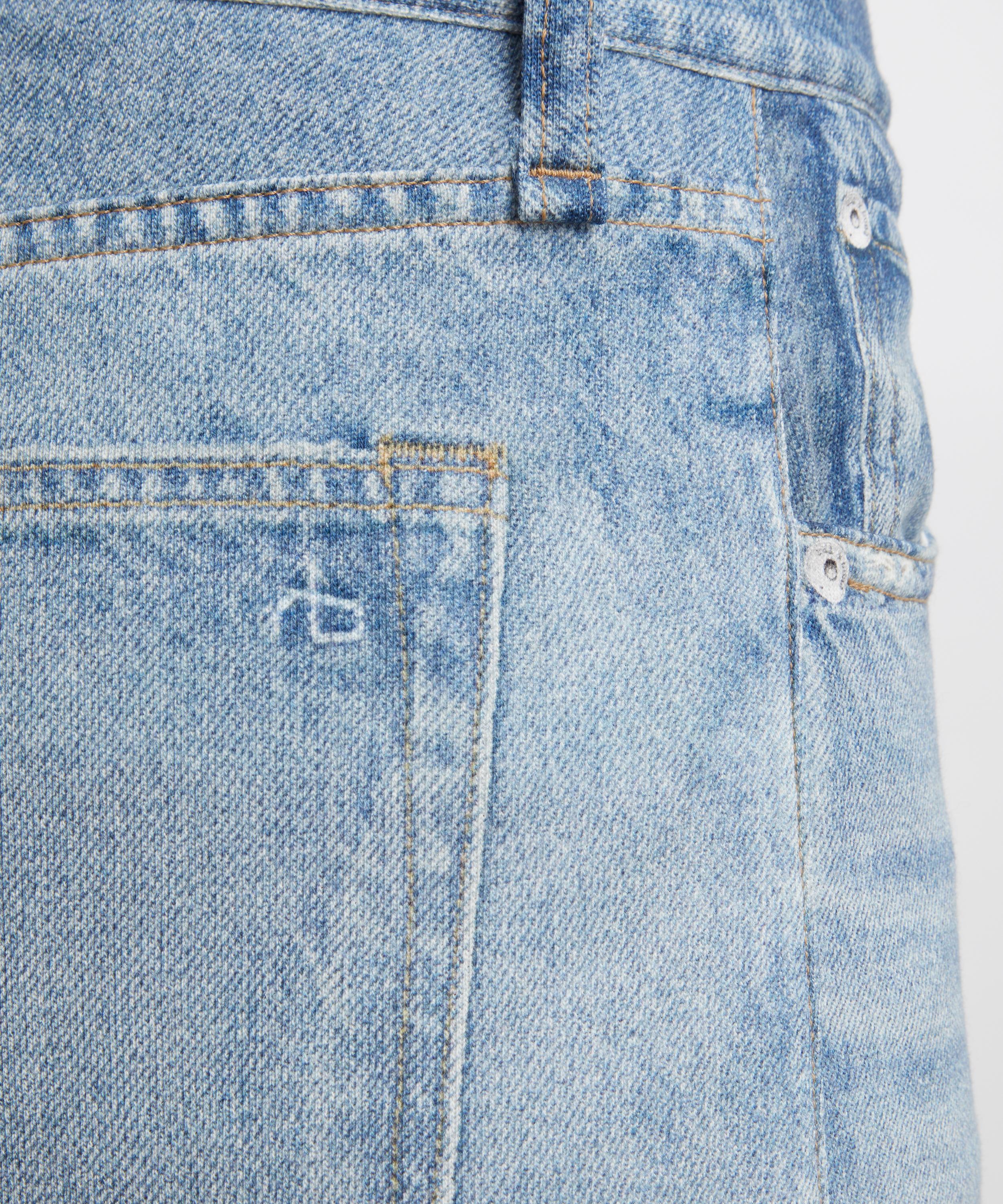 Using Rag & Bone’s signature Miramar technology, the Sofie trousers reimagine denim through ultra-soft cotton terry. Designed with a high rise and super-wide, flared legs, they feature functional belt loops, front pockets, and digitally printed denim details for a perfectly comfortable yet classic fit.