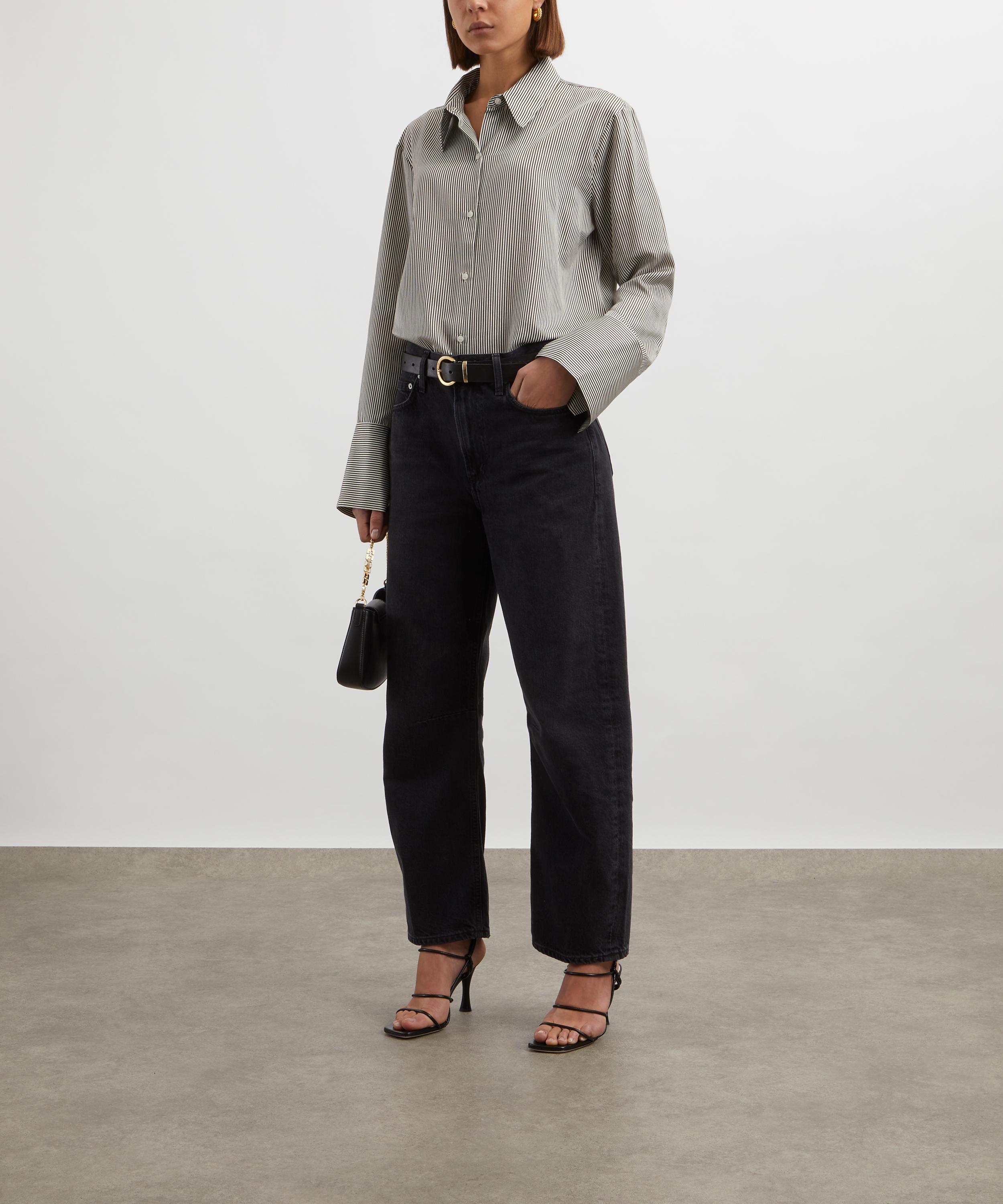 Crafted from non-stretch cotton, the Miro jeans feature a slightly relaxed fit at the top with a tapered barrel leg, creating a strikingly voluminous silhouette. In washed out black with fading throughout for a lived-in, vintage finish, they’re the ultimate go-with-anything style.