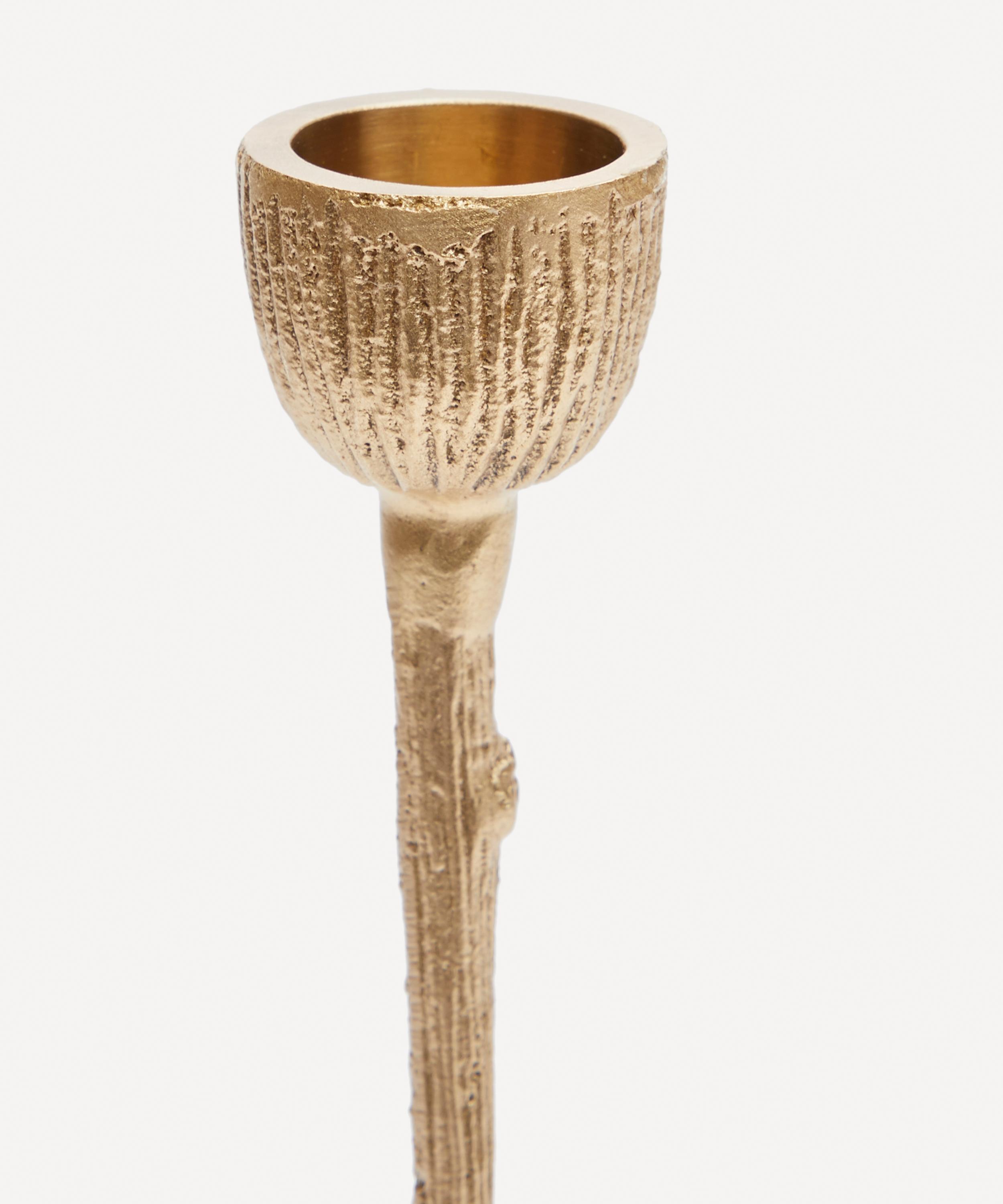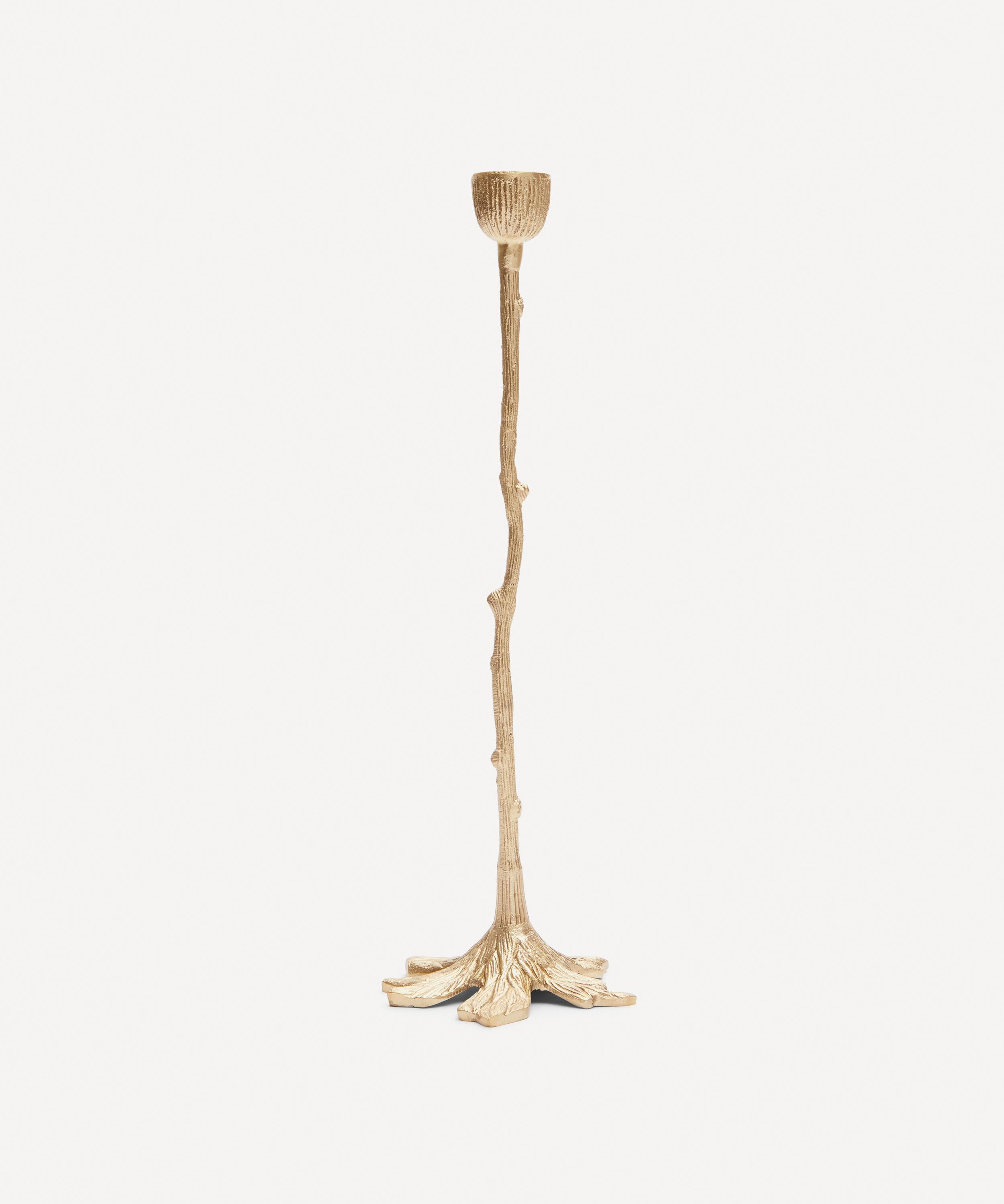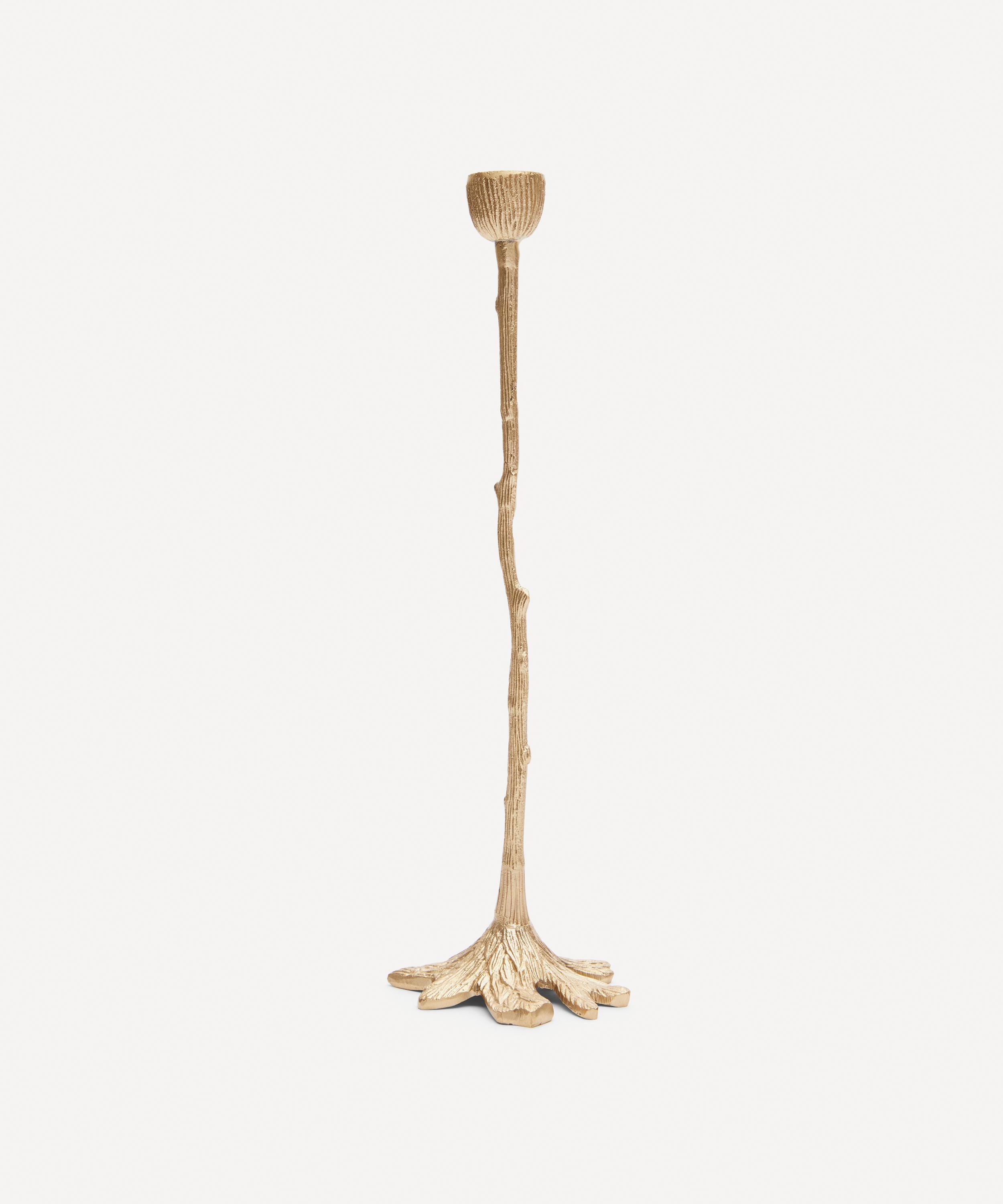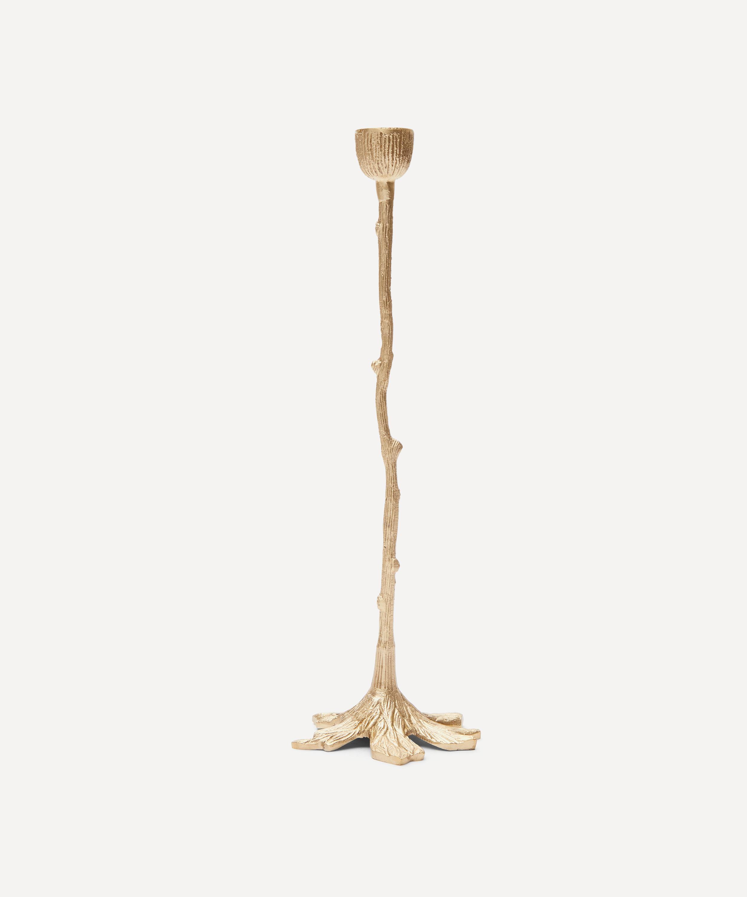 Give your table setting a sense of well-lit drama with this brass Mistry Tree candlestick holder from Doing Goods.