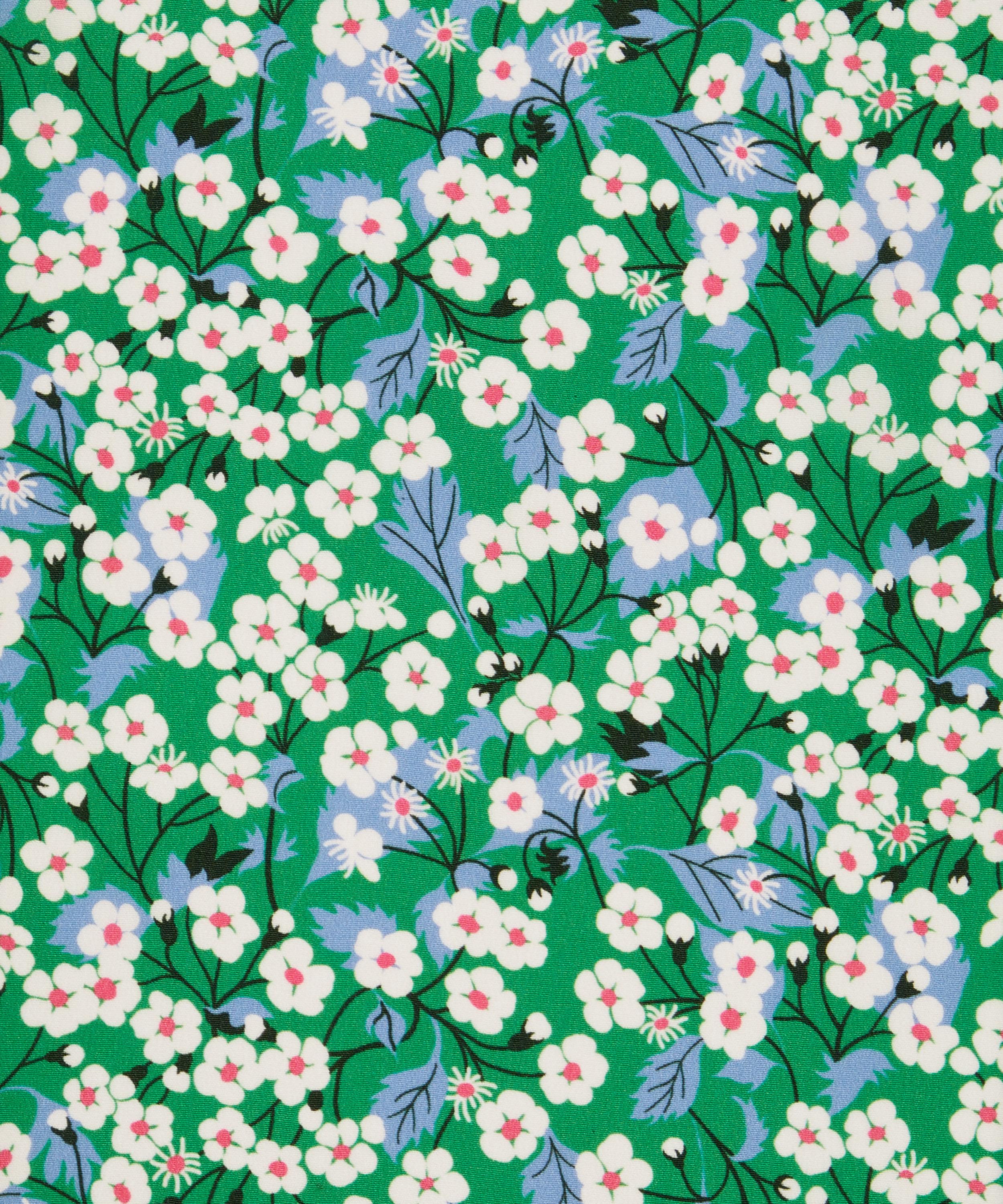 Mitsi was designed by Gillian Farr, a member of the Liberty Fabrics studio in the 1950s. It pays homage to Liberty’s historical love for Japanese design motifs, featuring delicate cherry blossom.