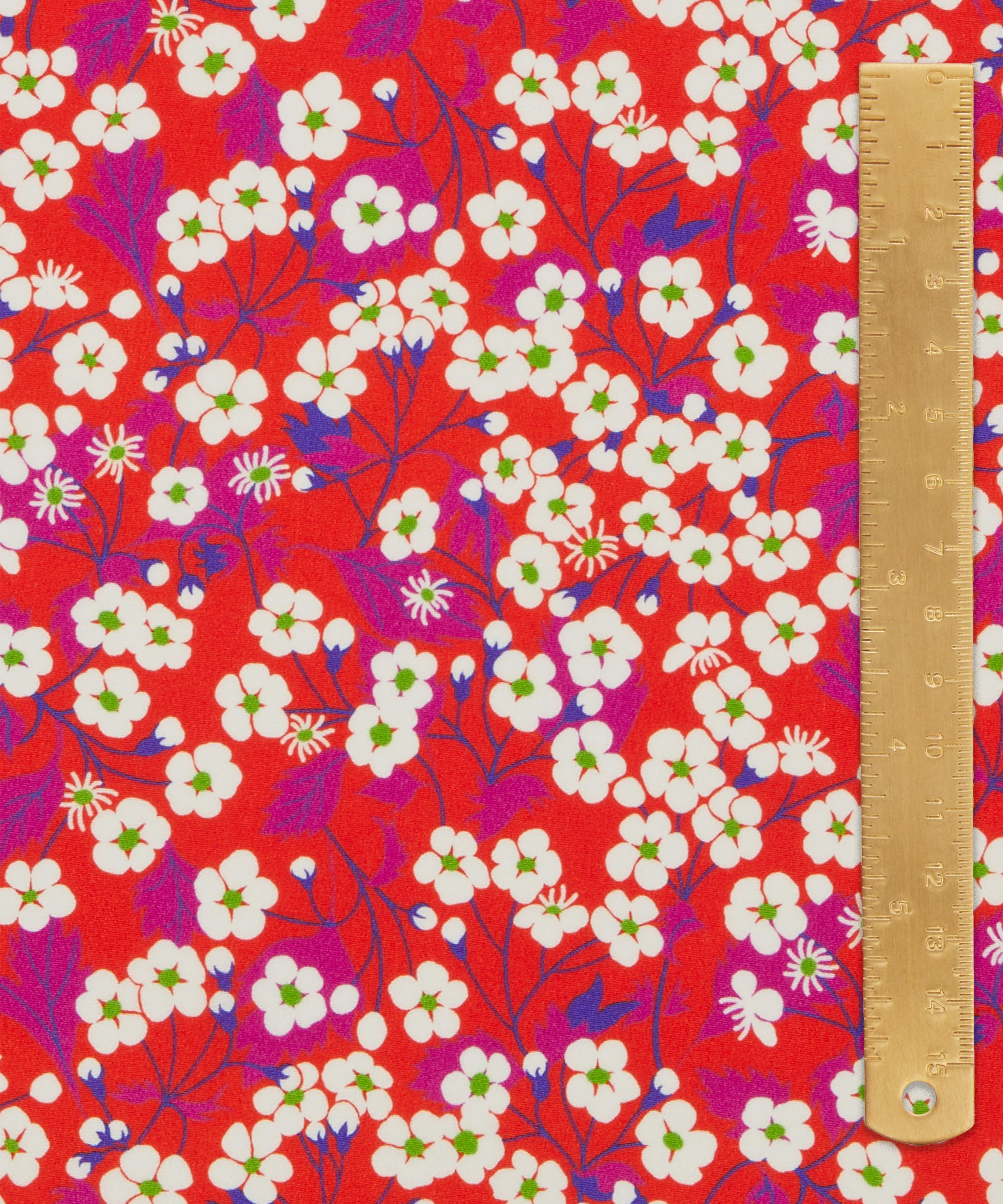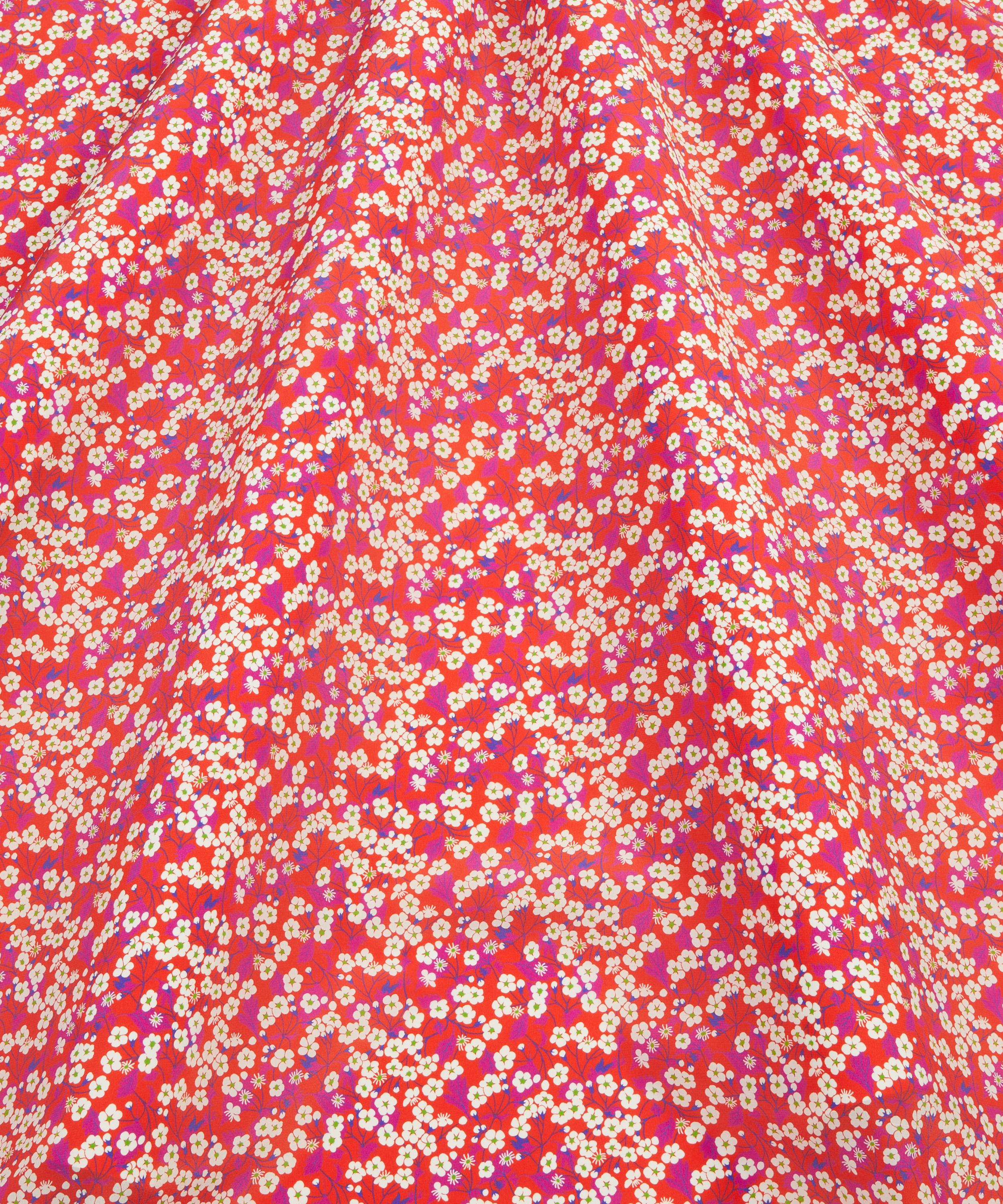 Mitsi was designed by Gillian Farr, a member of the Liberty Fabrics studio in the 1950s. It pays homage to Liberty’s historical love for Japanese design motifs, featuring delicate cherry blossom.