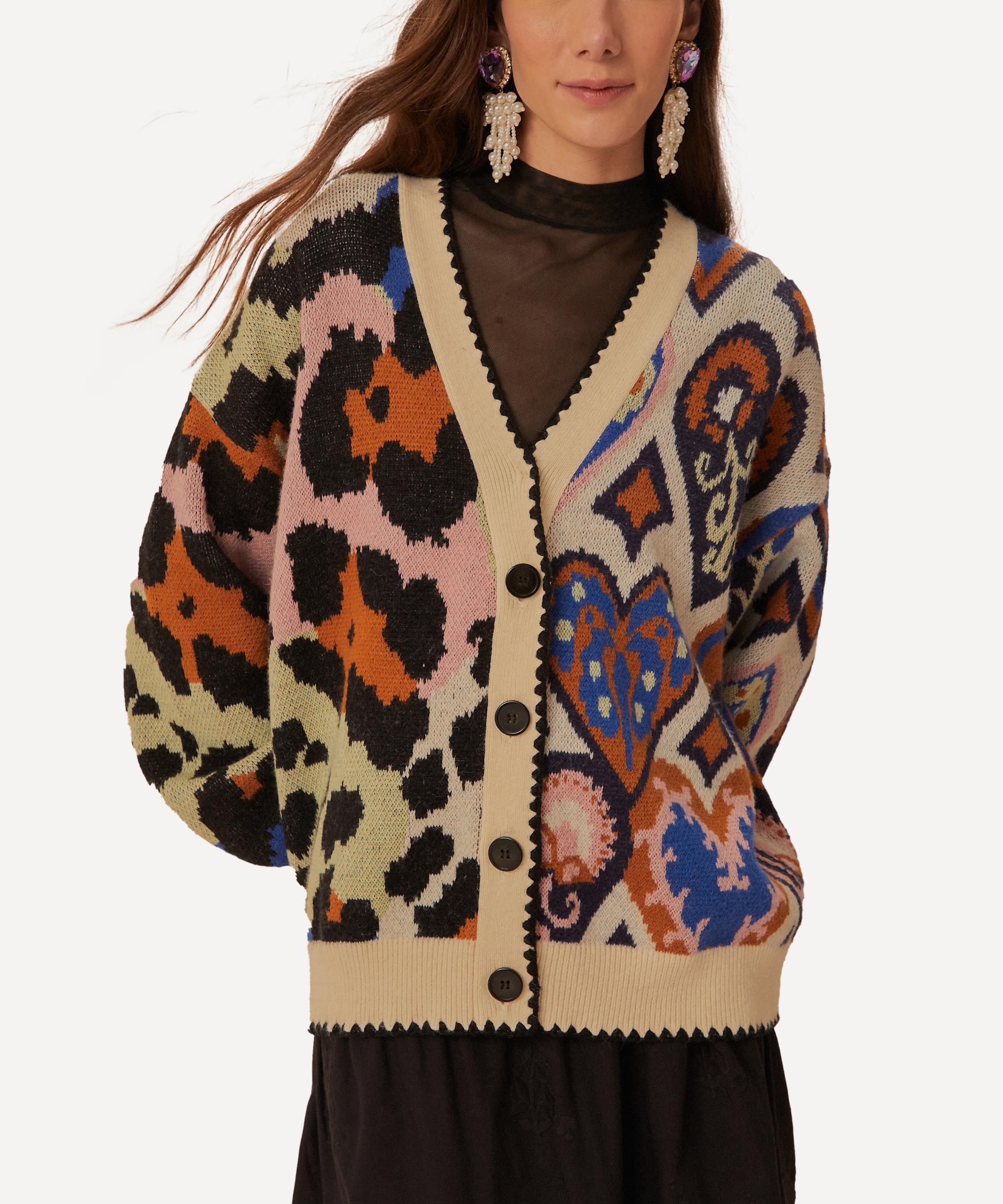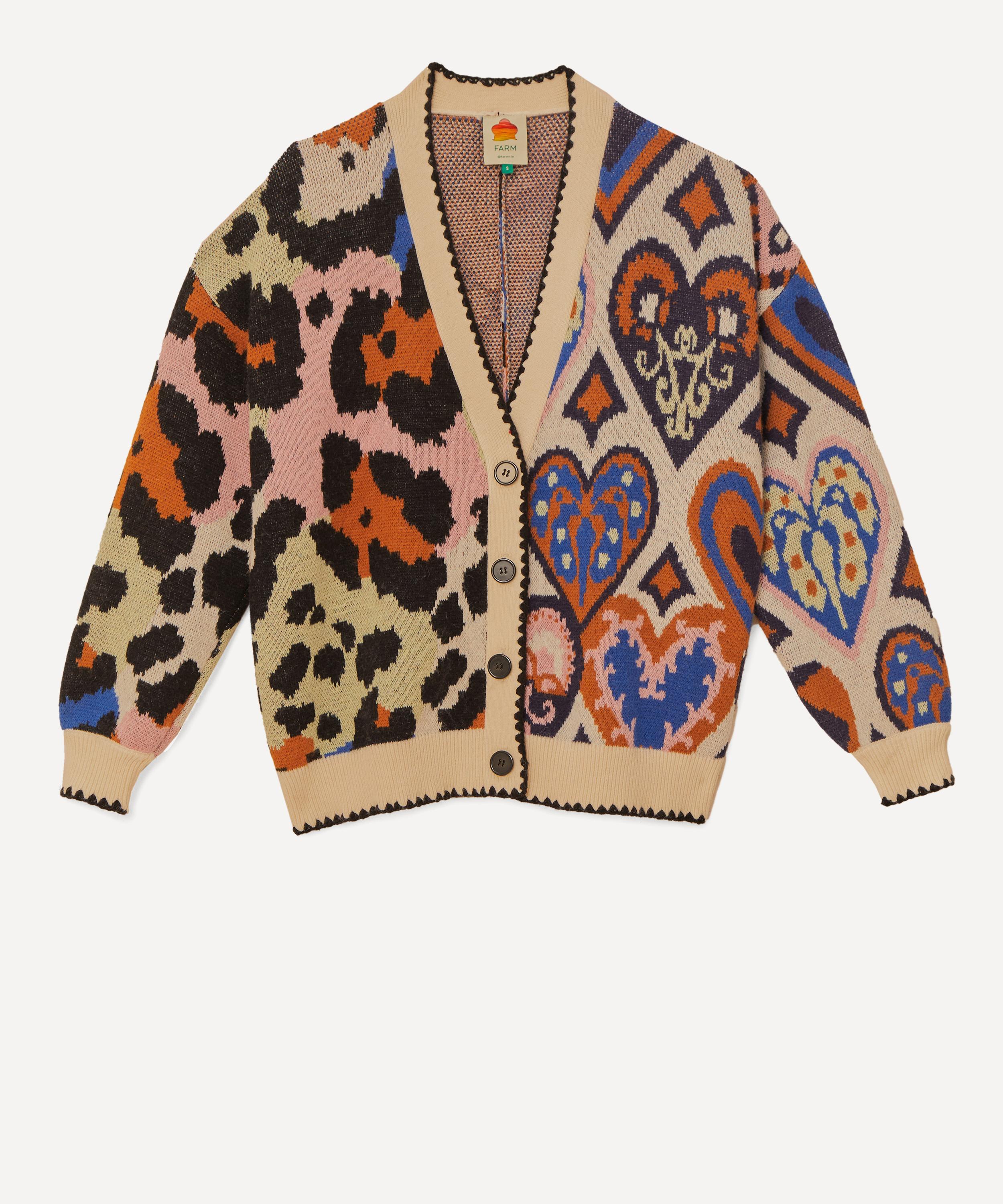 Indulge in the cosy embrace of the Mixed Ikat Hearts cardigan from Rio de Janeiro-based label FARM Rio – a celebration of individual style.