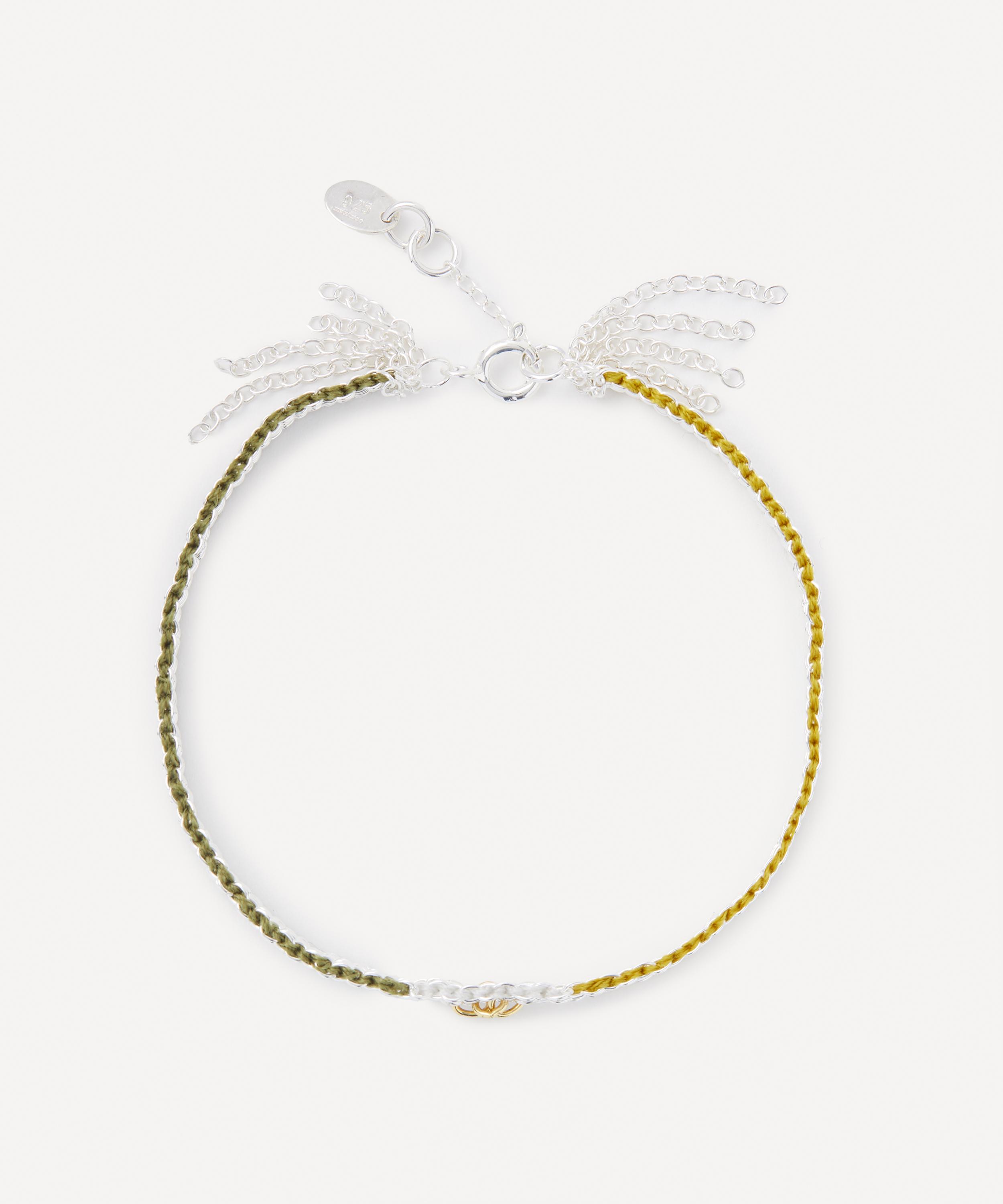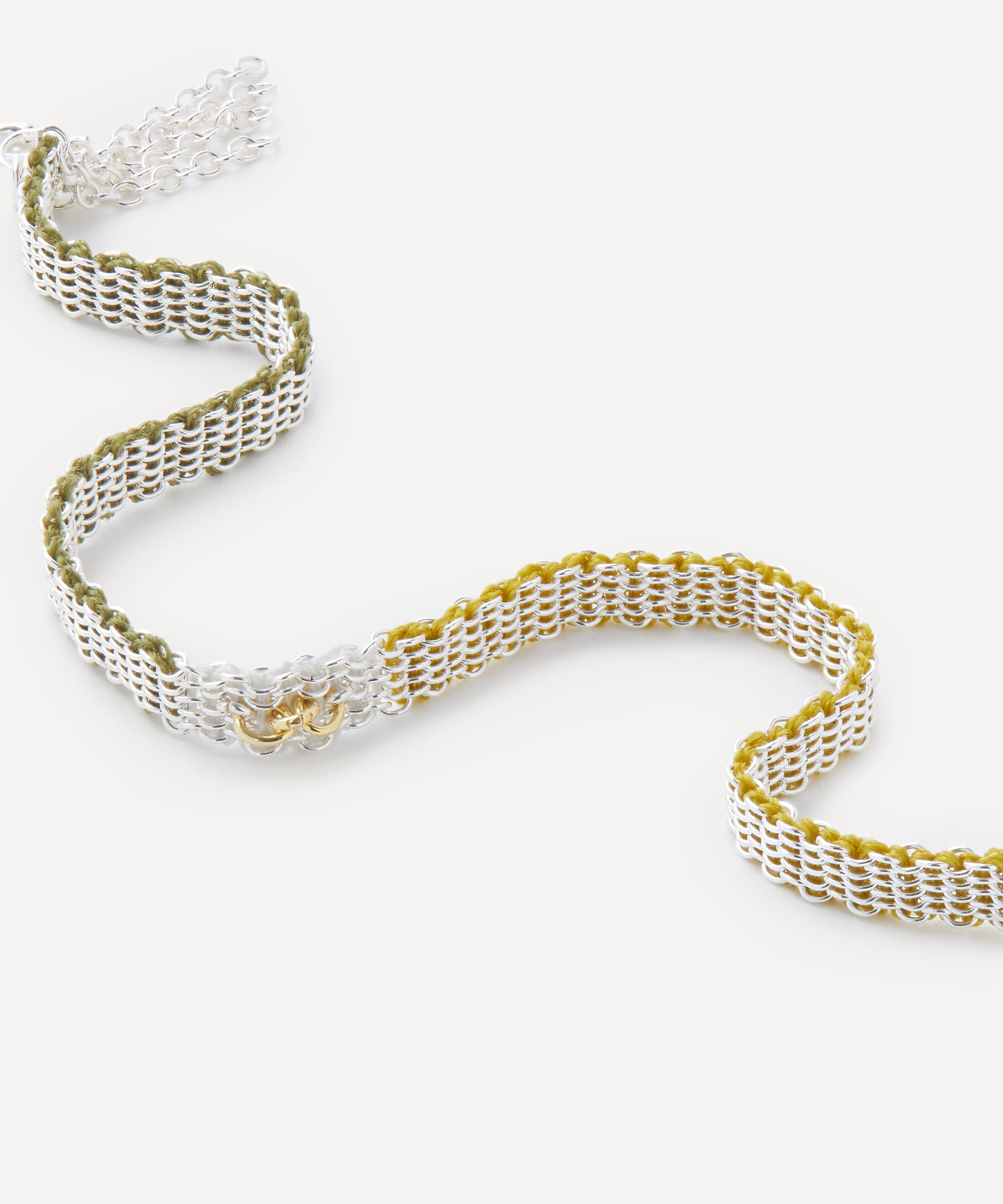 Employing her background in textiles as a catalyst for her work, Stephanie Schneider uses time-honoured handcrafting techniques and traditional jeweller’s materials to mimic the fibrous textures and weave structures of fabric. Using delicate chains as her device, Stephanie intricately arranges and interlinks each of her creations, hallmarking each piece with painstakingly hand-threaded silk, mohair or semi-precious stones. An enchanting collection of precious metal armour ensues, referencing textile trims and techniques including fringing, patchwork and weave. Stephanie Schneider is available exclusively in the UK at Liberty.