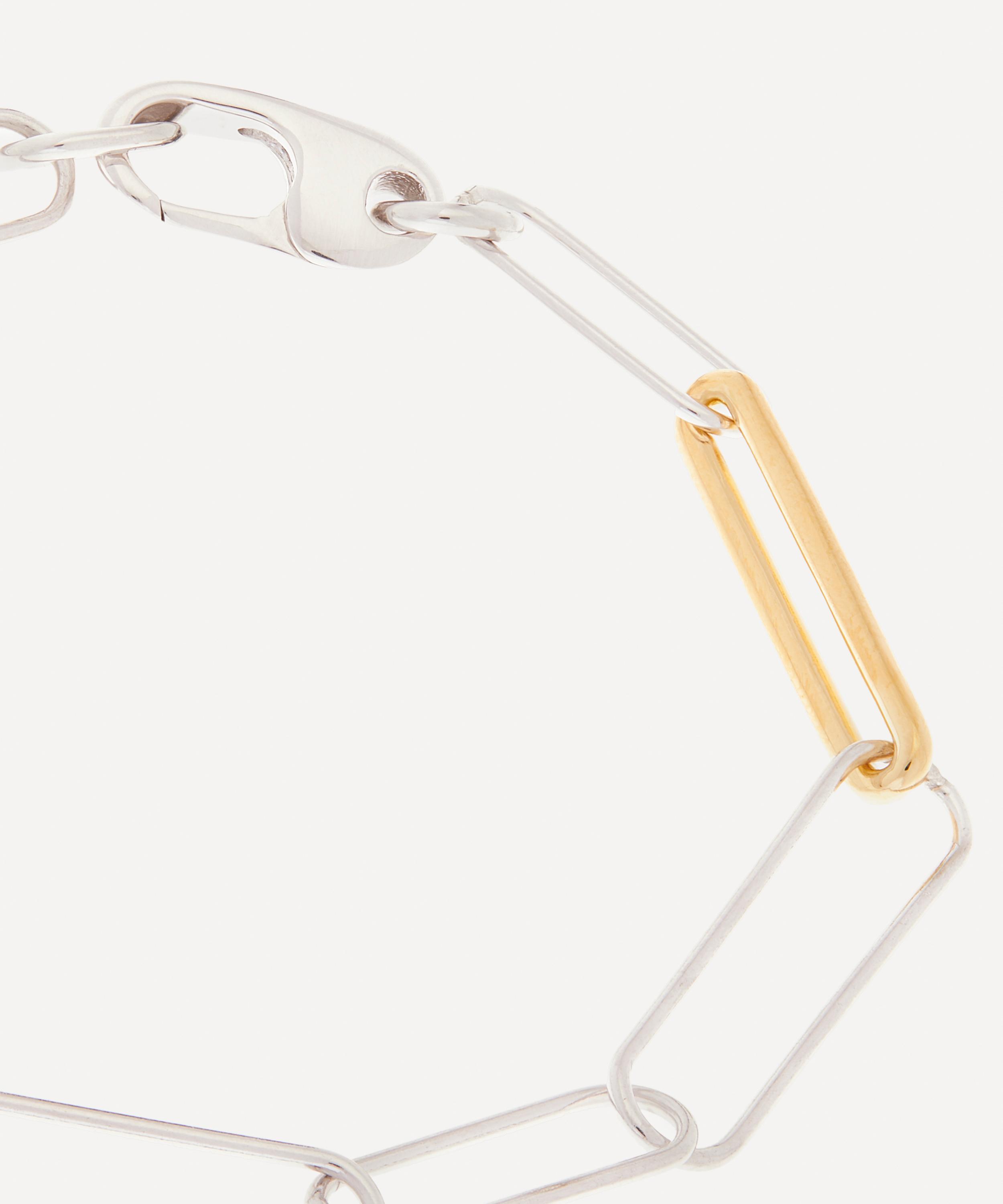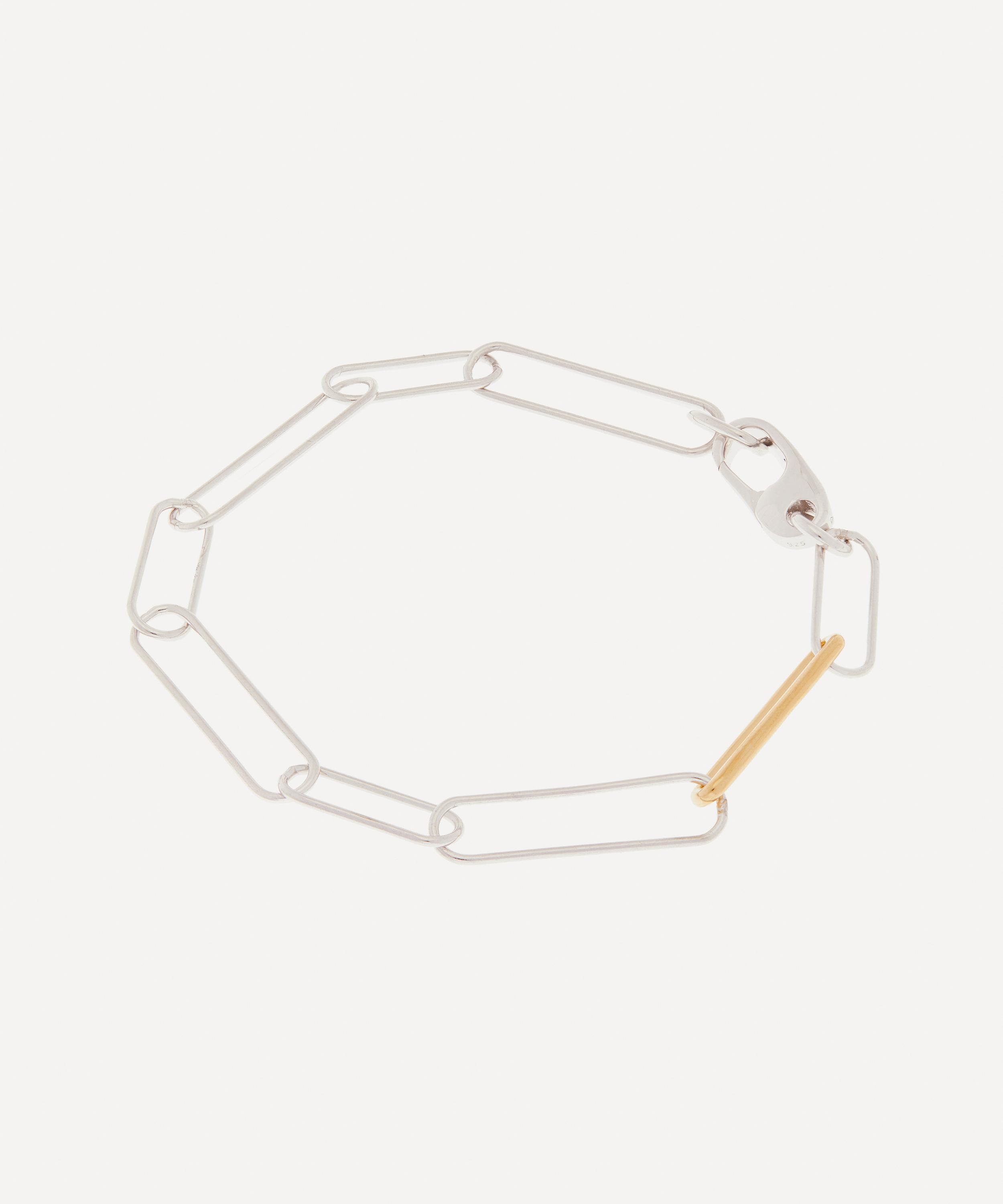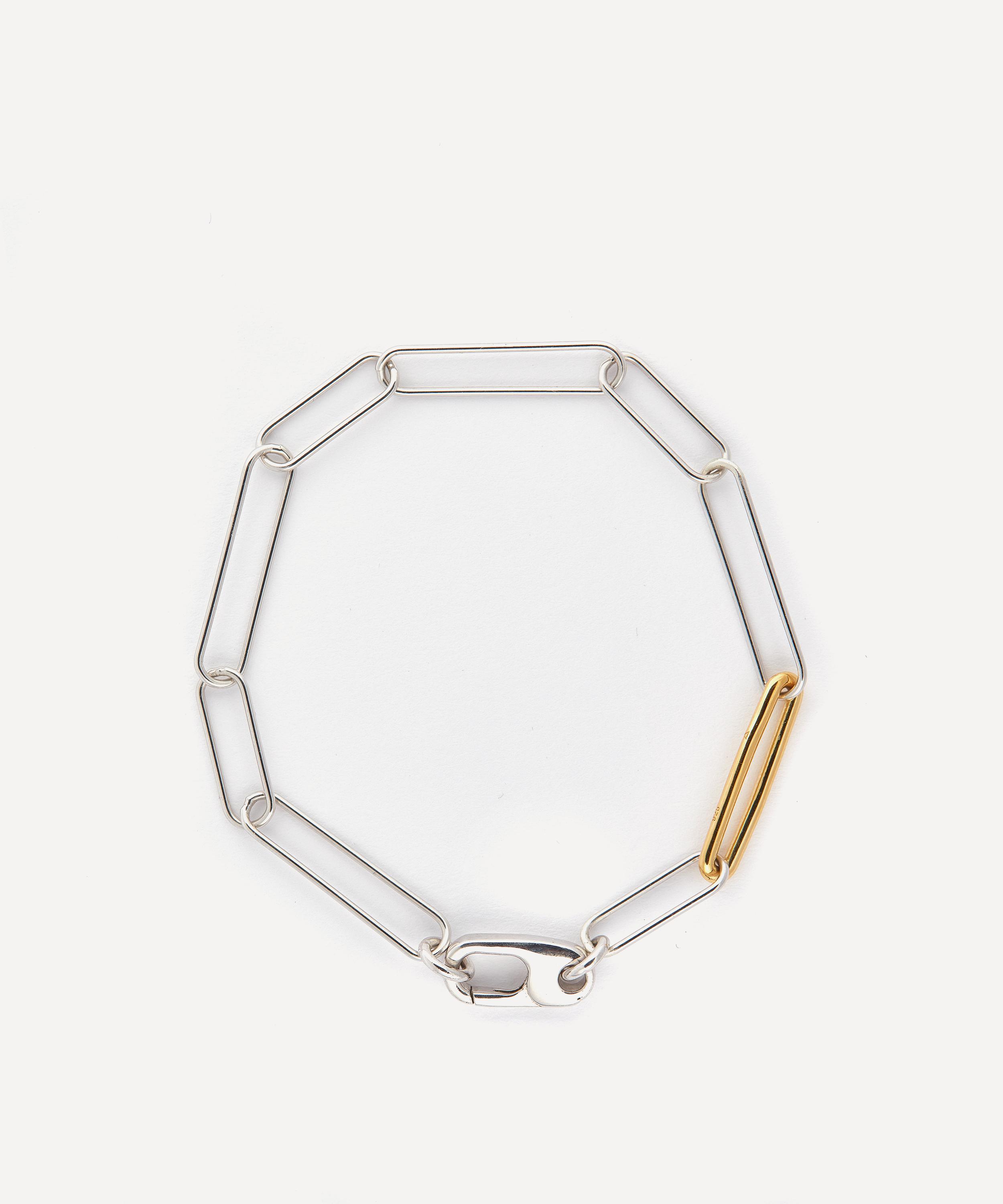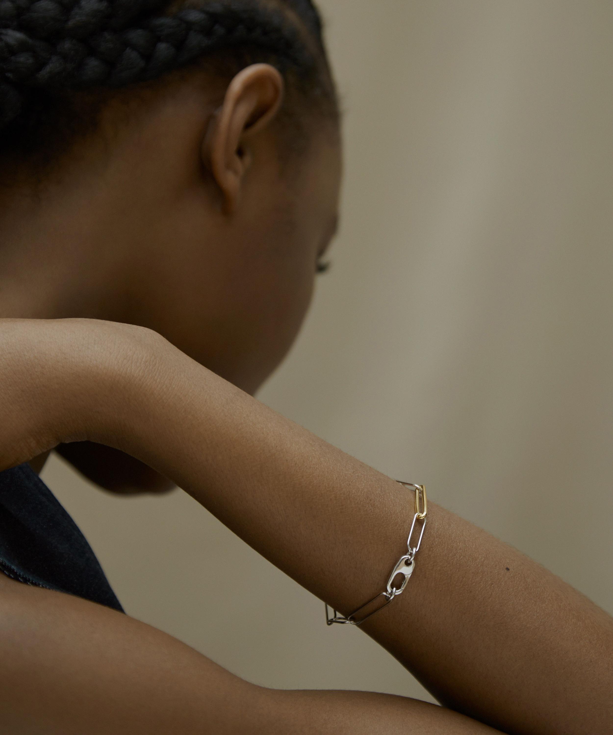 Crafted from sterling silver with eight paperclip links, it features a contrasting gold-plated detail and a utility-inspired carabiner fastening. Team it with the matching Mixed Metal Paperclip necklace, or elevate your curated stack with a sleek minimal aesthetic.