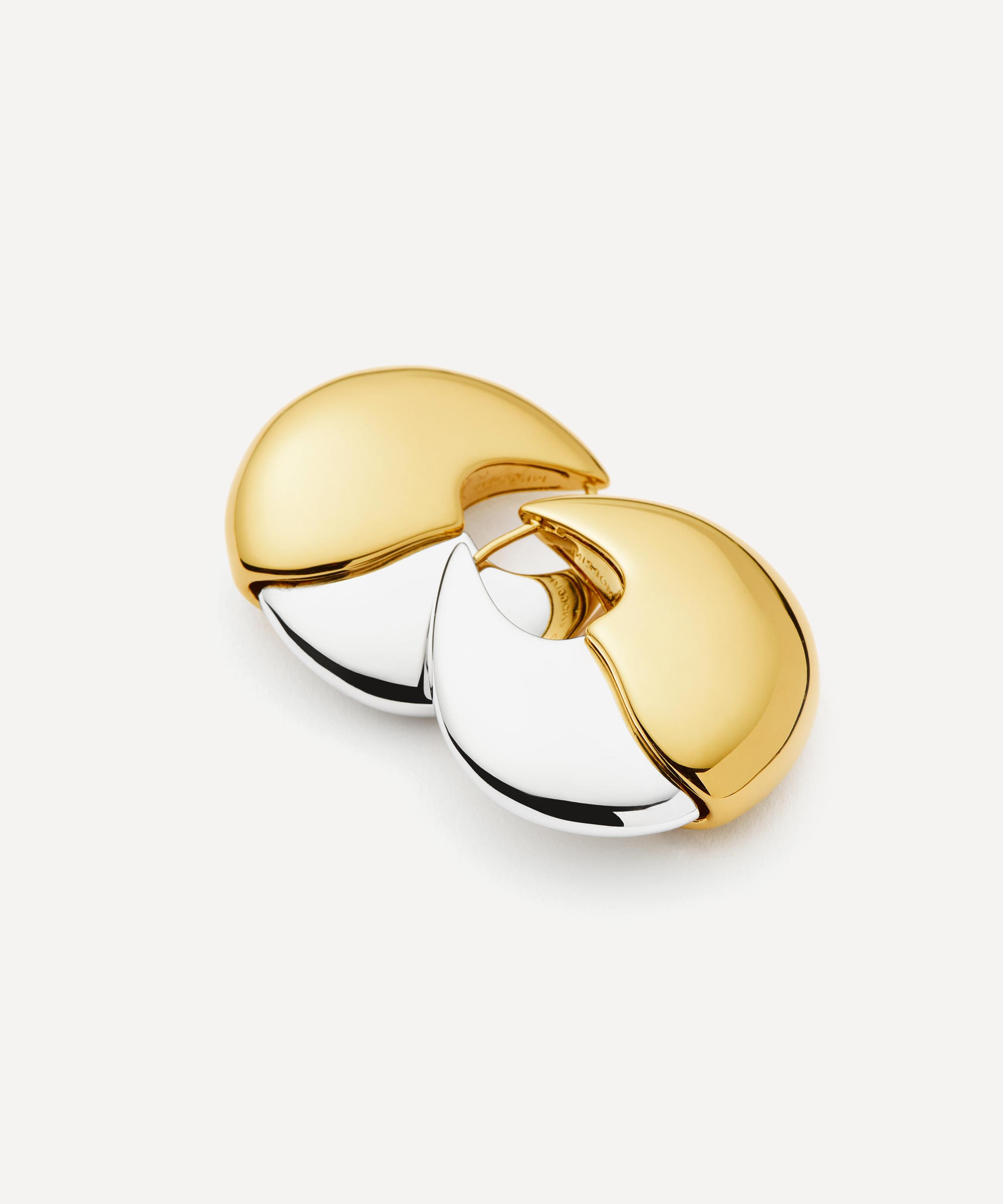 Embrace the maximalist look with these statement-making hoop earrings from Missoma. Inspired by sculptural shapes, each hoop features a pebble-shaped silhouette in gold-plated and rhodium-plated brass – creating dimension and a contrasting interplay of metals for an unmissable style statement. They can be worn with either silver or gold side facing forward, giving you two pairs of hoops in one.