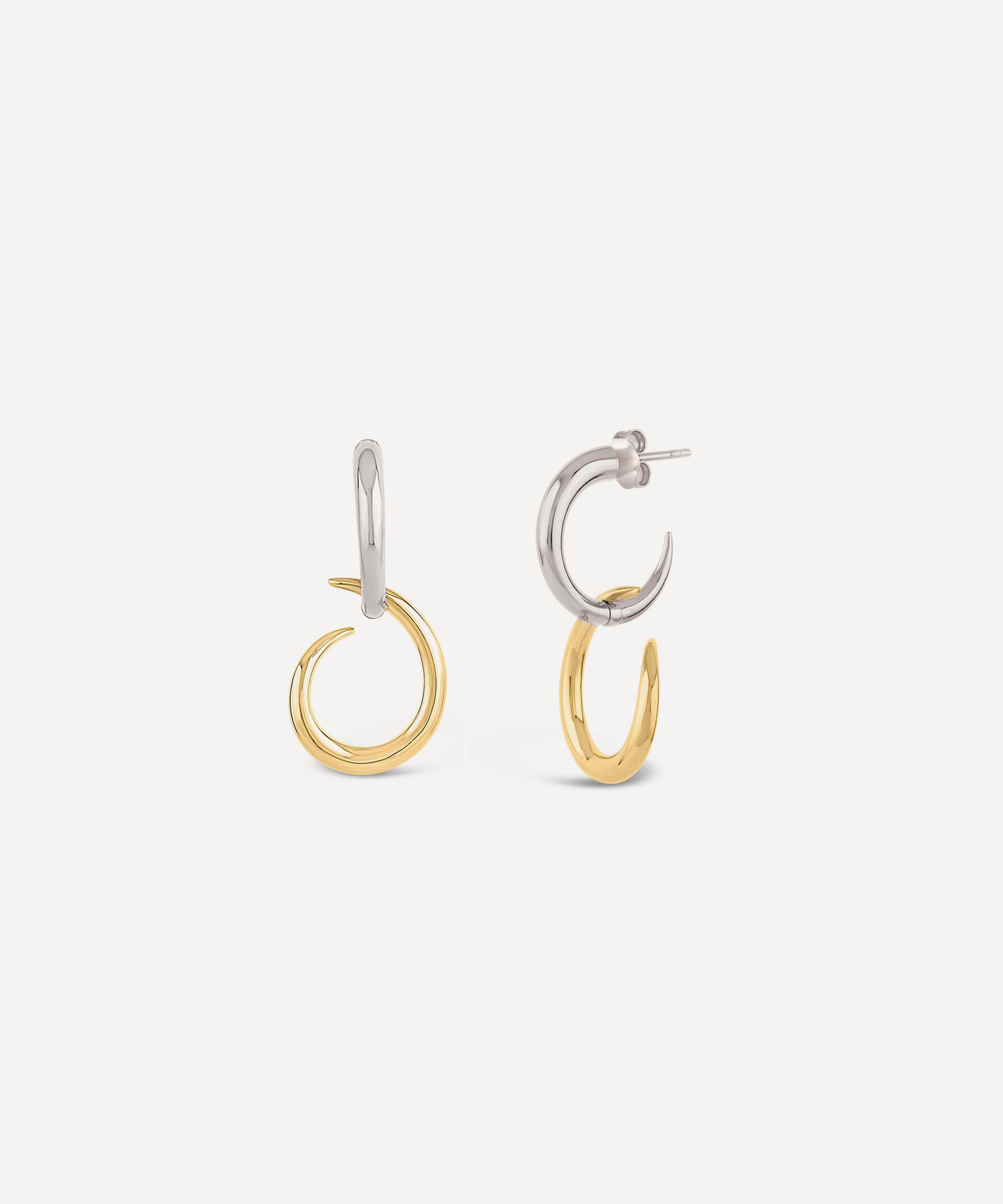 Empower your self-expression and unique style with Dinny Hall’s emblematic Toro drop hoop earrings. Inspired by the Italian cornicello horn, this exceptional pair feature a sleek half hoop in sterling silver with a tapering horn drop made from sterling silver plated in 22ct gold vermeil. Their sculptural yet versatile silhouette offer seamless day-to-night styling, wear them on their own, pair with matching pieces from the collection, or stack with another pair of silver earrings, hoop earrings and studs to add depth and dimension to your look.
