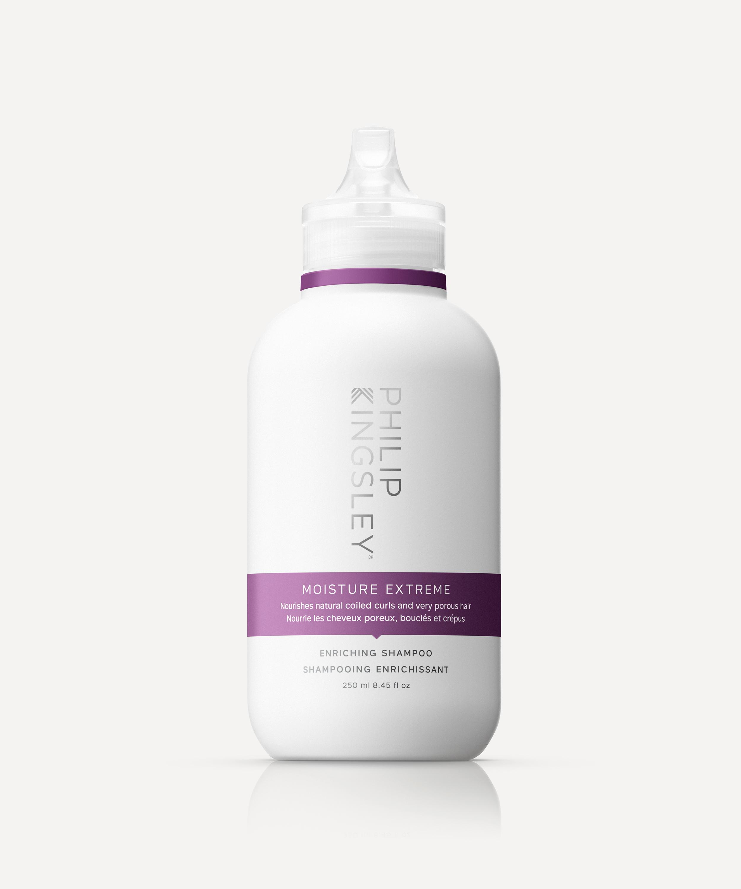 A saviour for naturally coiled and porous hair, Philip Kingsley's Moisture Extreme Shampoo transforms damaged, fragile tresses – leaving them shiny, tamed and fortified. This curl-friendly formula envelops hair in richly nourishing ingredients, including smoothing guar and detangling cocoa butter, that work in synergy to deeply condition and lock in moisture, revealing hair full of vitality, bounce and hydration.