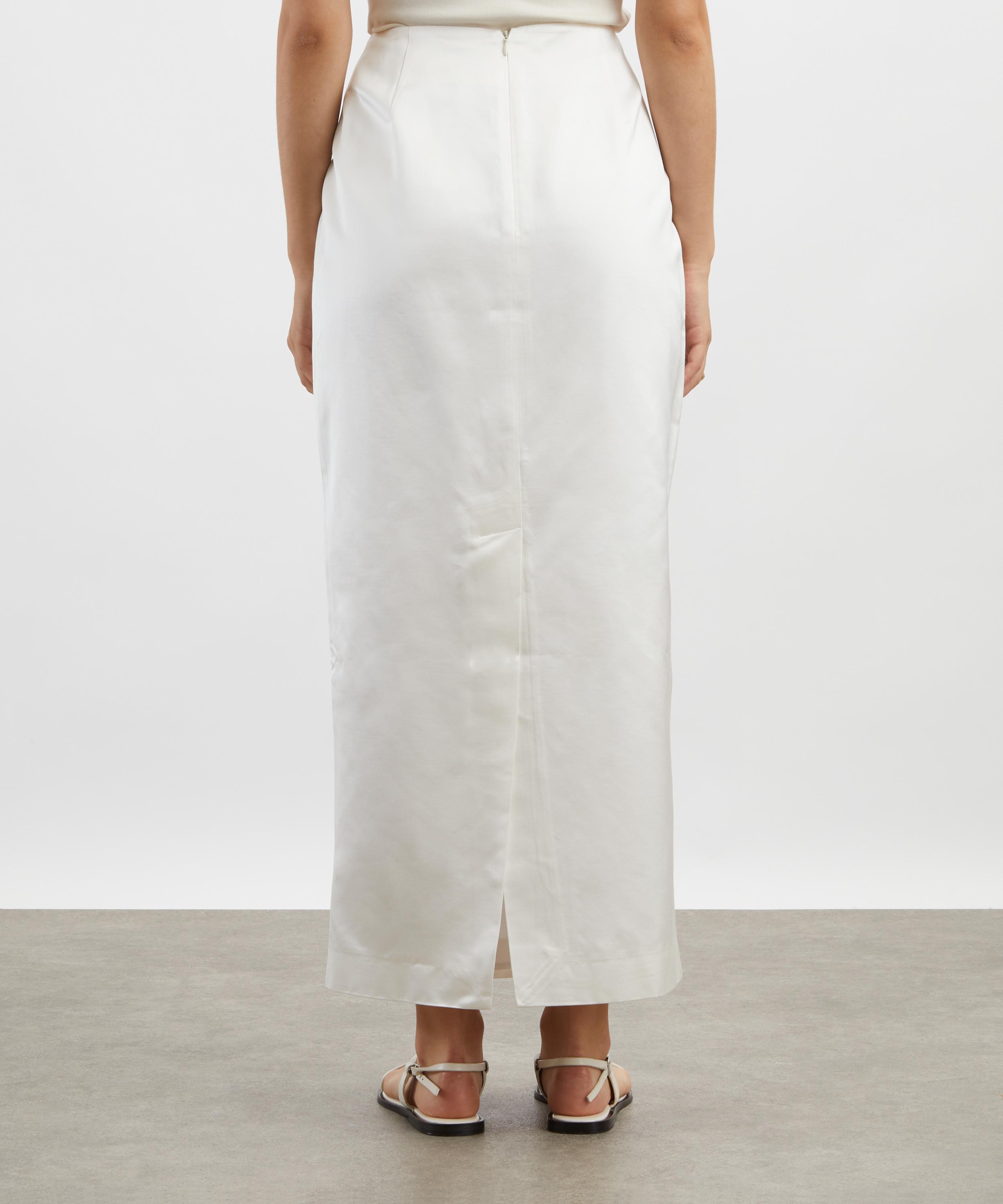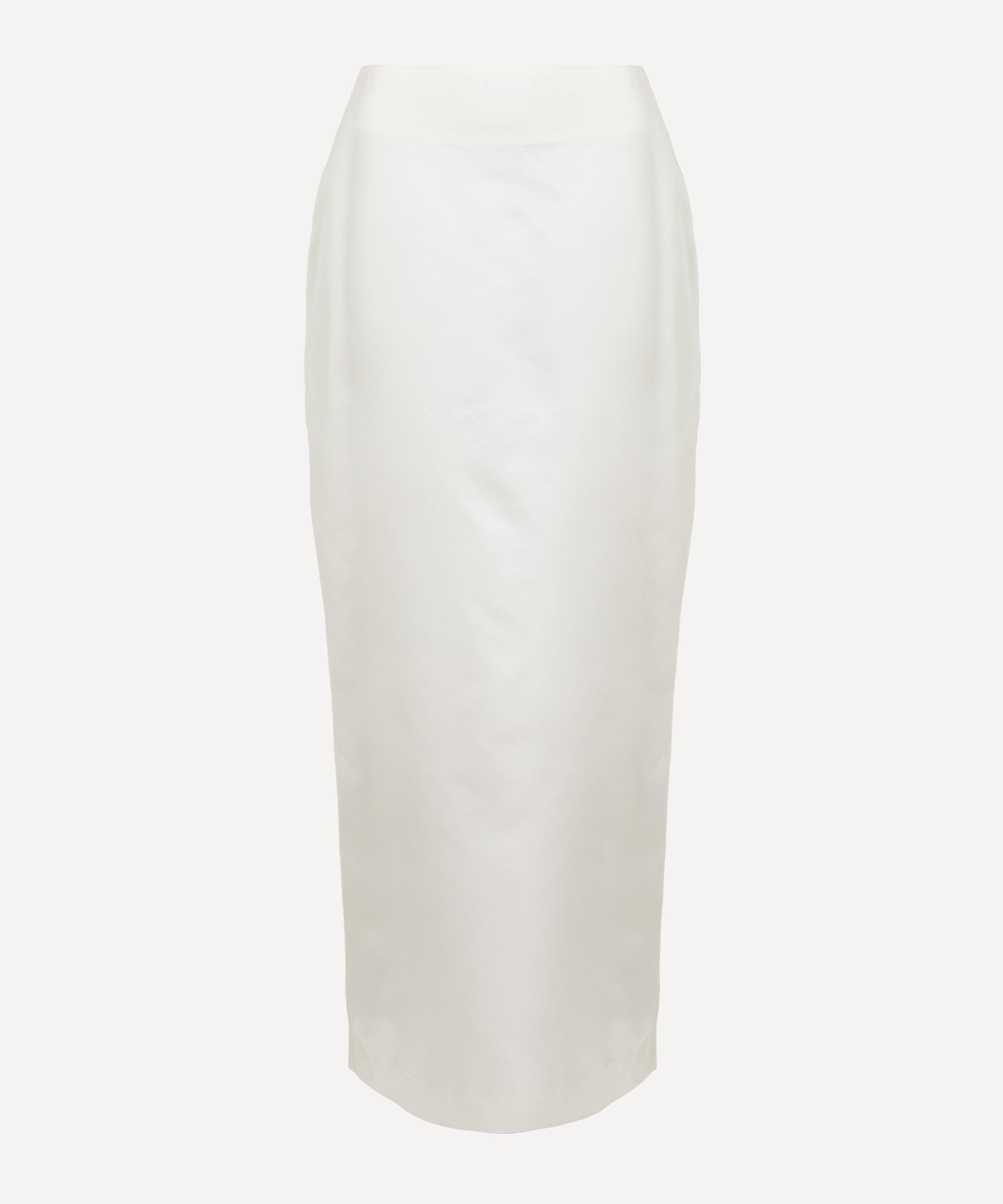 Crafted from crisp white cotton, the Monica Duchess skirt exudes effortless elegance with its clean, pencil-style silhouette, finished with a back vent for ease of movement.