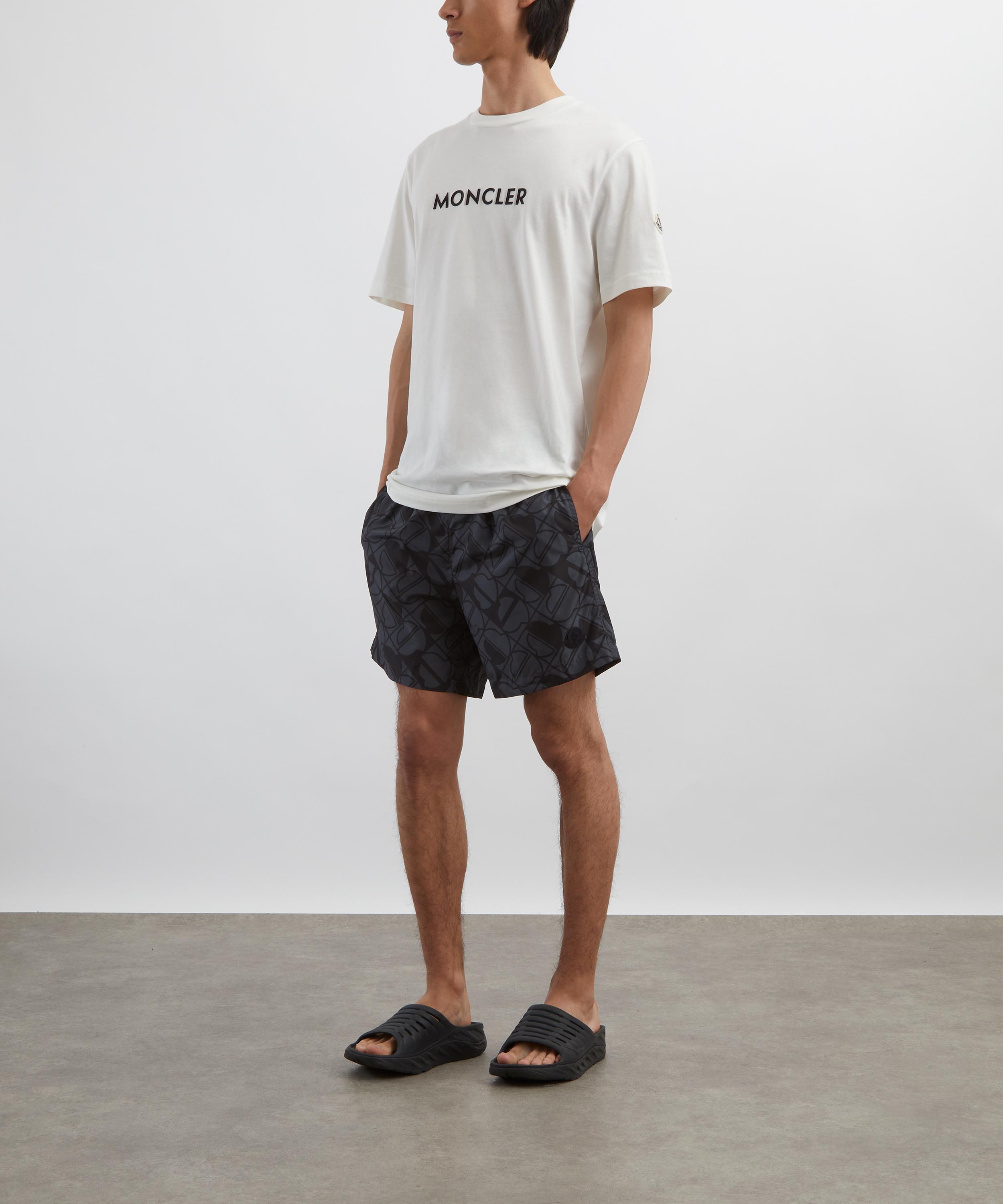 The Monogram Print Swim Shorts from Italian lifestyle brand Moncler display the slick finishes and technical tailoring the brand is known for.