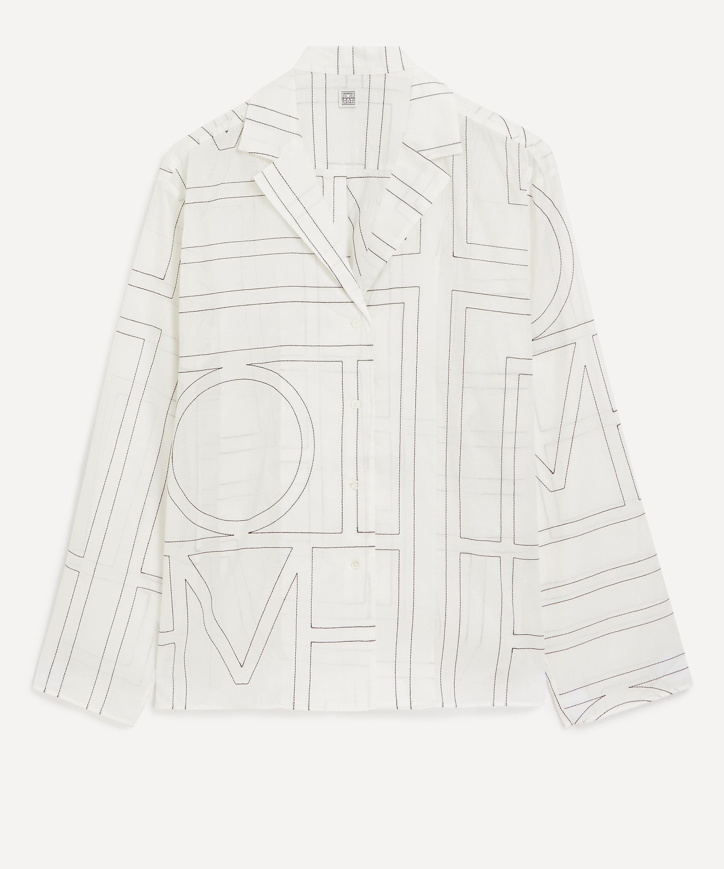 Delicately detailed with TOTEME topstitched embroidery throughout, this cotton-blend shirt features a relaxed fit with dropped shoulders and long sleeves. Secured with mother-of-pearl buttons, its notched collar is inspired by classic pyjamas. Pair it with the matching shorts to complete the look.