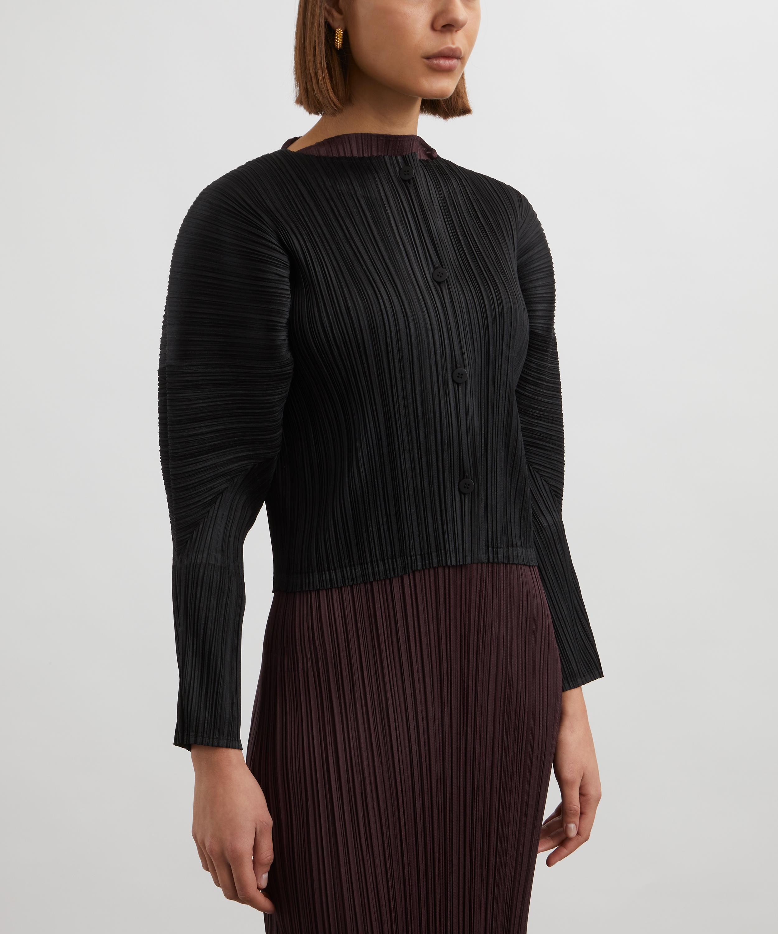 A signature style showcasing Issey Miyake’s innovative pleating technique, the MONTHLY COLOURS: OCTOBER Black Pleated Cardigan is a timeless staple.