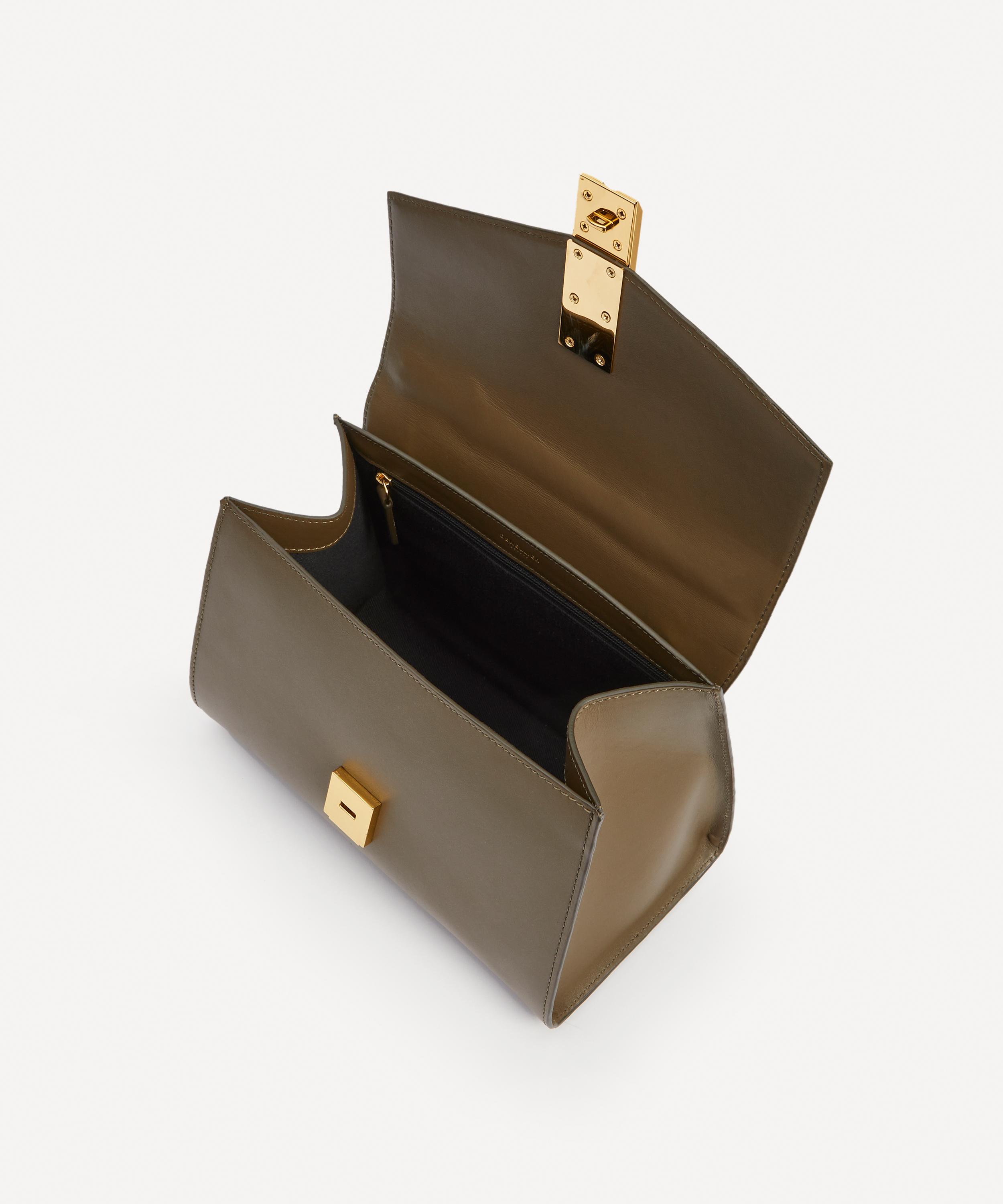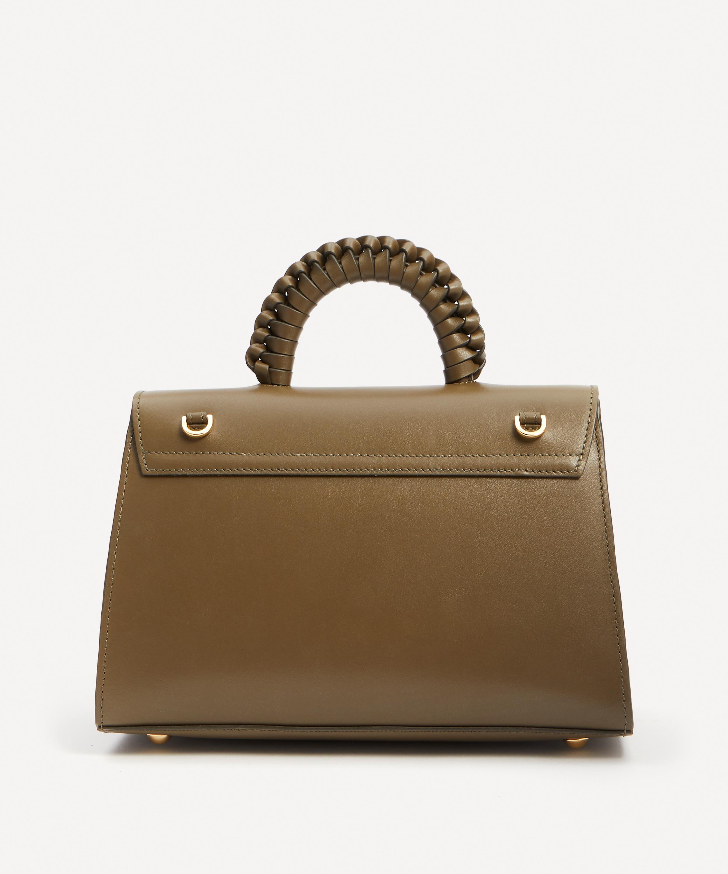 Handcrafted with integrity from soft leather, this bag features a compact silhouette with a V-shaped front fap and elongated arrow-shaped lock. It’s defined by its versatile design – with a detachable strap and a beautifully braided top handle, it can be worn on the shoulder, across the body or held by hand.