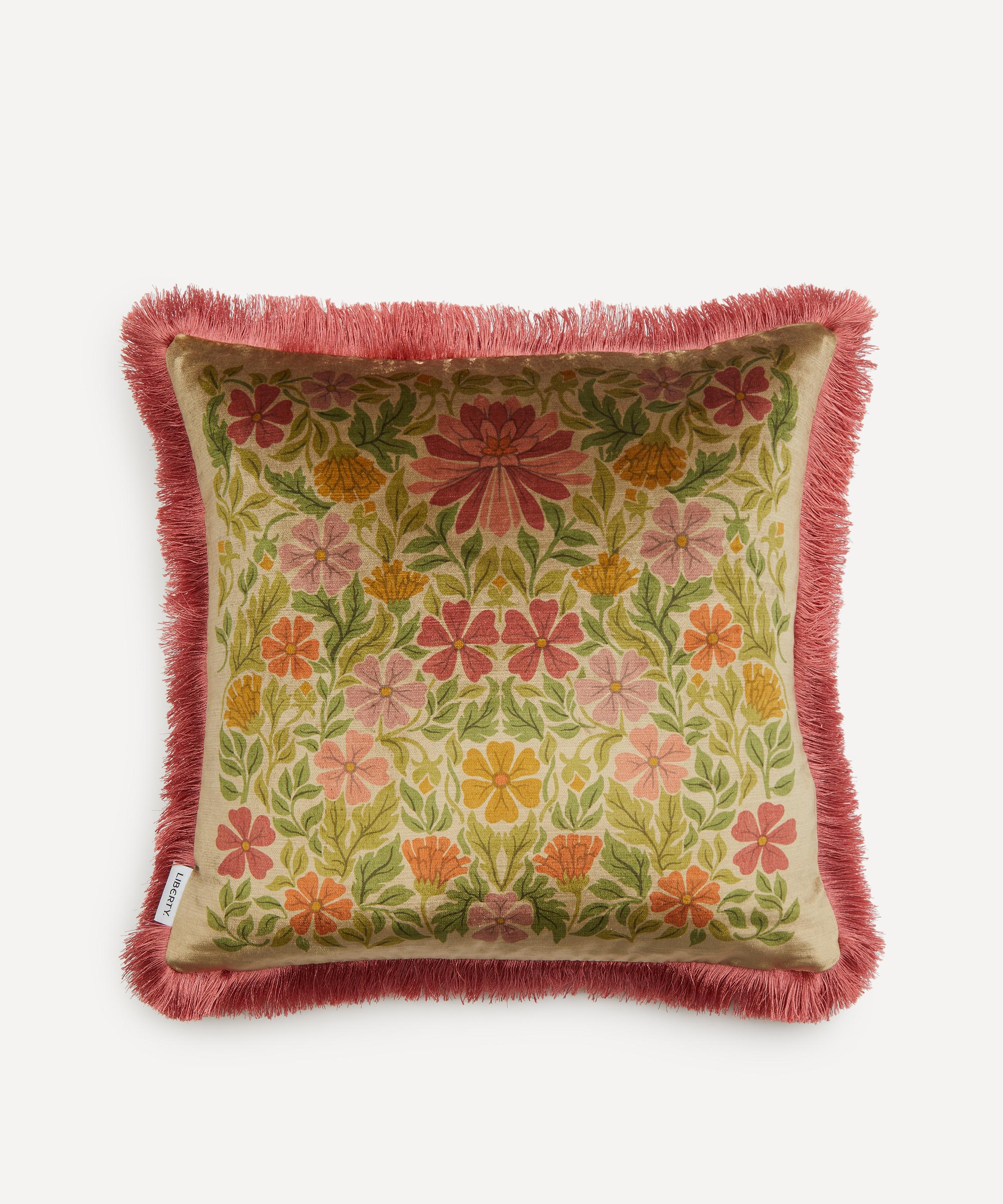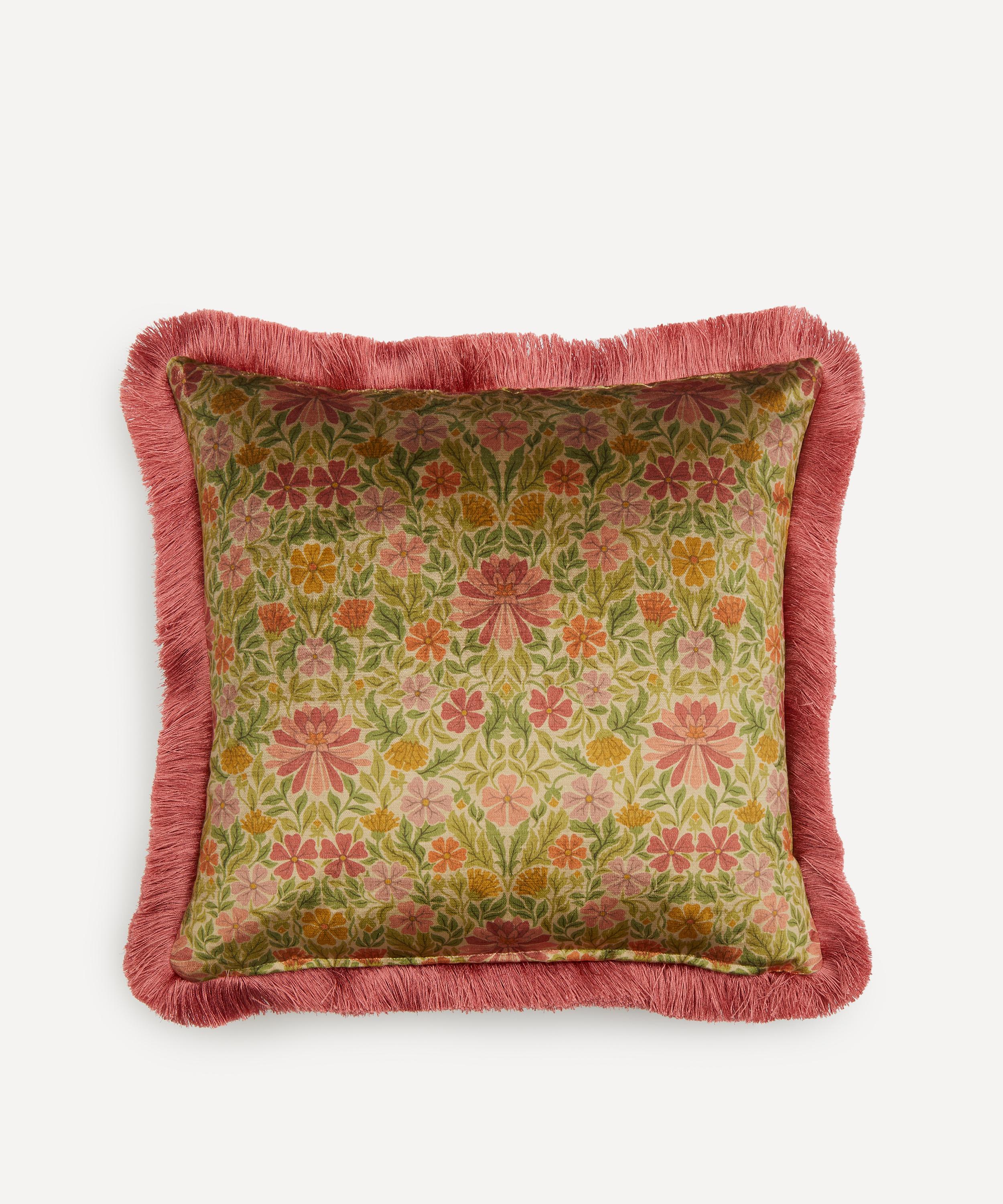 This Liberty square cushion features our Moon Garden print and is decadently soft with a plump recycled duck feather filling. Created in the Liberty design studio, Moon Garden – echoing the essence of the Arts and Crafts-style – appears here in a beautifully engineered iteration, complete with a fringed edge for an immaculate finish. The cushion’s classic silhouette and richly hued palette add an elegant twist to modern interiors.