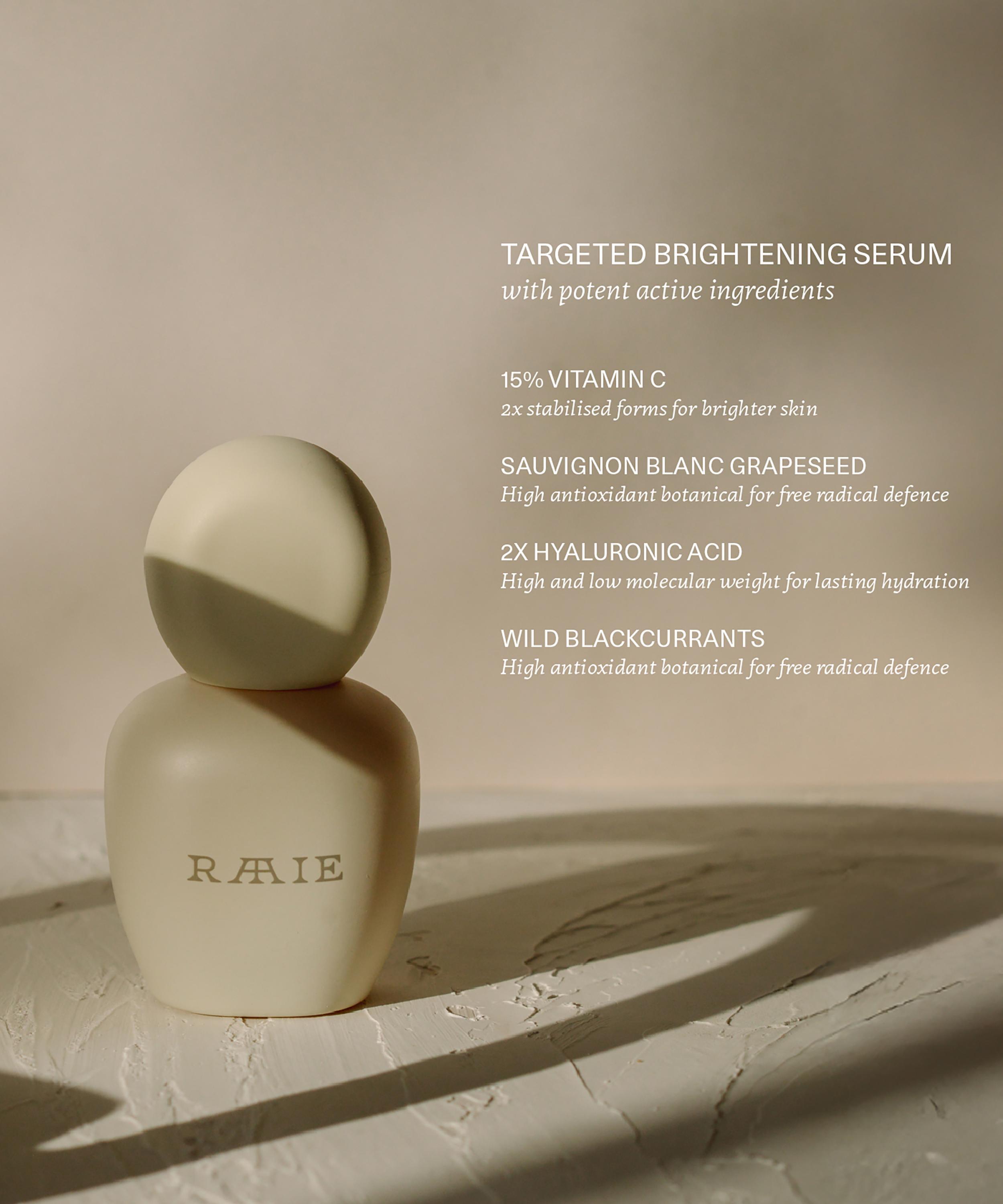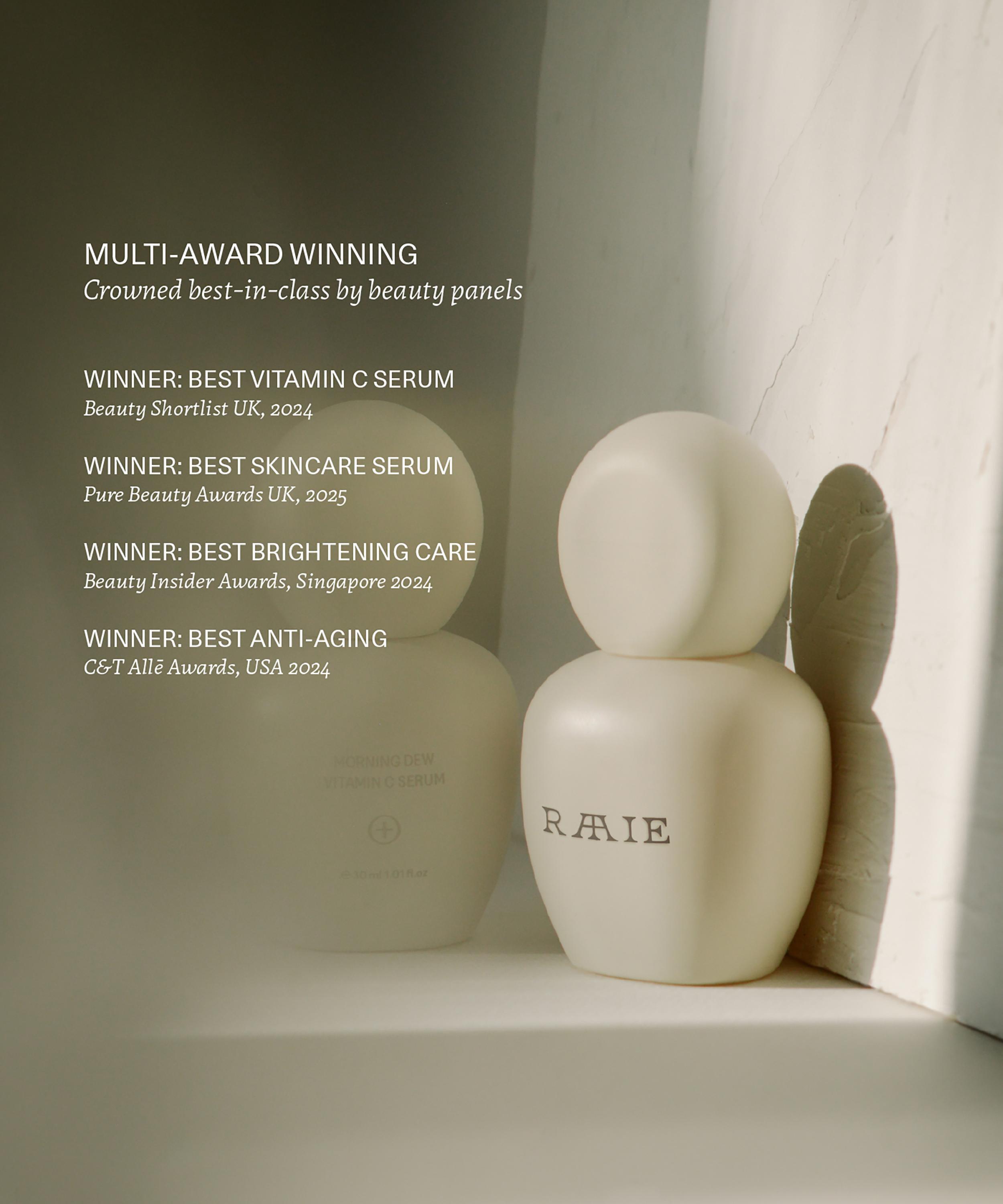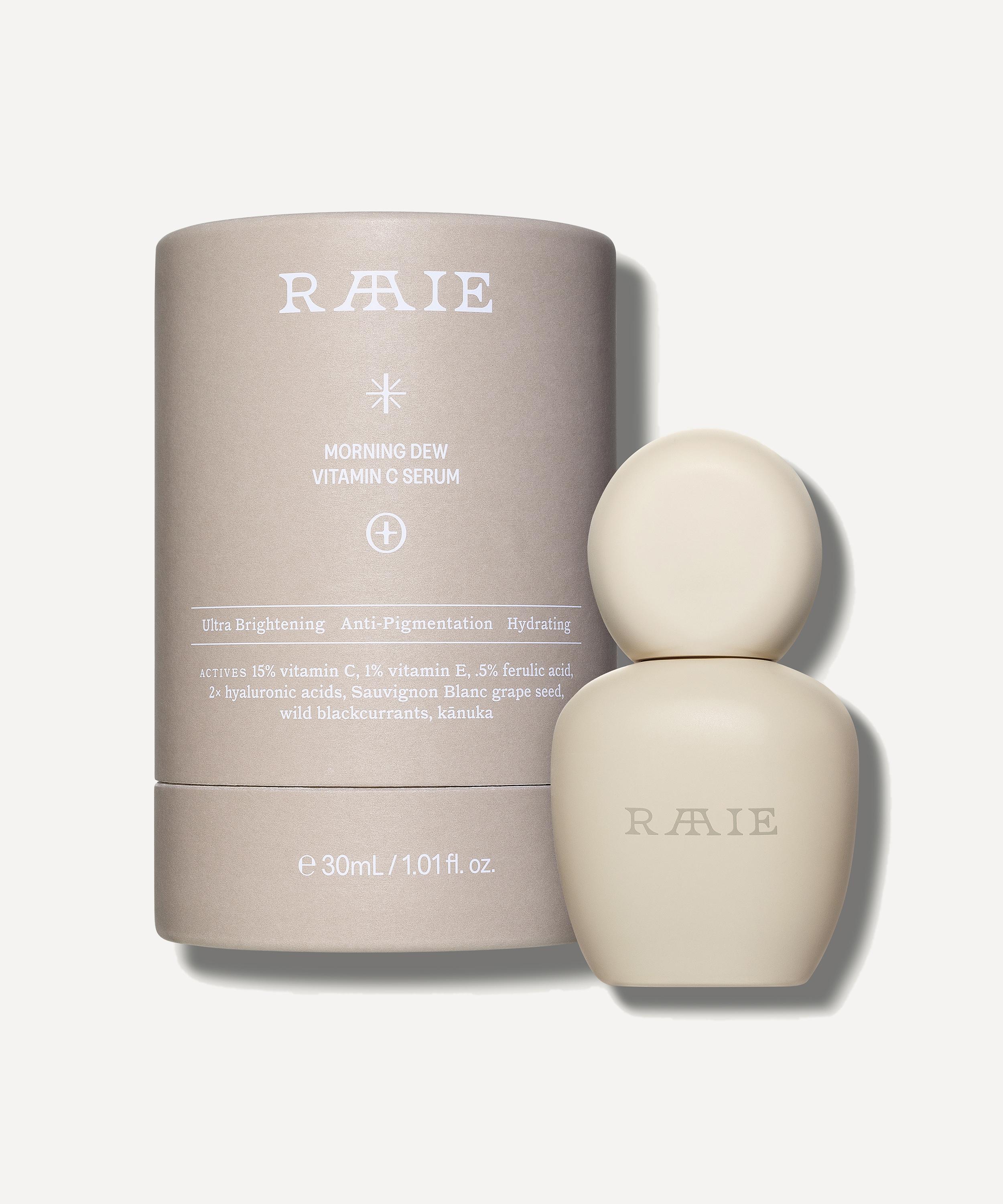 RAAIE's Morning Dew Vitamin C Serum is an award-winning daily treatment that targets dark spots, redness and pigmentation at the source, defending against future signs of ageing for plumper, more even-toned and radiant skin.