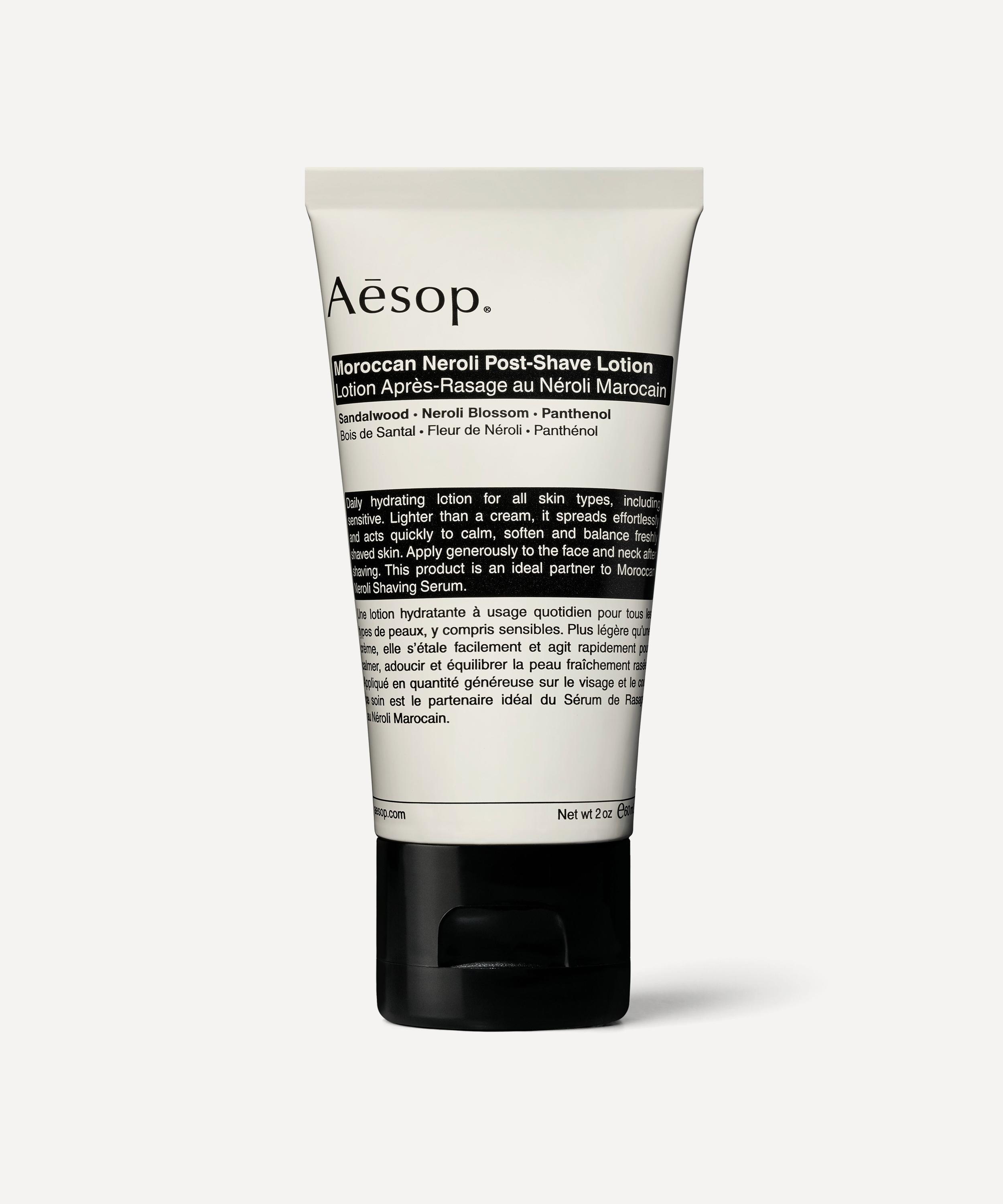 Aesop Moroccan Neroli Post-Shave Lotion is a unisex hydrator designed to soothe and replenish normal, combination and sensitive skin types after shaving.