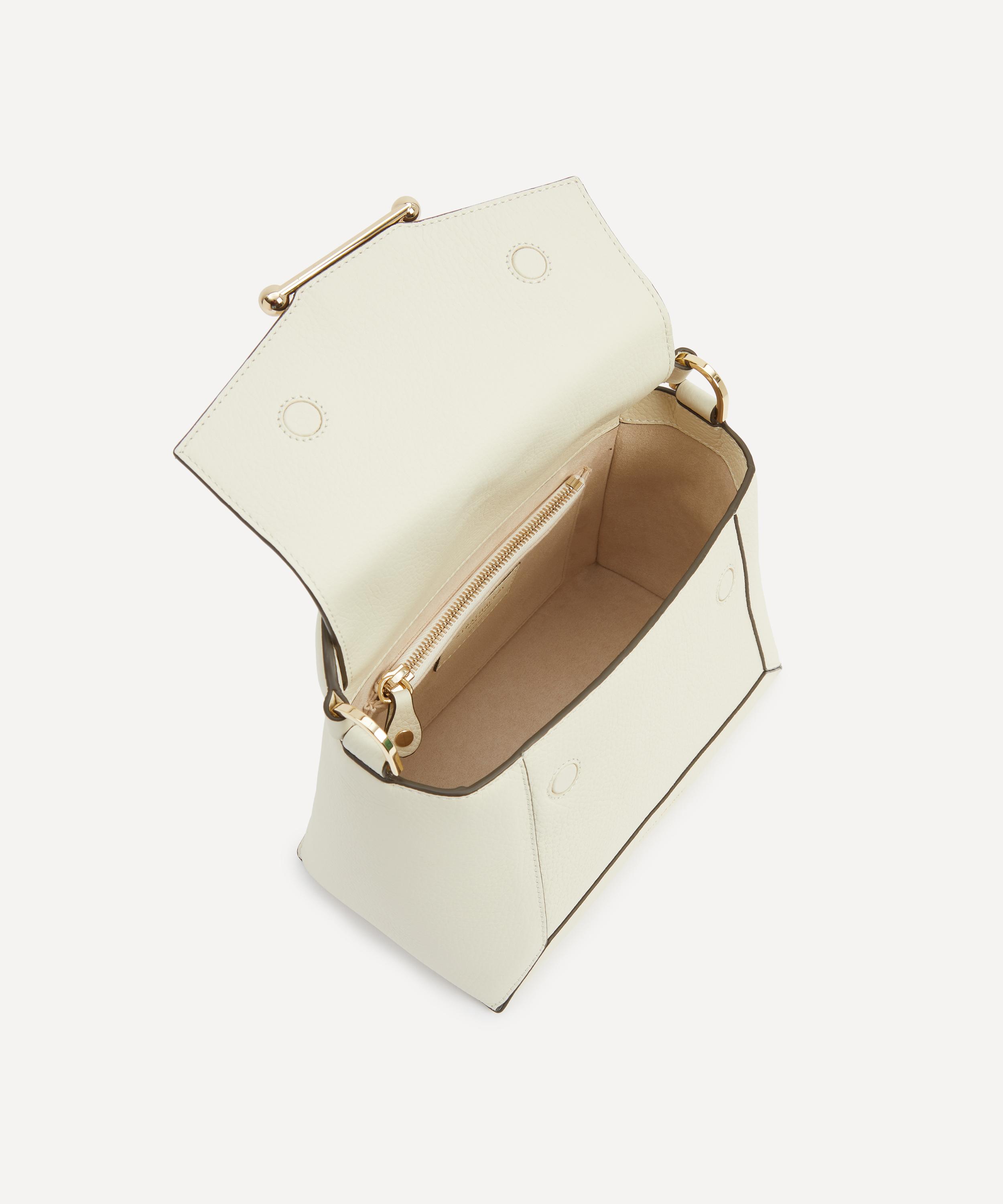 Handmade in Spain from grained calfskin leather and a soft microfibre lining, it features the brand’s best-selling silhouette, a masterpiece of clean, precise lines inspired by the works of Scottish artist Eduardo Paolozzi. Equipped with a spacious main compartment and a zipped interior pocket, secured by a signature bar closure, it’s guaranteed to add an air of sophistication to any outfit. Complete with one top handle and a detachable, adjustable strap – style it crossbody, sling it over your shoulder, or carry it by hand.About Strathberry