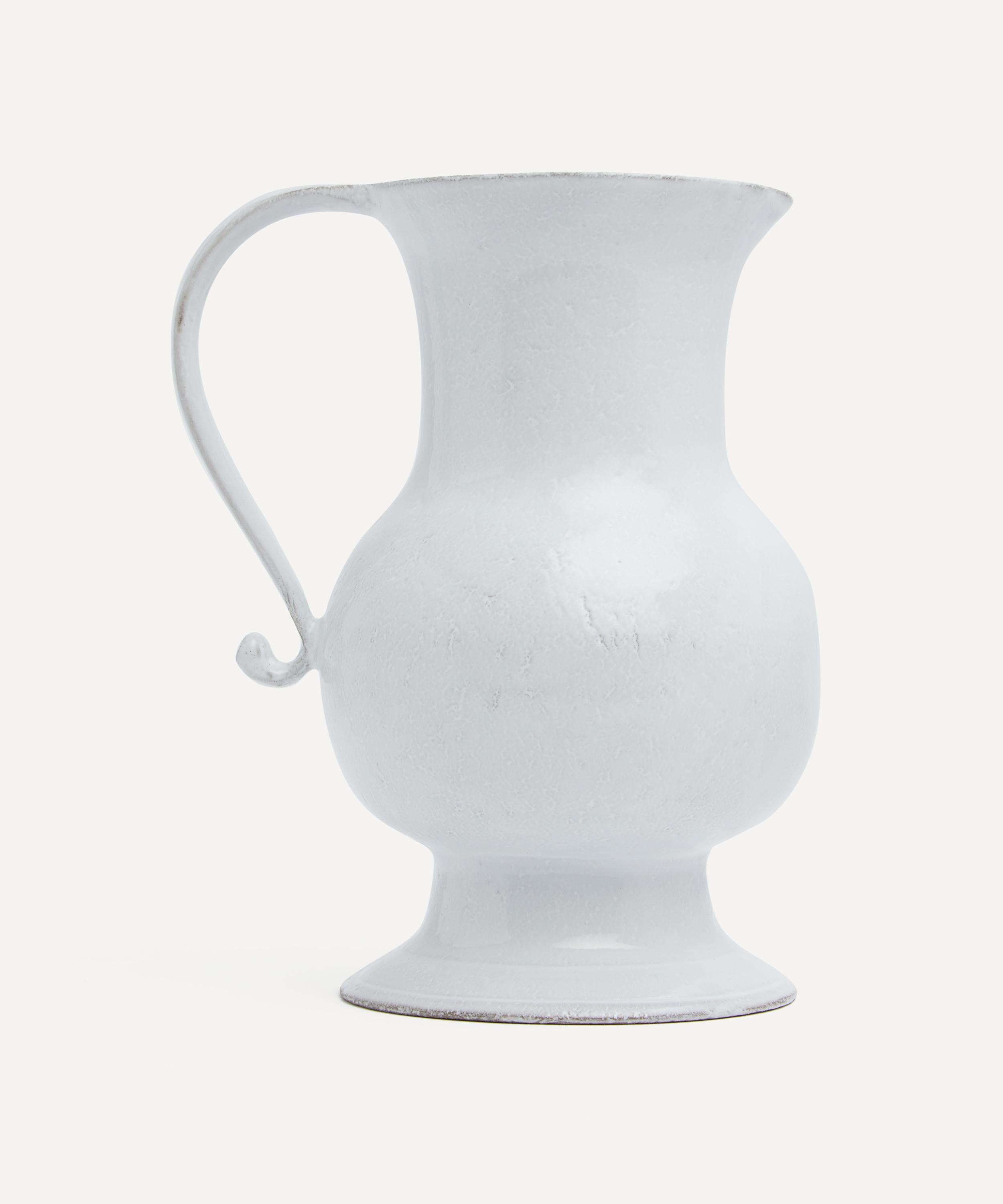 Votary of pre-industrial fabrication, Astier de Villatte is celebrated for being the one and only studio in Paris to hold and harbour the traditions of artisanal ceramic production. Restoring the ancestral systems of moulding and stamping, this pitcher is made using handcrafting techniques from the Middle Ages which involve moulding a handmade sheet of clay, double firing the ‘biscuit’ piece and glazing the product in white enamel – a lengthy process that involves a drying time of up to one month. Characterised by a floral design to the center, this pitcher is engraved with the brand’s signature crest - depicting an interlacing A & V - alongside the initials of one of the 40 master artisans who created it. Each handmade piece tells a beautiful story, it romances and imparts a sense of nostalgia into its owner. Arrange alongside glazed bowls and plates in the collection to breathe an air of authenticity into your table setting.