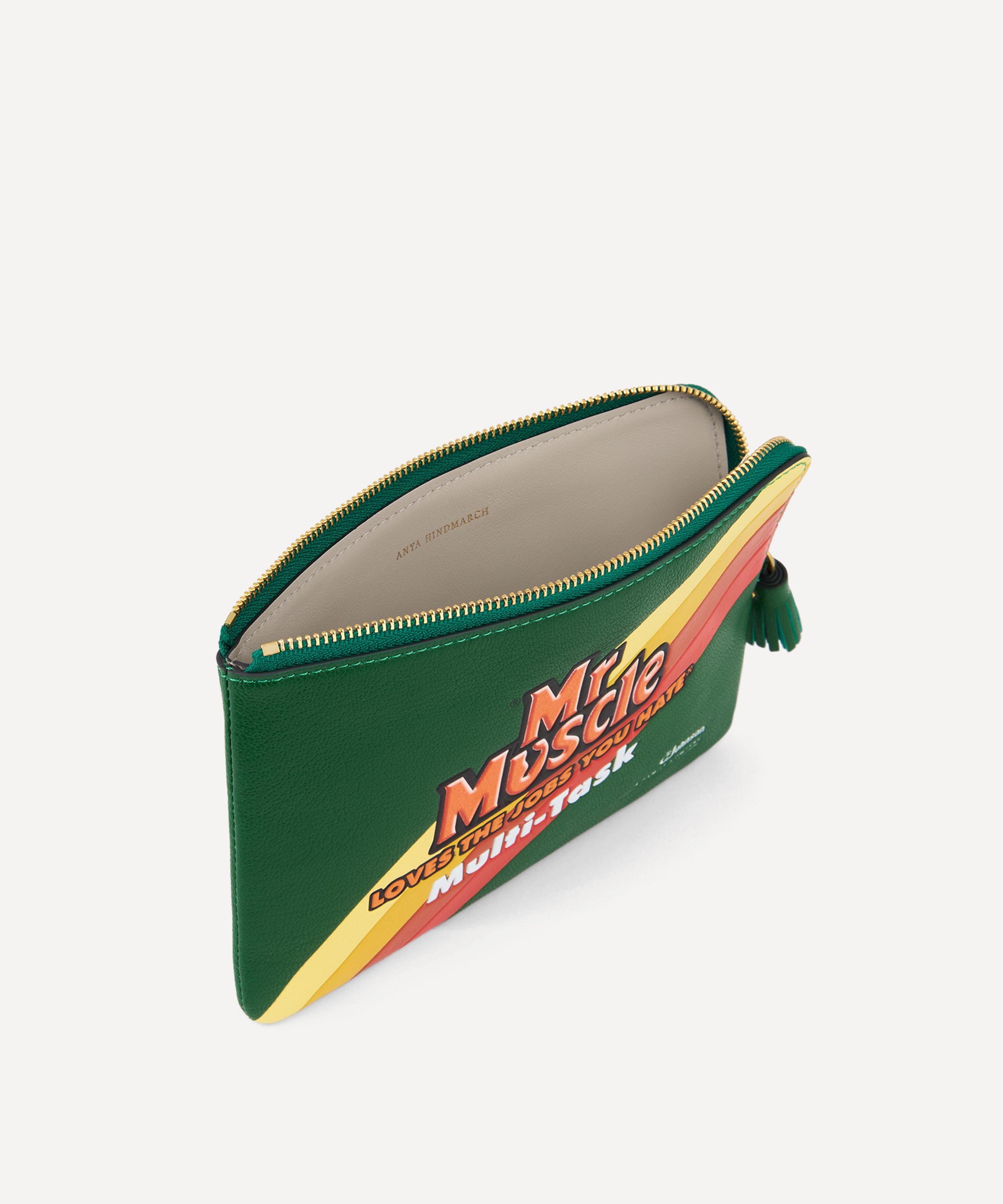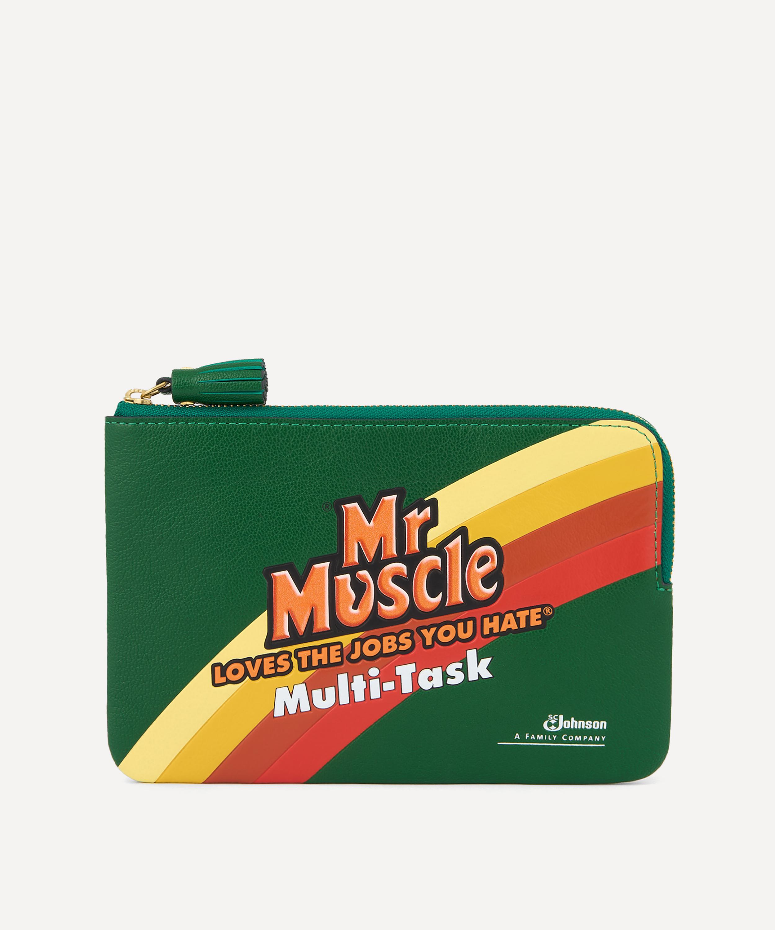Inspired by the designer’s famous obsession with iconic brands, the Mr Muscle zip loose pocket from Anya Hindmarch is an idiosyncratic addition to your handbag arsenal.