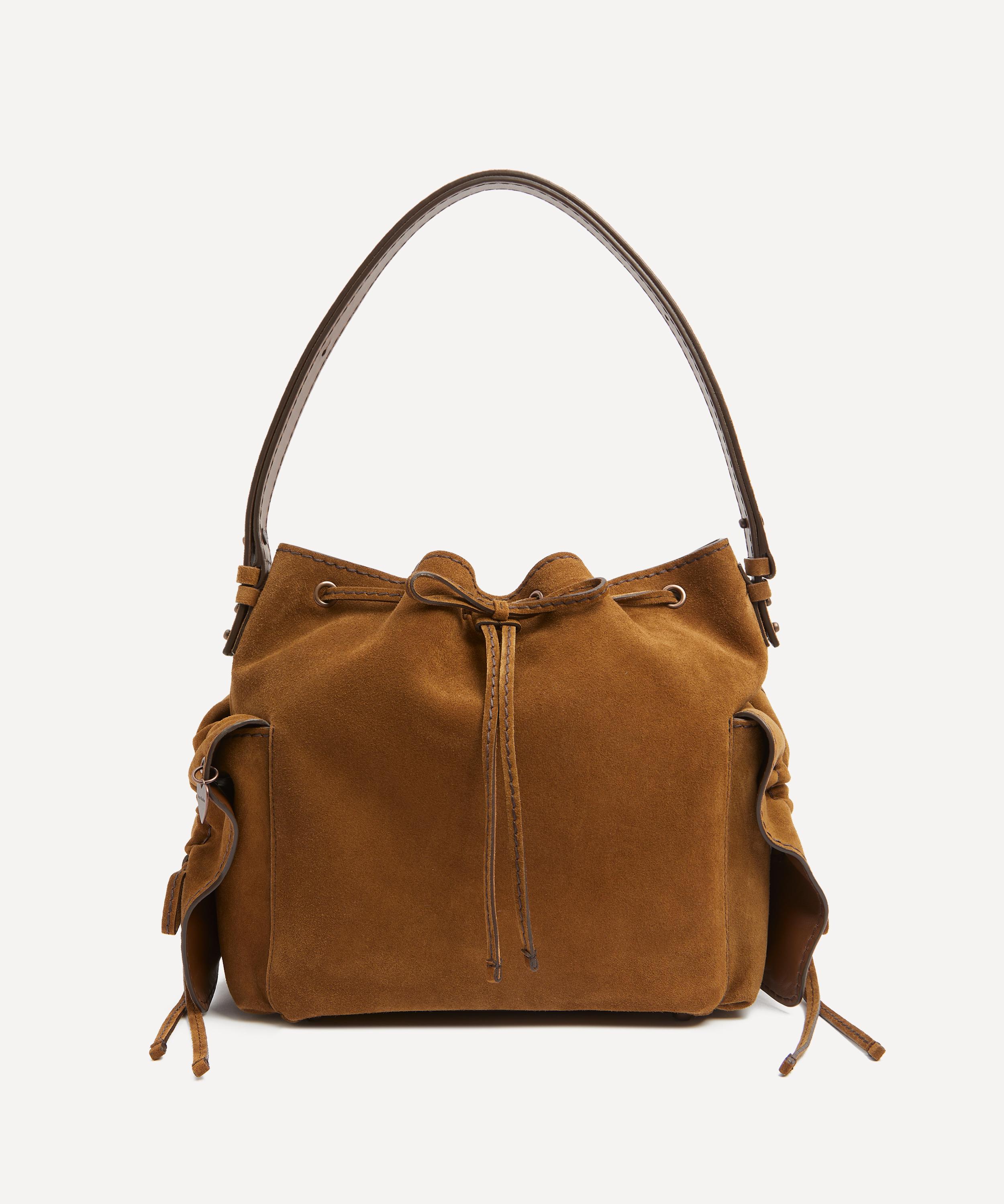 Multi-Pocket Suede Bucket Bag