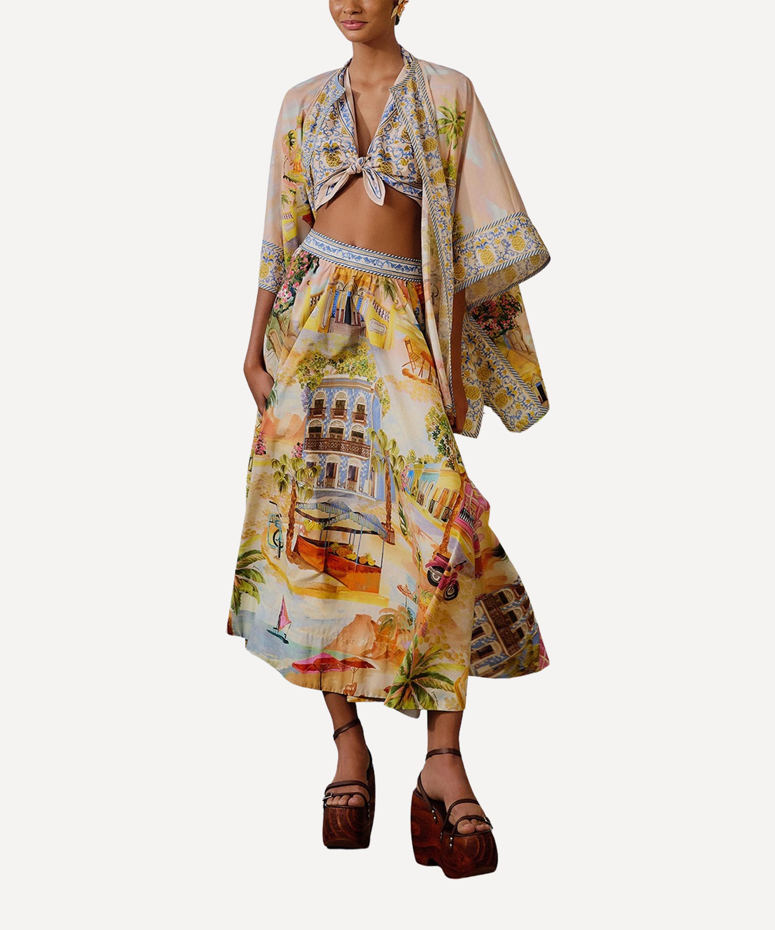 The Multicolor Aracati Midi Skirt from Rio de Janeiro-based label FARM Rio brings some Brazilian vivacity to your new-season edit.