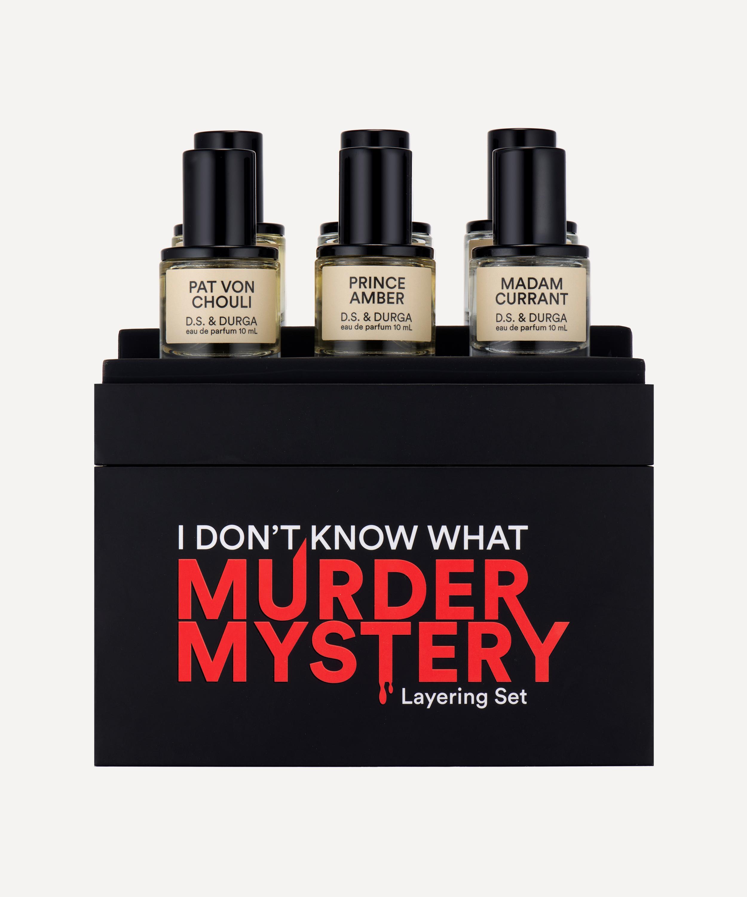 - Murder Mystery Set includes: I Don't Know What Eau de Parfum 10ml, Madam Currant Eau de Parfum 10ml, Professor Rose Eau de Parfum 10ml, Prince Amber Eau de Parfum 10ml, Dr. Newman Hay Eau de Parfum 10ml and Pat von Chouli Eau de Parfum 10ml