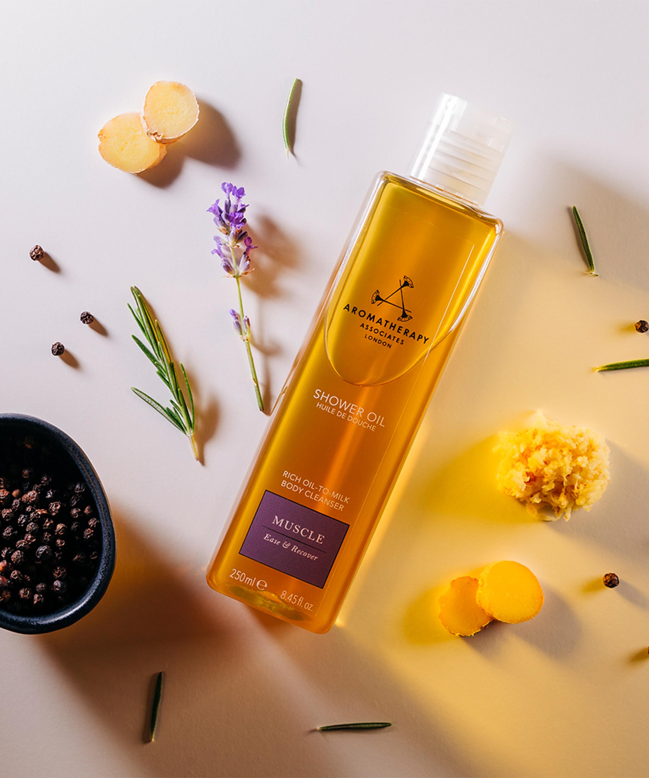 Aromatherapy Associates' Muscle Shower Oil transforms your routine setting into an oasis of tranquillity with a comforting, therapeutic essential oil blend to reset body and mind.