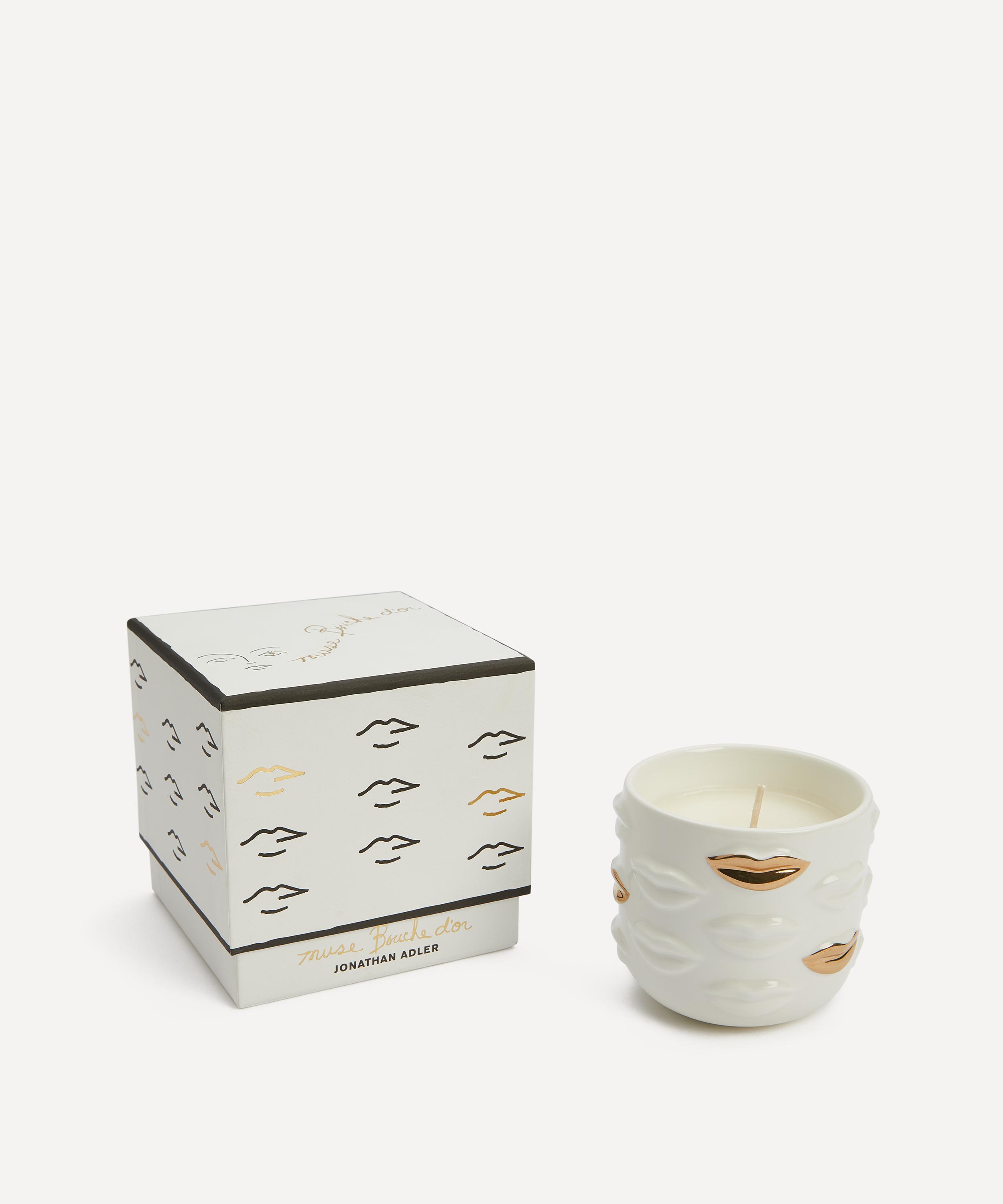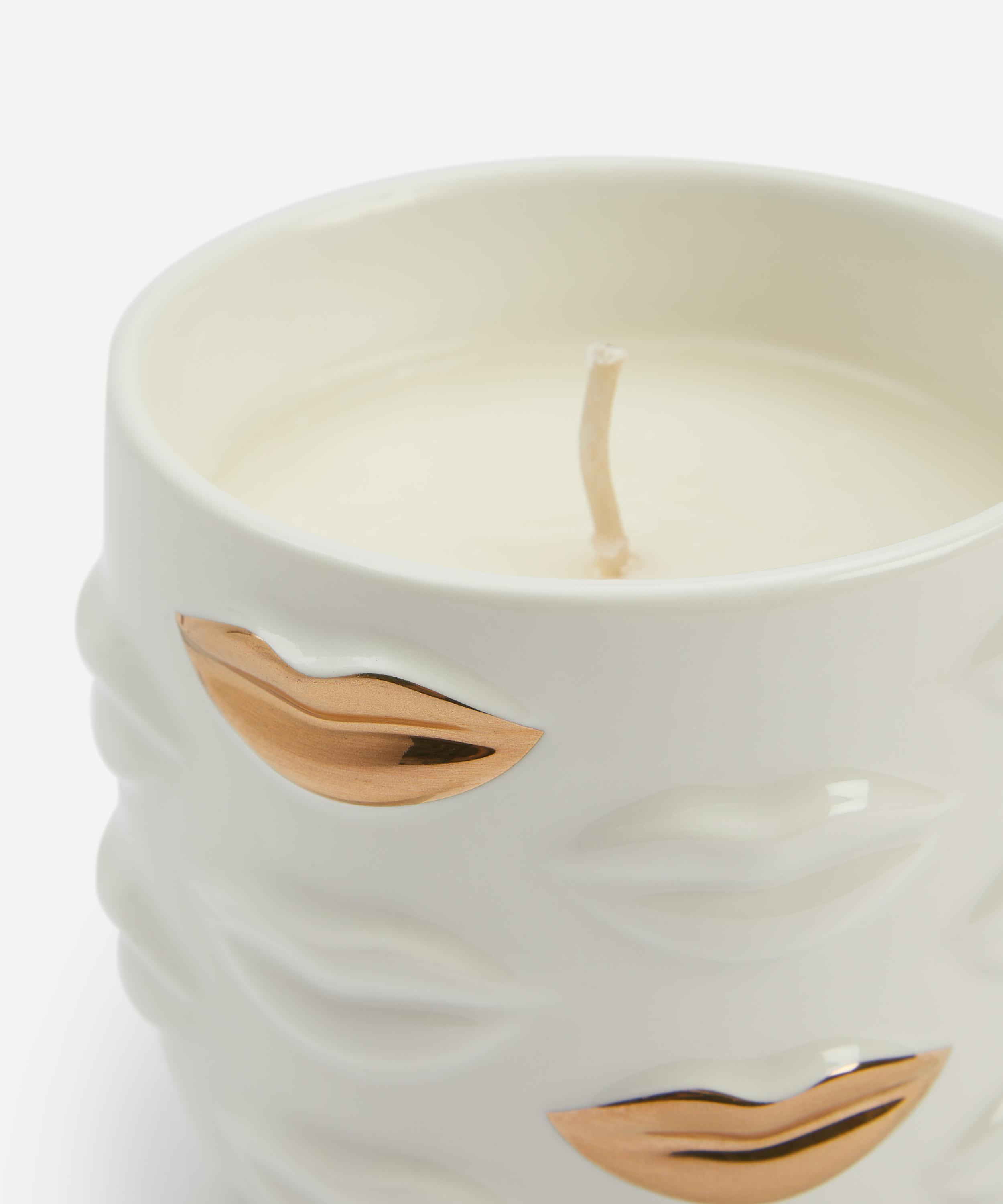 The Muse Bouche D’Or candle weaves a warm and woody citrus sent, made from a soy and paraffin wax blend, for a cleaner burn. Housed in a beautiful porcelain vessel, featuring the brand’s miniature gilded Gala design, showcasing multiple pairs of white and gold lips on each face. With two wicks the approximate burn time is 45 hours – once gone, reuse the vessel as a petite vase or pot.