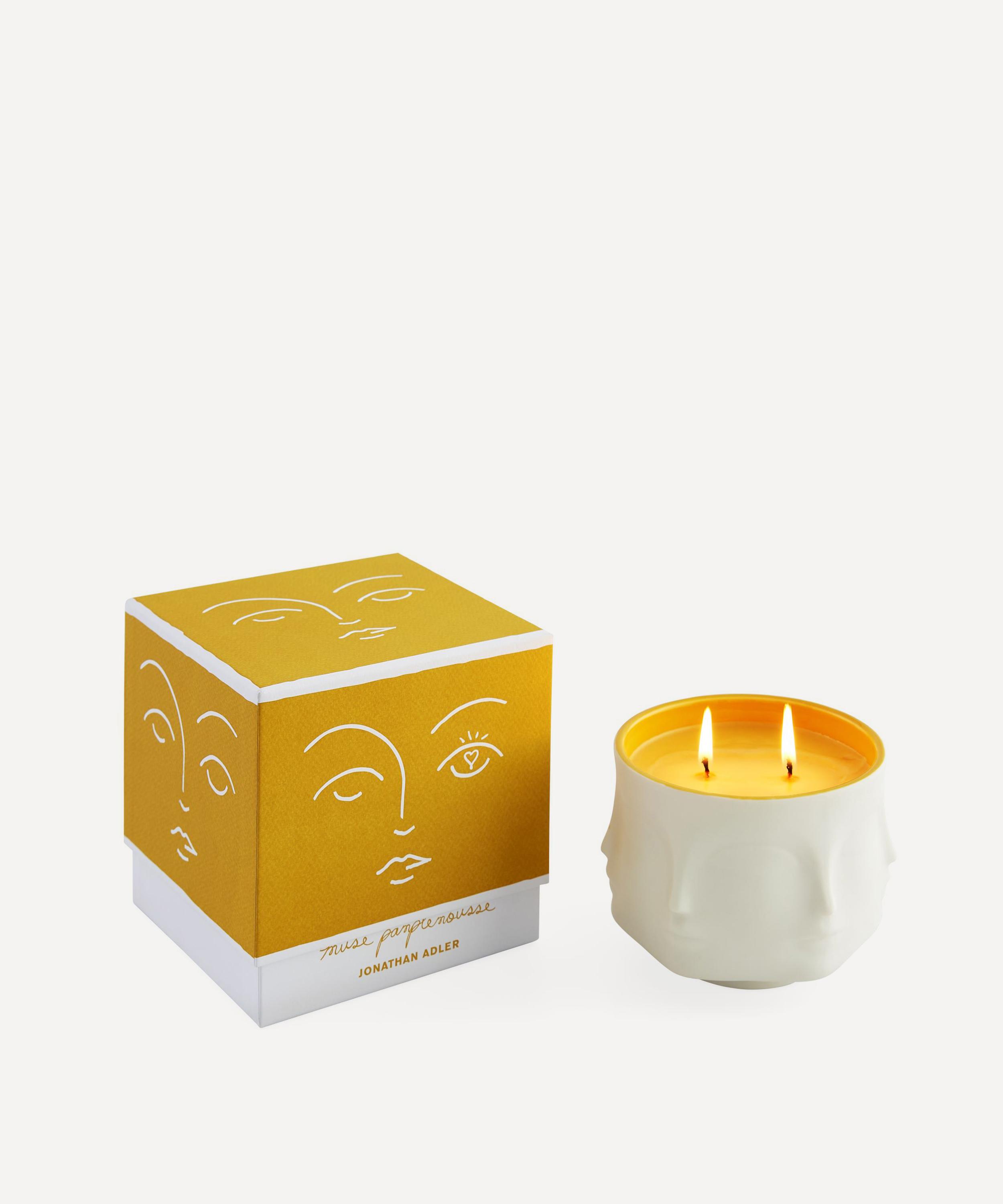 The Muse Pamplemousse candle weaves a luxurious scent of grapefruit, green vine accords, and passionfruit, evoking the feeling of diving into a pooling the middle of a heat wave, a glass of champagne, or a day at the spa. Made from a soy and paraffin wax blend, for a cleaner burn, it’s housed in a beautiful porcelain vessel, featuring the brand’s signature Dora Maar design. With two wicks the approximate burn time is 51 hours – once gone, reuse the vessel as a petite vase or pot.