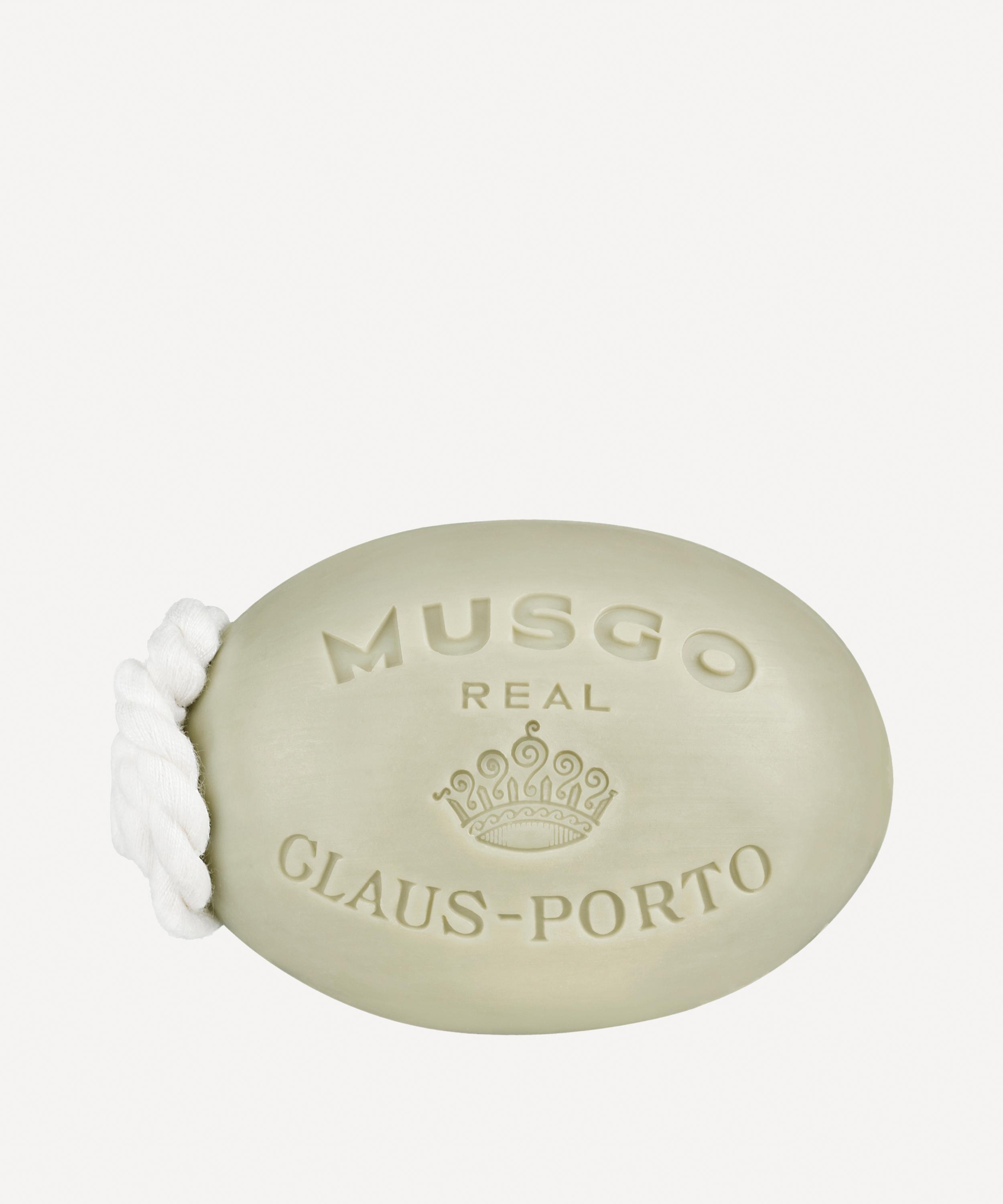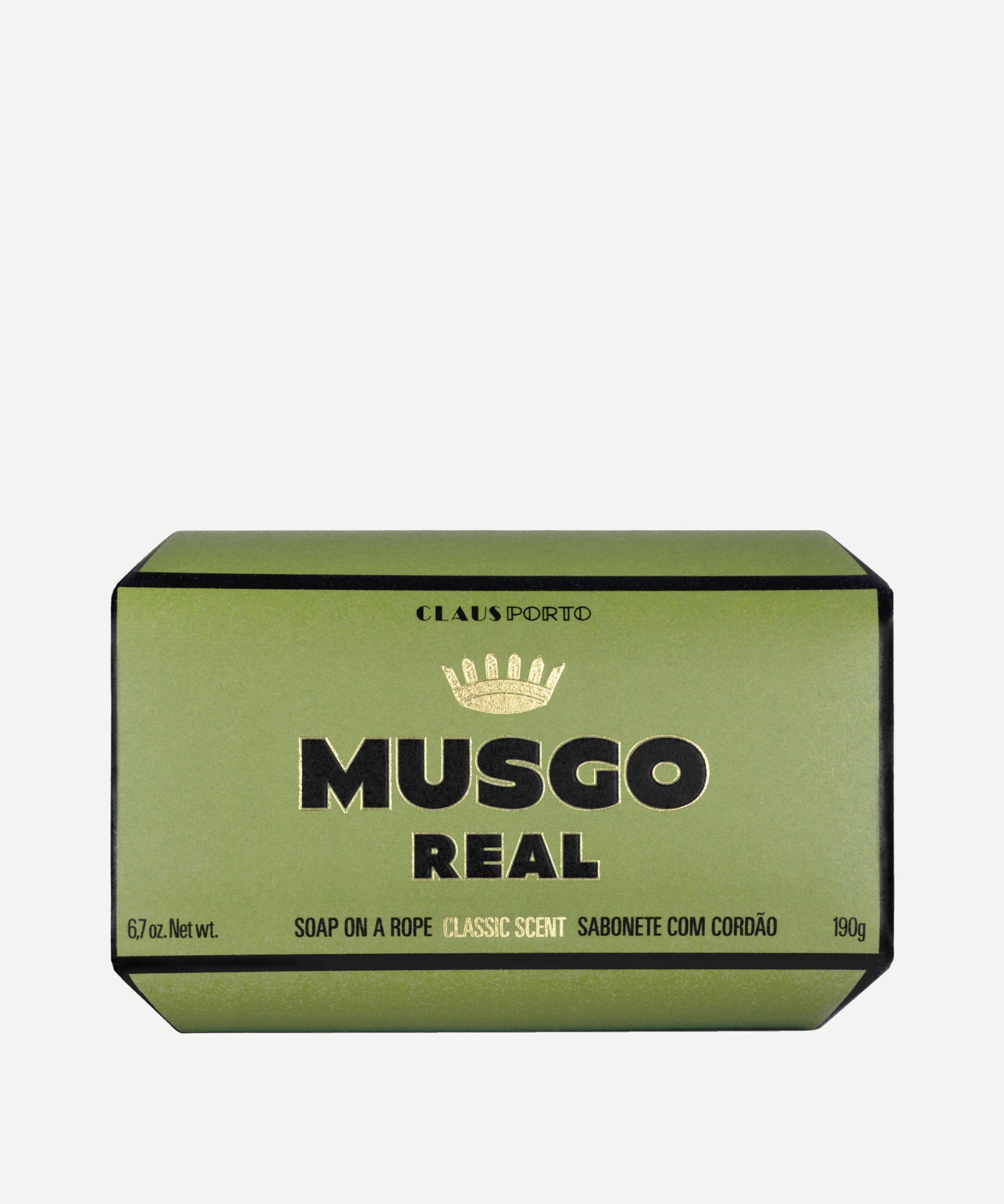 Icon of luxury body care, Claus Porto, holds the secret to men's fragrance in the Musgo Real collection. Classic Scent soap on a rope is formulated with vegetable oils and enriched with walnut extract for hydration.