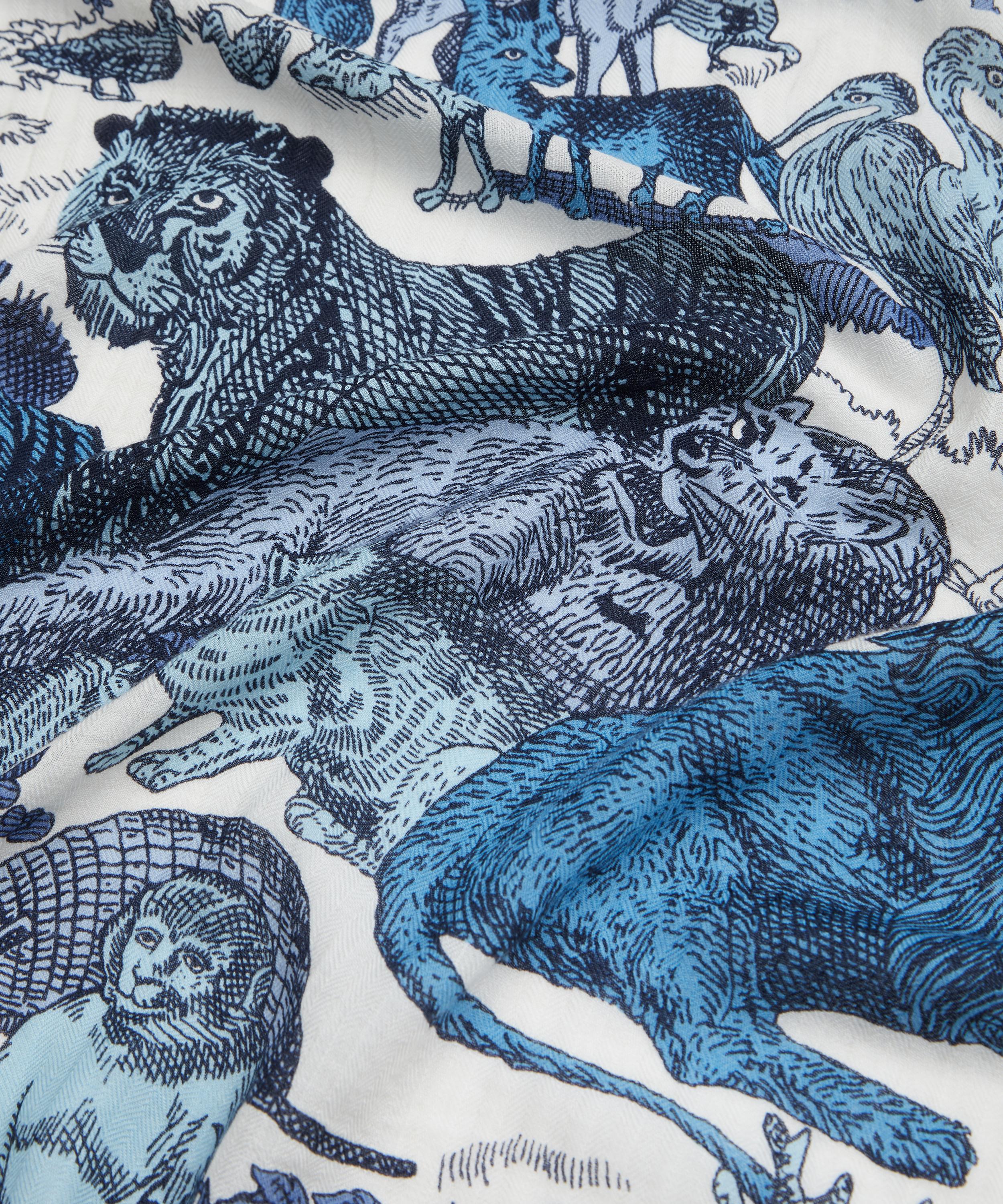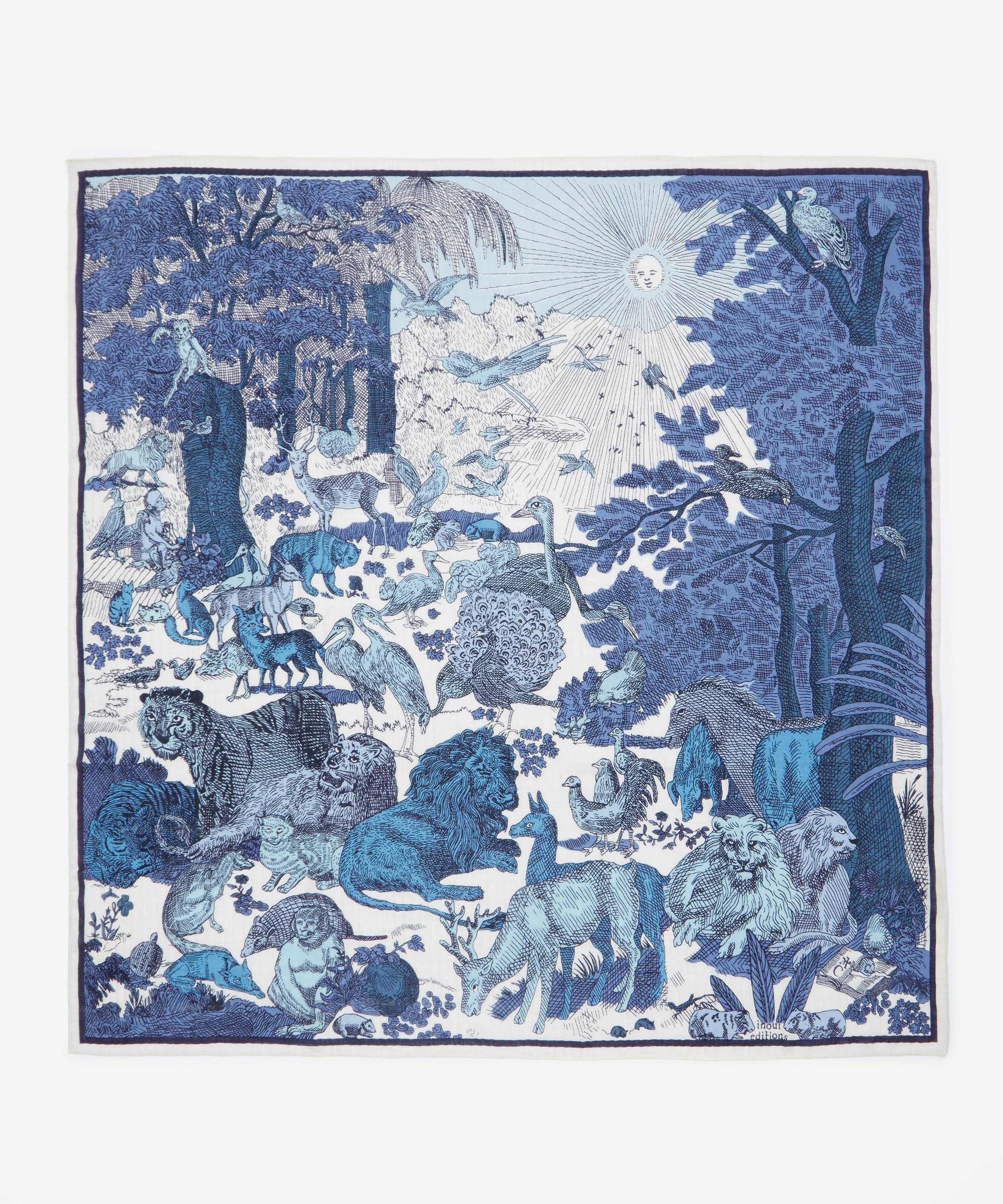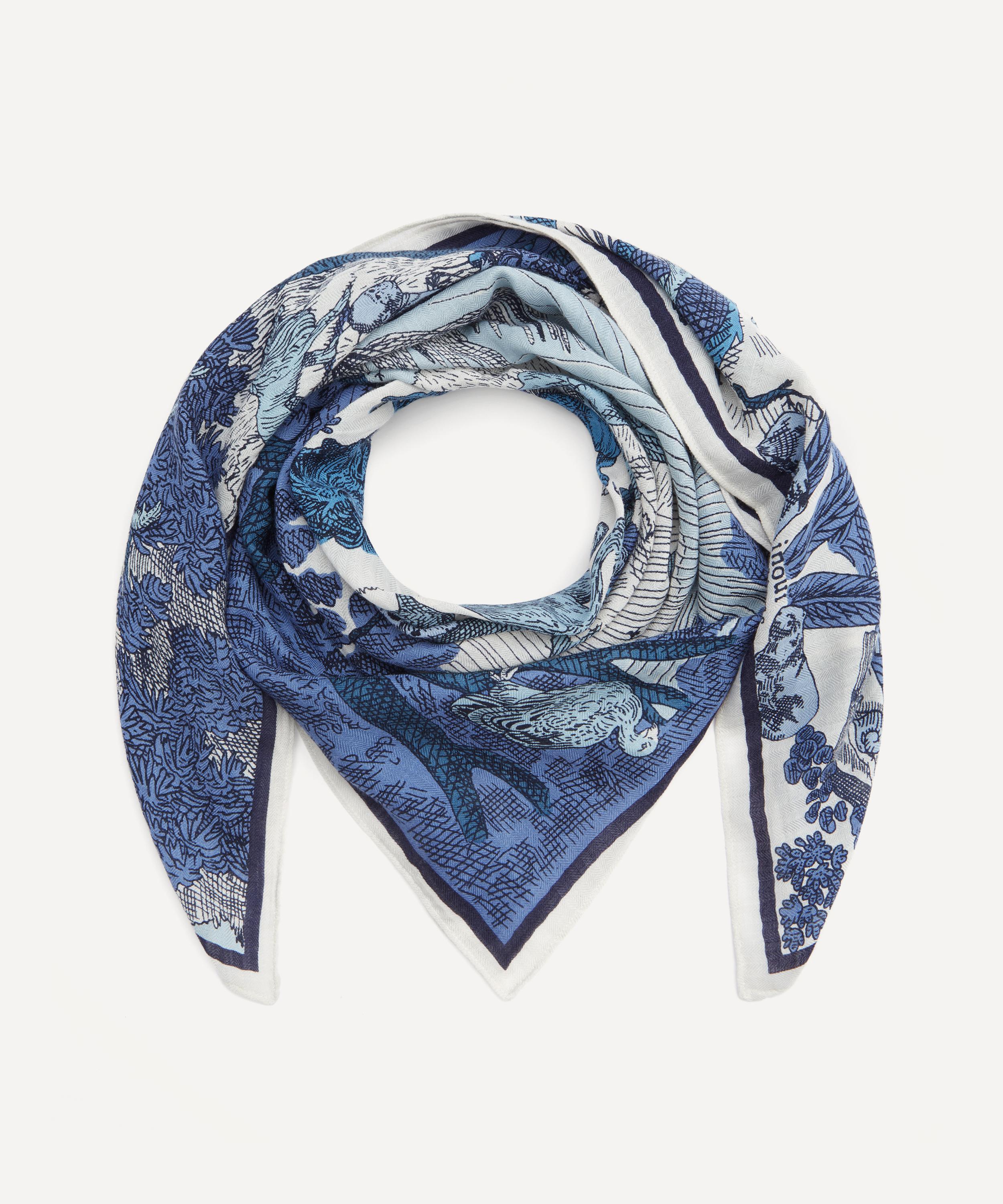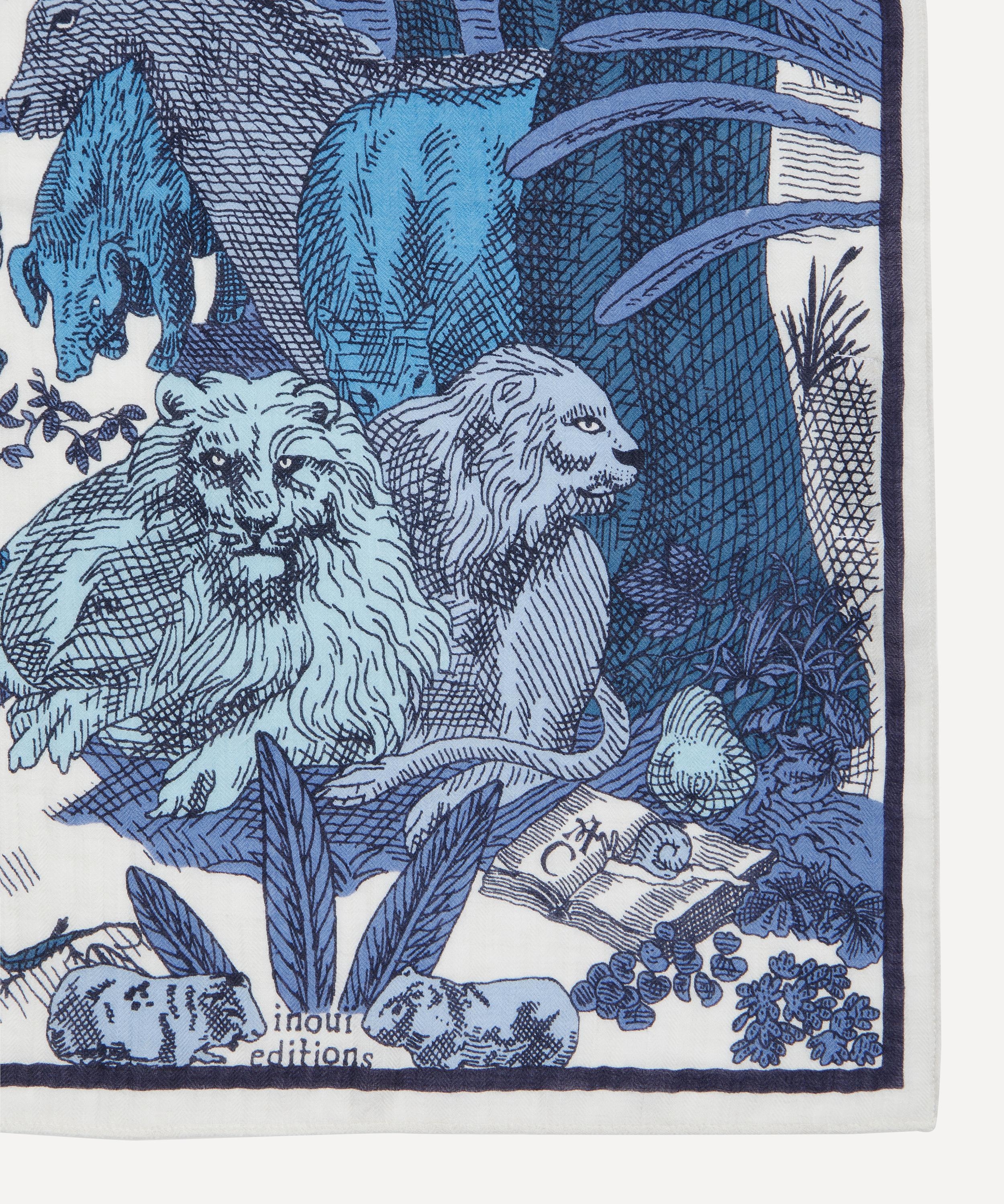 Designed in France and made in India, this Mythologie wool-blend foulard scarf from Inoui Editions depicts a magical forest of animals against a blue and white backdrop. Finished with a contrasting border and top stitched edges, it is perfect for breathing new life into your everyday wardrobe – knot it over neutral separates or drape it around bare shoulders to fully showcase the artful design.