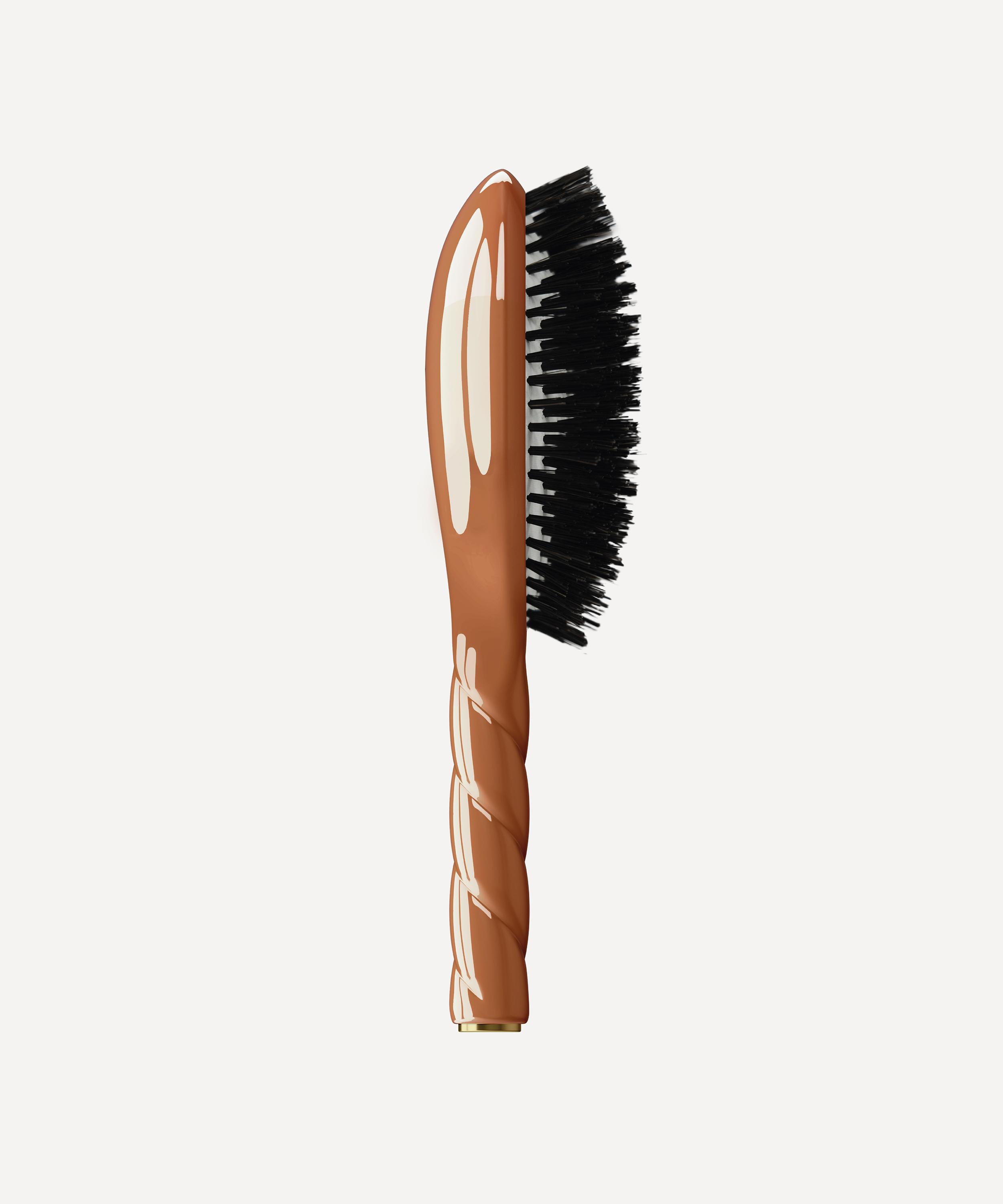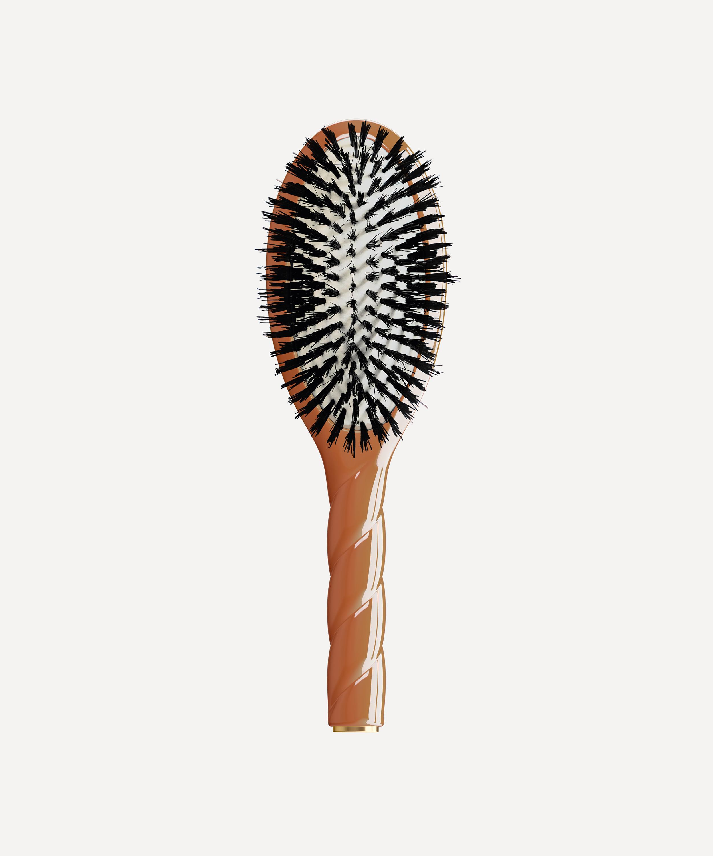 Crafted in France, this innovative brush features natural boar bristles - rich in keratin - that work to envelop and strengthen the cuticles of hair, evenly distribute sebum, effectively detangle tresses and help remove build-up and impurities on the scalp to reduce shampooing frequency.