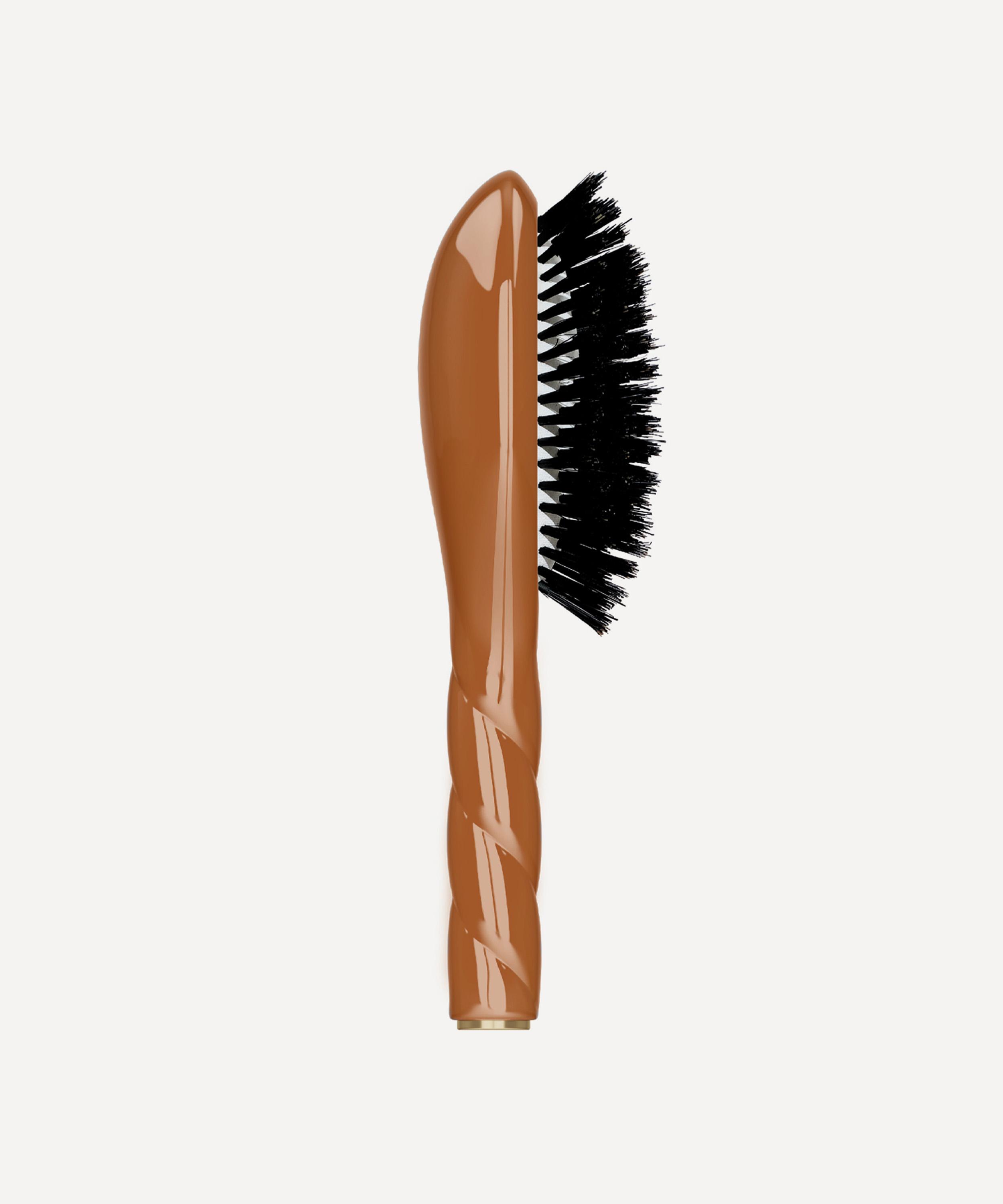 Crafted in France, this innovative brush features natural boar bristles - rich in keratin - that work to envelop and strengthen the cuticles of hair, evenly distribute sebum, effectively detangle tresses and help remove build-up and impurities on the scalp to reduce shampooing frequency.