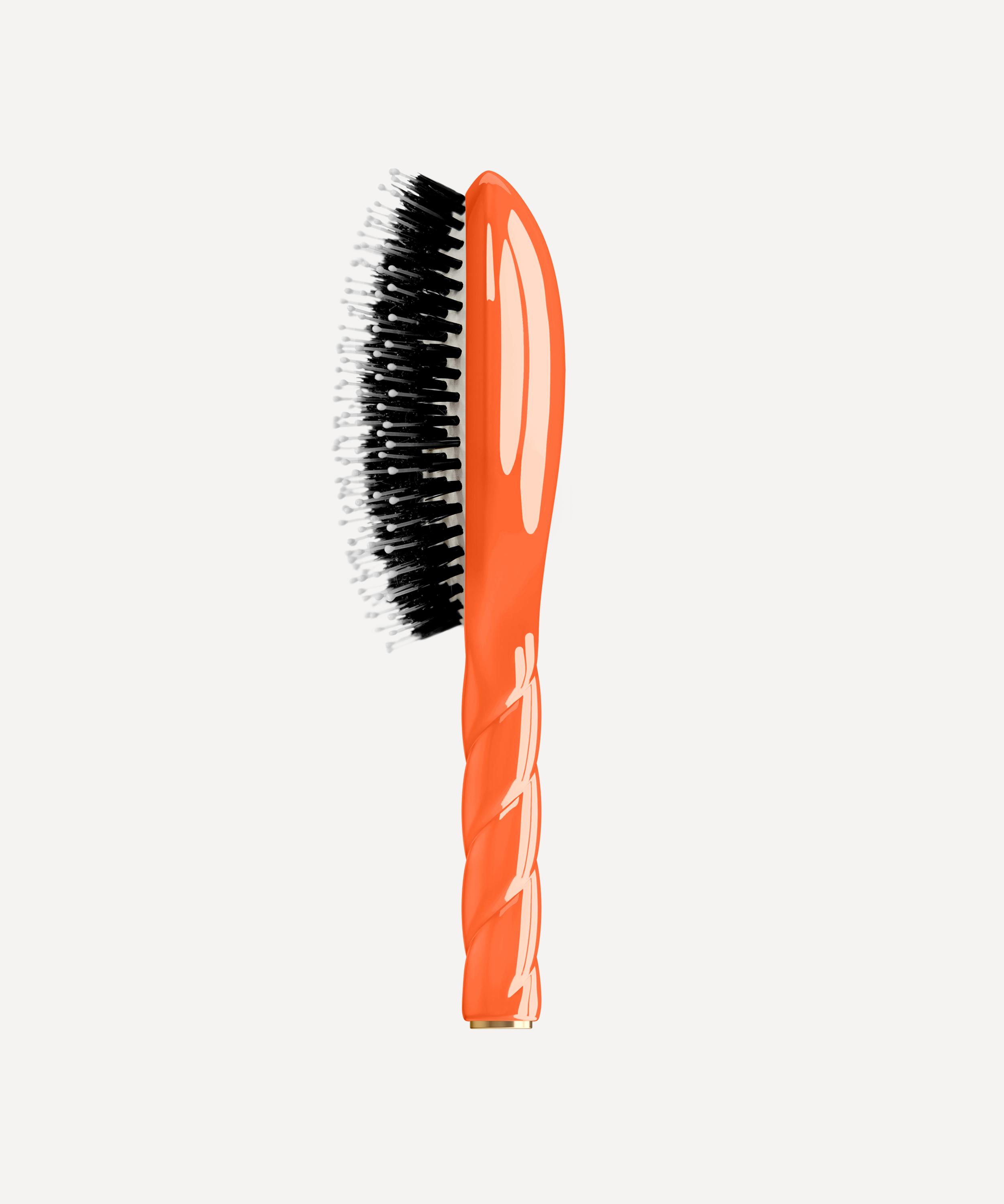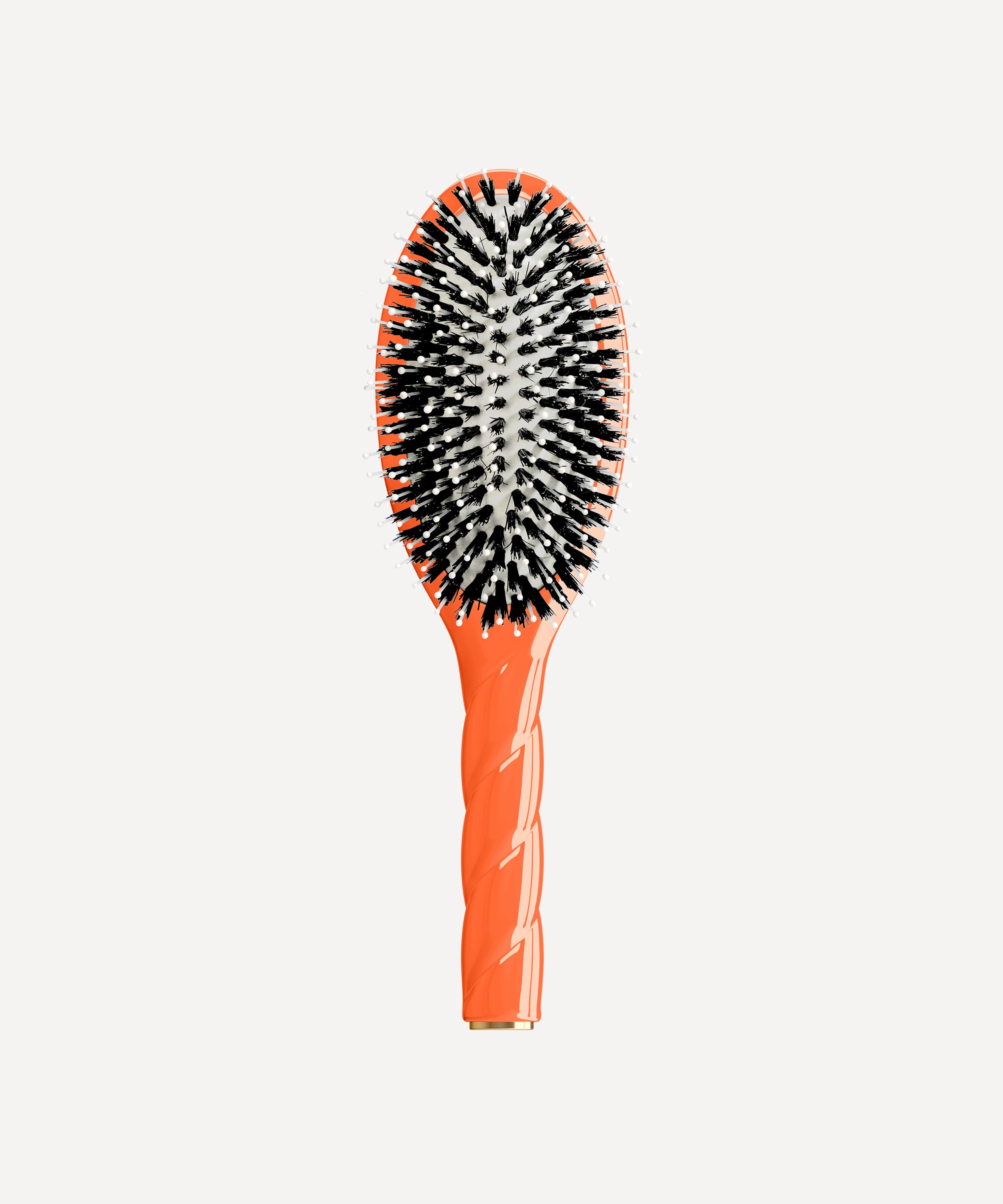 Crafted in France in a retro orange hue, each innovative brush features natural boar bristles - rich in keratin - along with nylon fibres, hand placed into the flexible base, it effectively detangles tresses while soothing the scalp with a deep yet gentle scalp massage, stimulating blood circulation and promoting hair growth while also nourishing and moisturising hair.