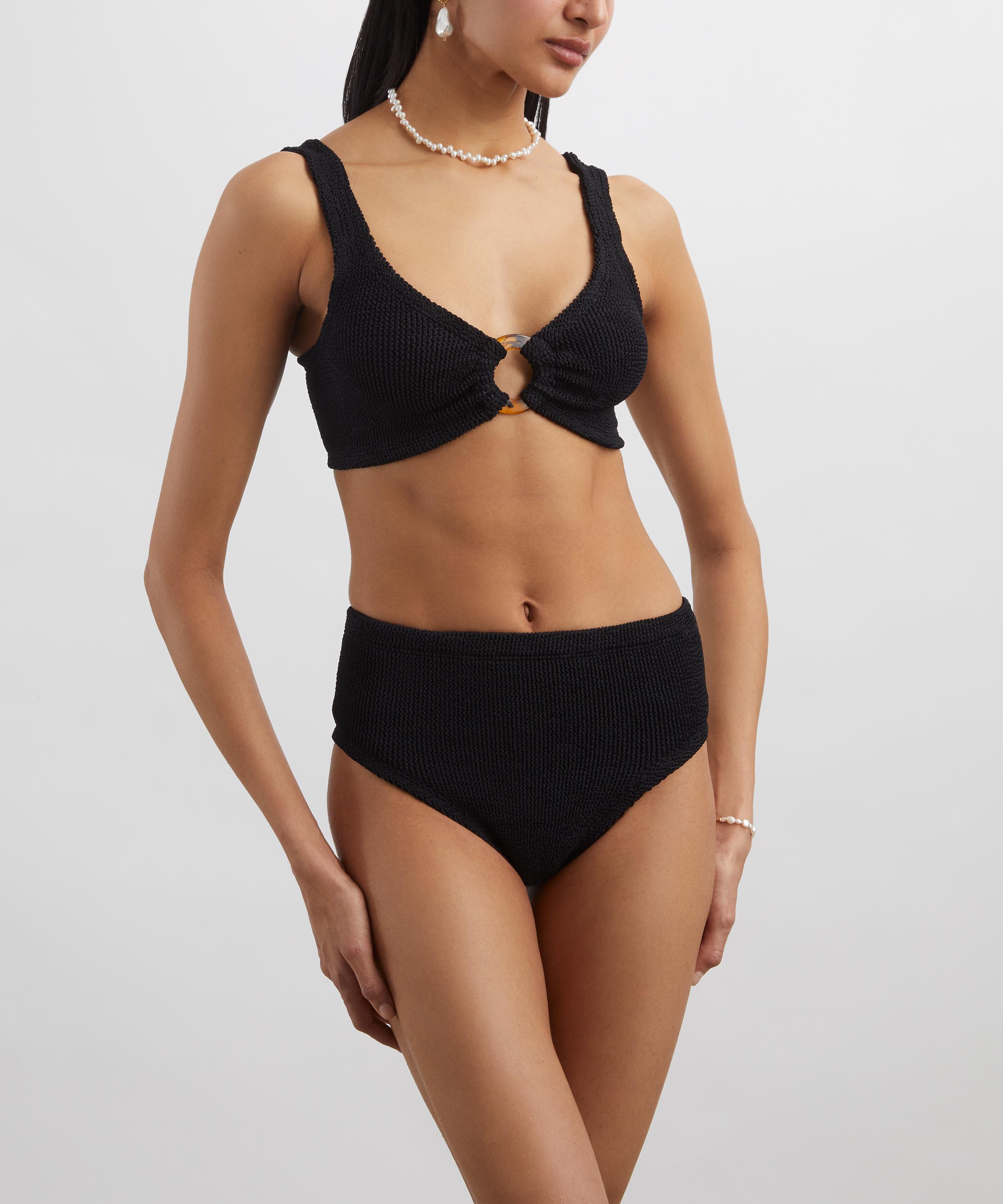 Crafted from the label’s signature crinkle material for a comfortable, flattering fit every time, this retro bikini exudes effortless glamour with high-waisted briefs and an exclusive tortoiseshell hoop detail.