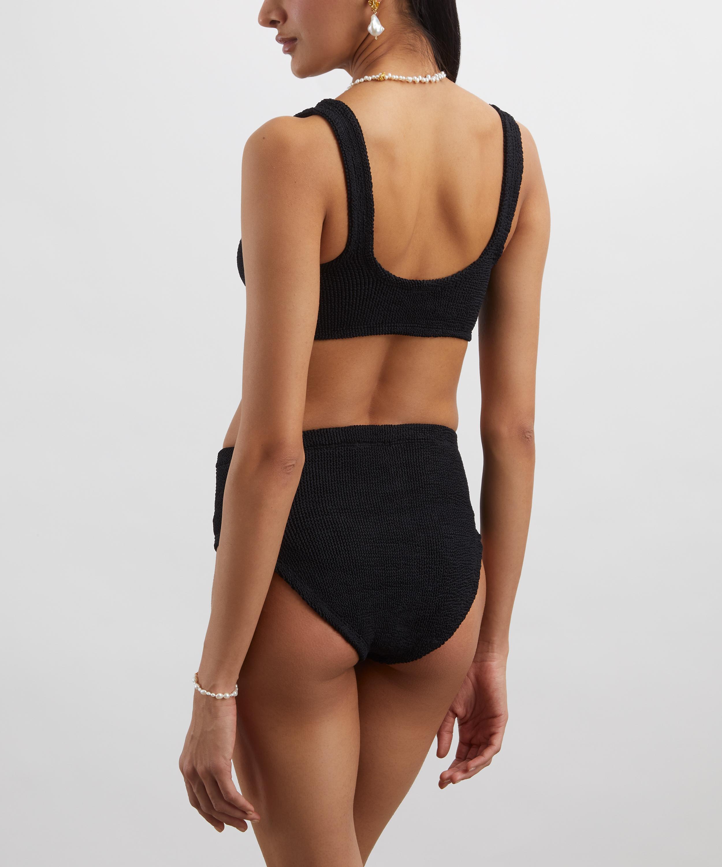 Once a classic, always a classic: the black Nadine Bikini with a tortoiseshell Hoop from Hunza G remains an essential staple in swimwear.