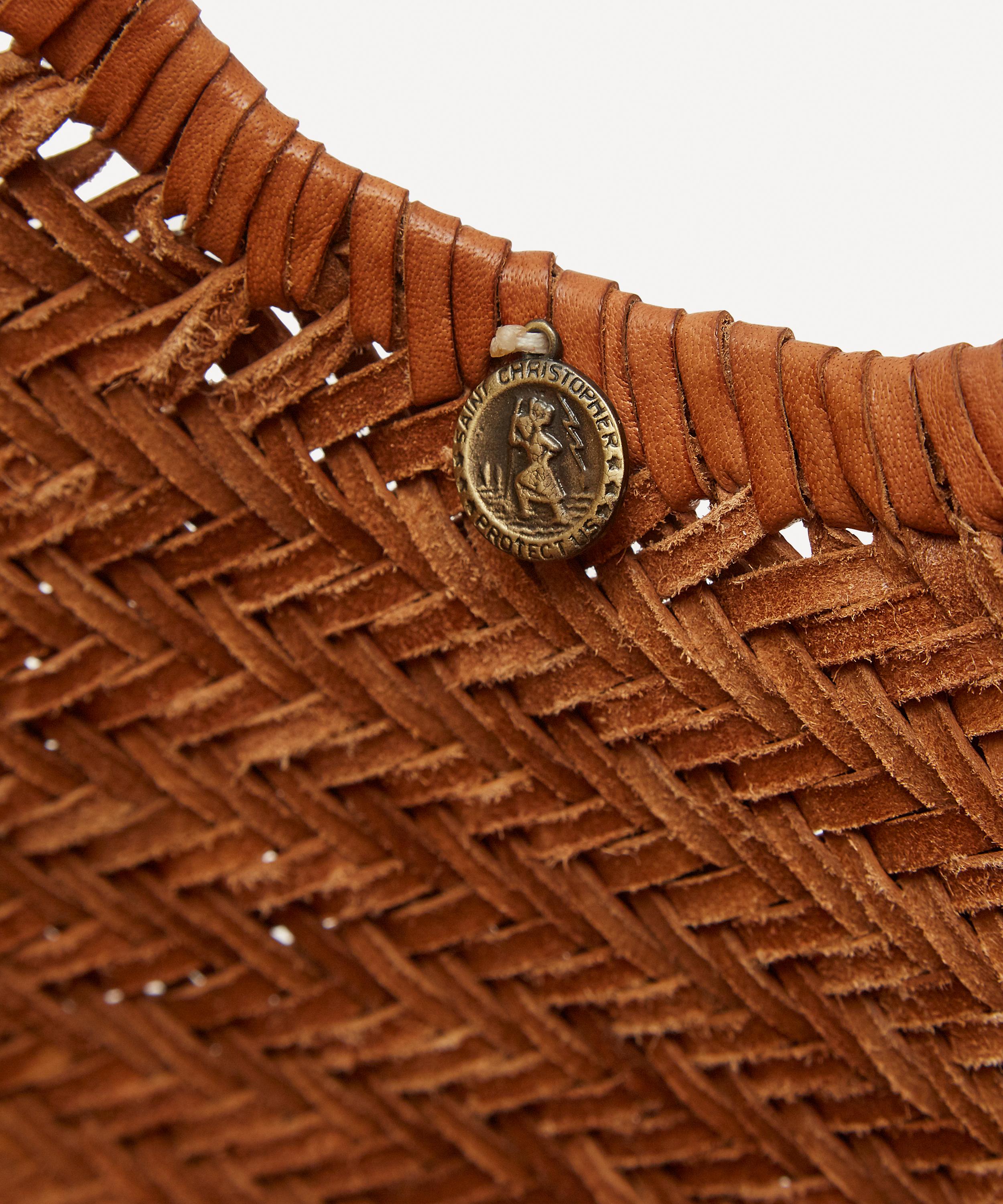 Every Dragon Diffusion accessory is woven from strands of coloured leather by a small team of artisans who create each piece by hand using traditional basket-weaving techniques, over a period of several days. This tote bag takes on a large, open basket silhouette with a spacious main compartment and two woven top handles. The perfect pick for avid adventurers, each one is finished with a gold-tone metal charm engraved with the name of Saint Christopher, the patron saint of travellers, as a small token for safe travels.