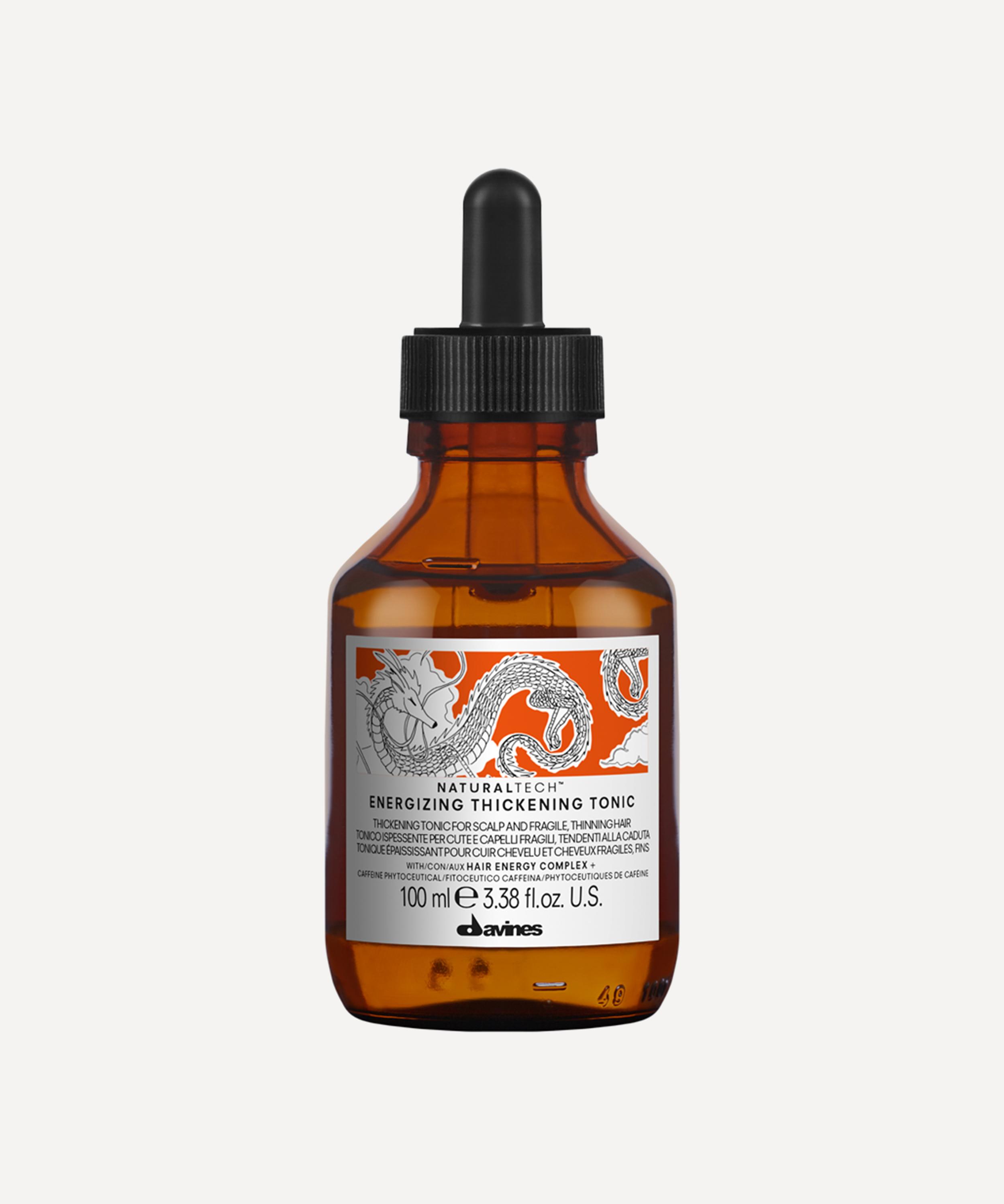 Davines Naturaltech Energising Thickening Tonic is a specialist leave-in treatment that expands the diameter of the hair fibre, helping strands grow through thicker.