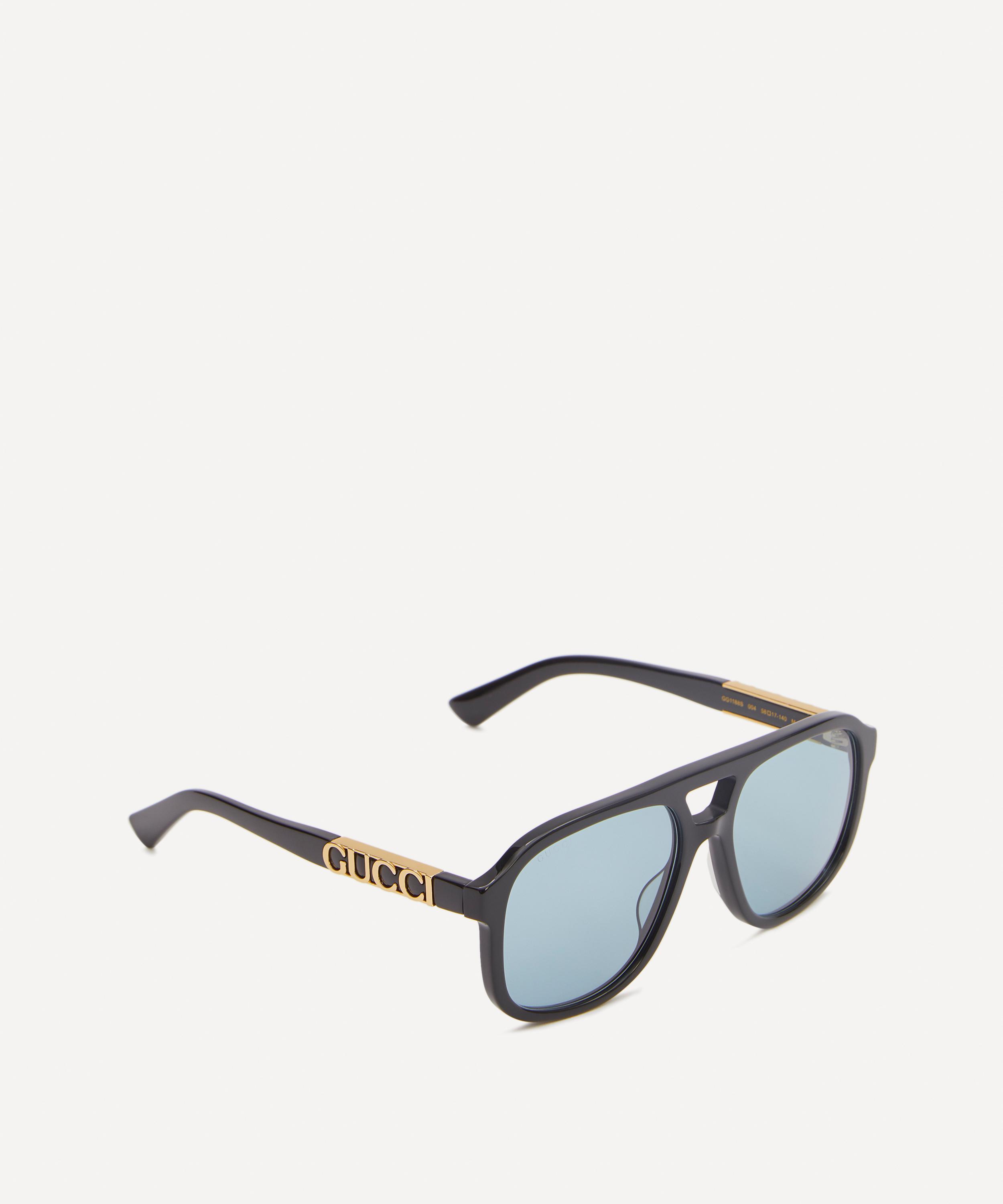 Crafted in Italy from glossy acetate, these aviator sunglasses feature tinted lenses with full UV protection. Bold, gold-tone Gucci lettering adorns the frame, while top bar detailing enhances this pair’s statement silhouette.