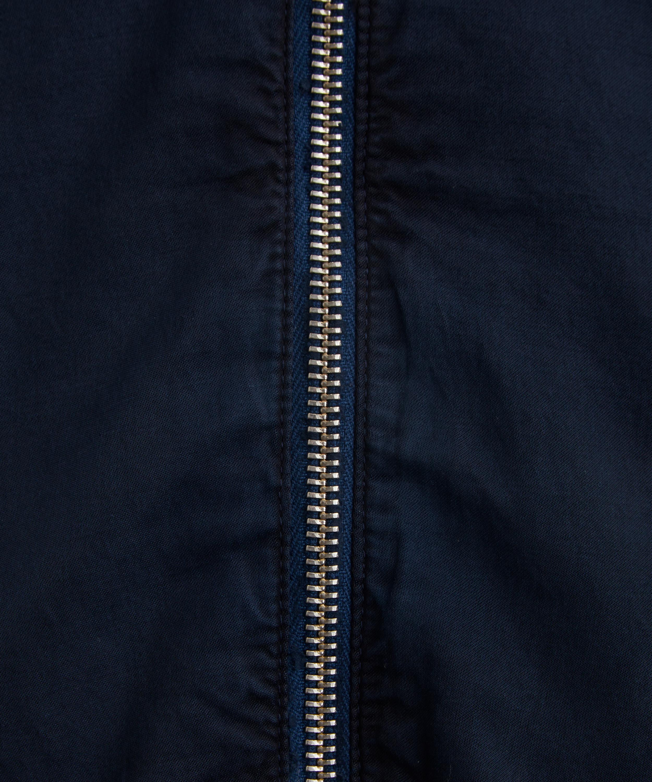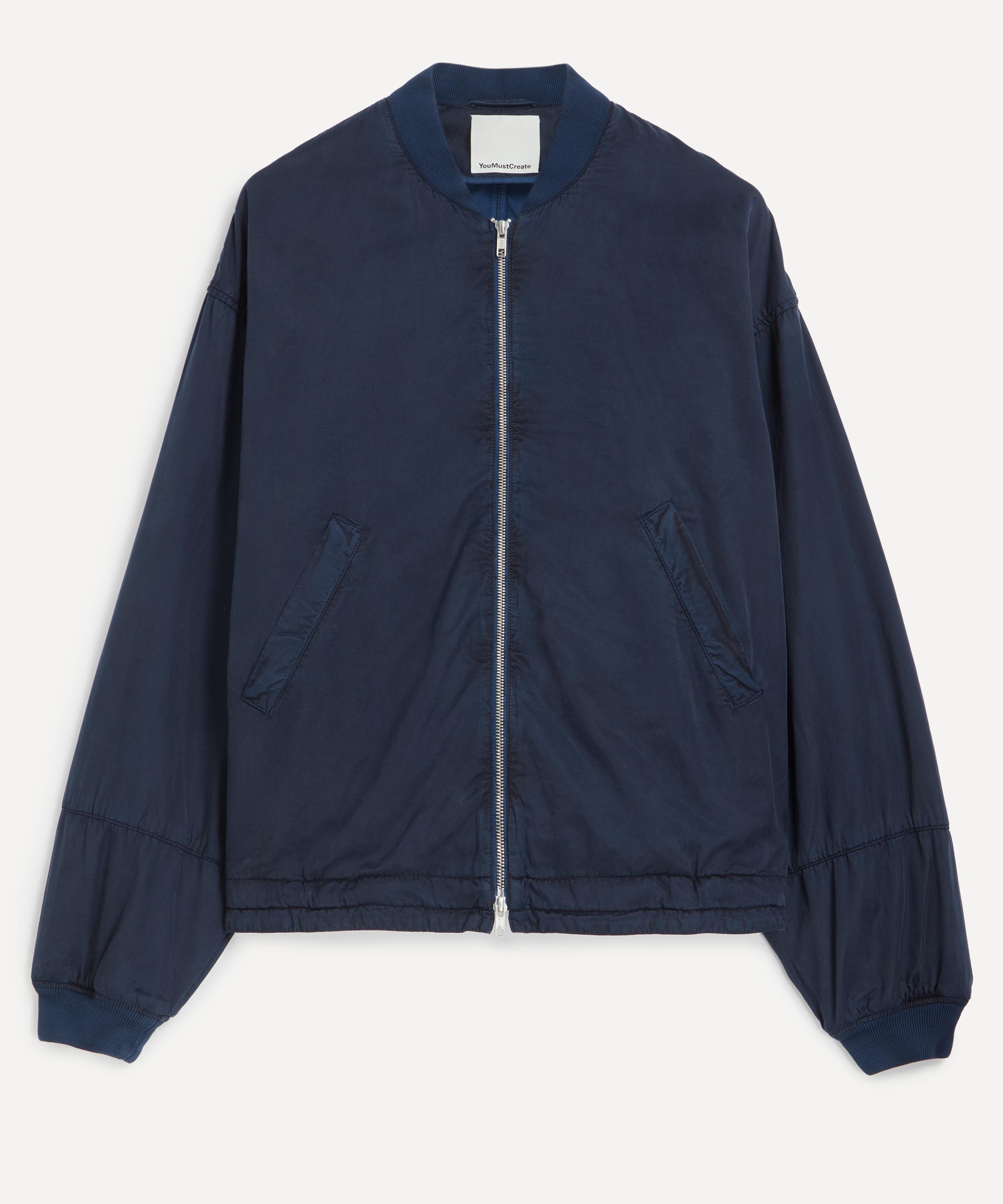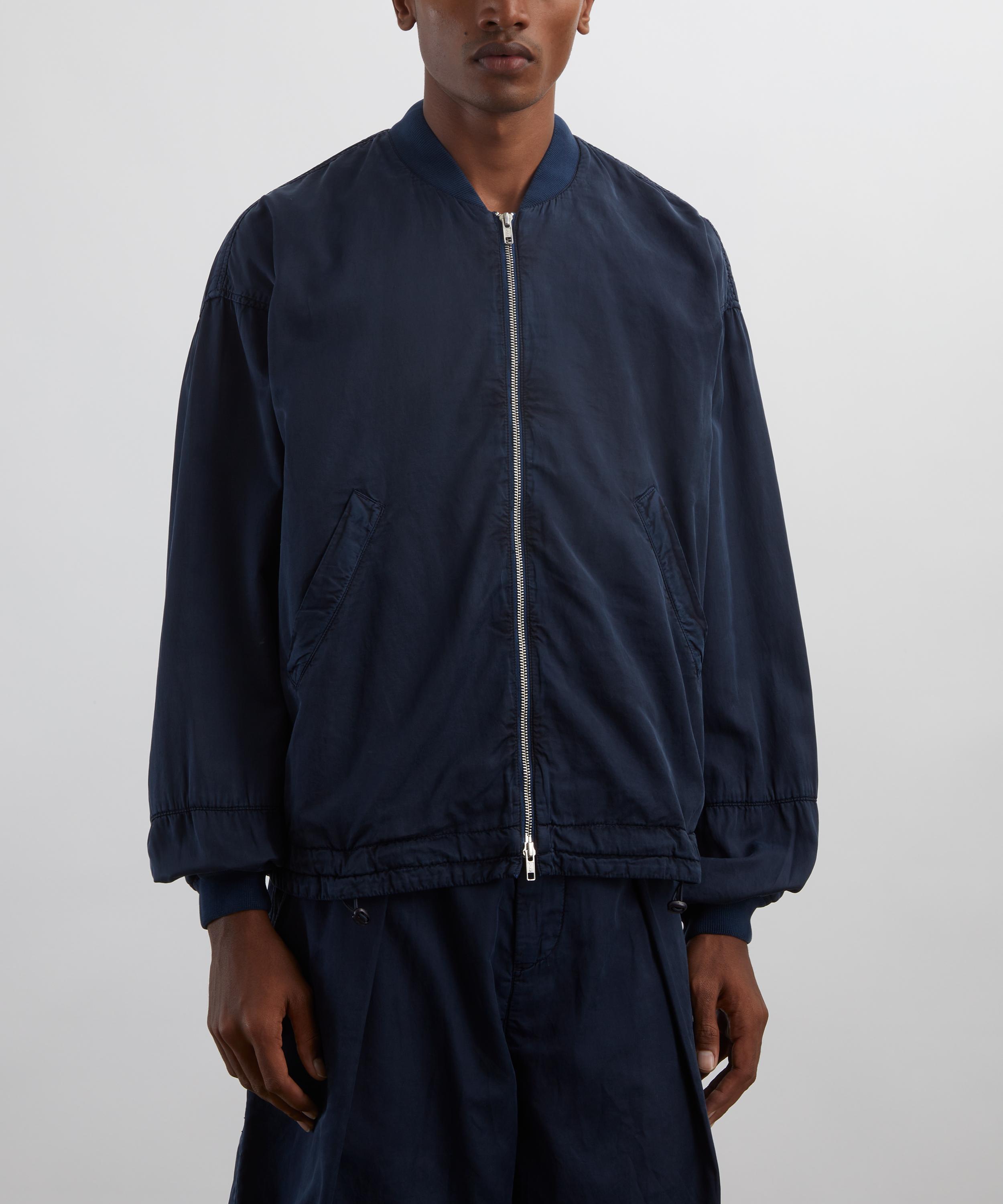 Crafted from garment-dyed bonded cotton cupro, this navy bomber blends classic utility with modern ease. Featuring a rib-knit collar and cuffs, front welt pockets, and a two-way YKK zip fastening, it’s fastened at the hem with drawcords for a custom fit.