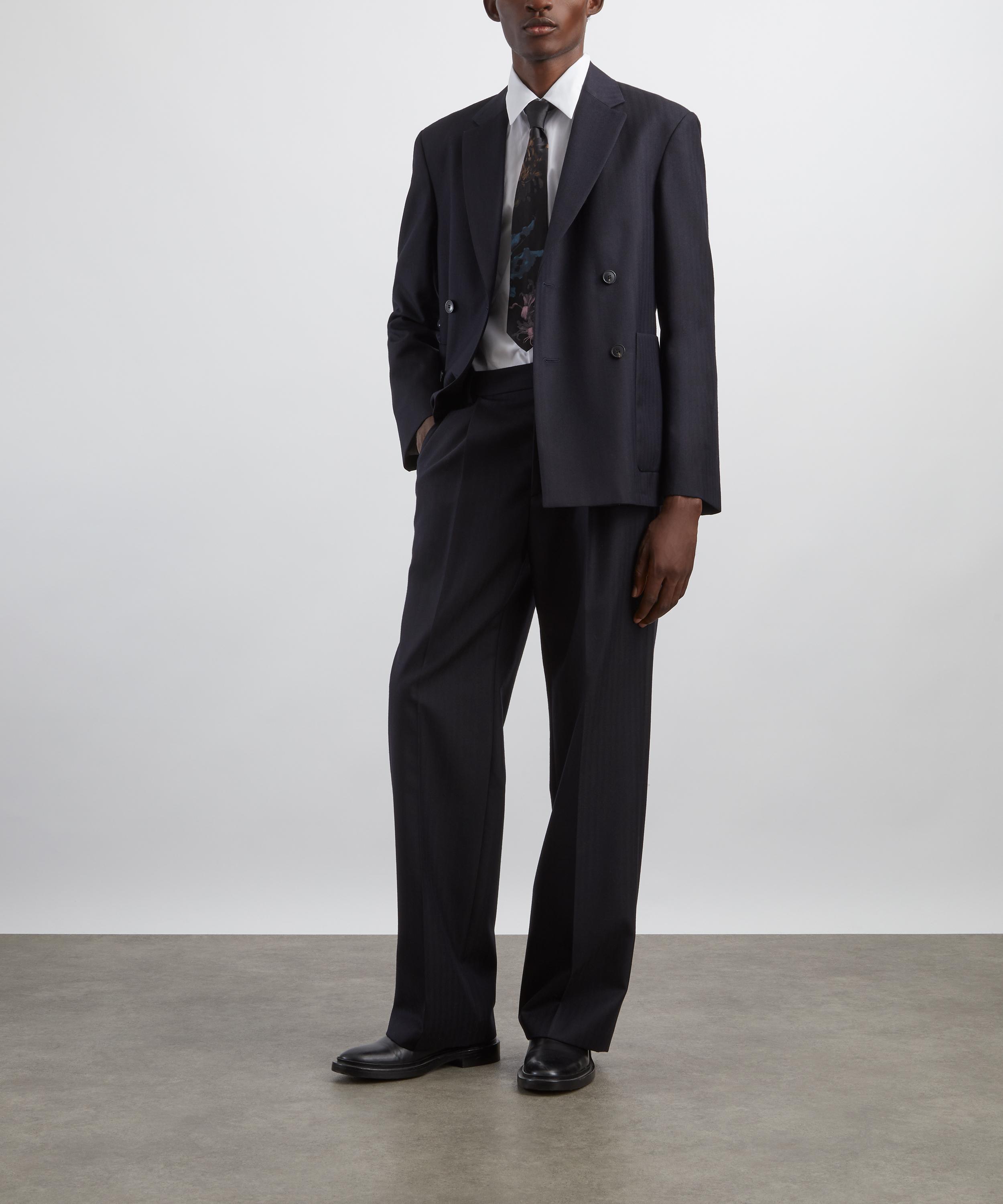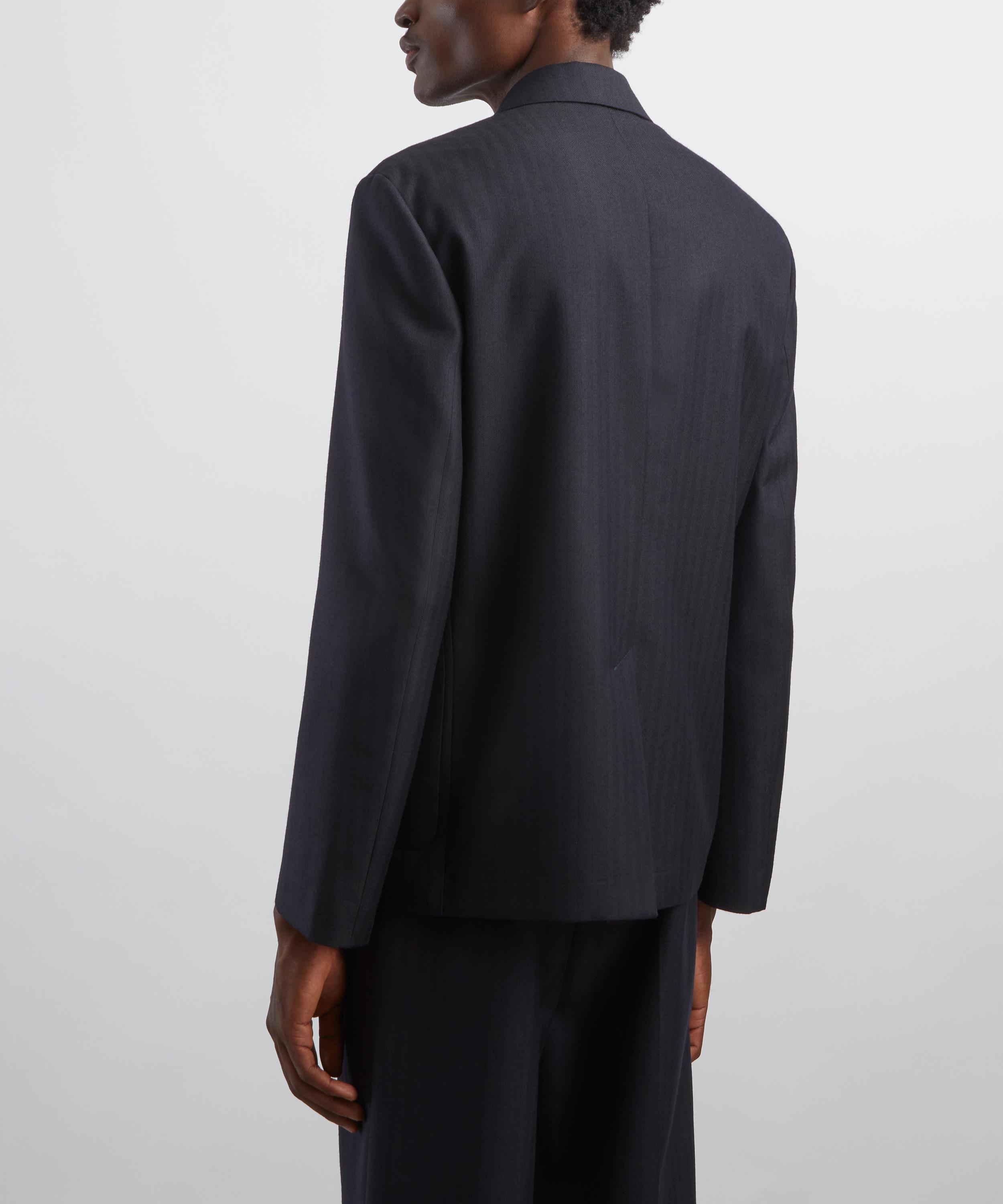 Cut from wool in a deep navy hue, this timeless tailored blazer boasts a boxy, double-breasted silhouette complete with notched lapels, and two large front patch pockets - perfect for keeping essentials close at hand.